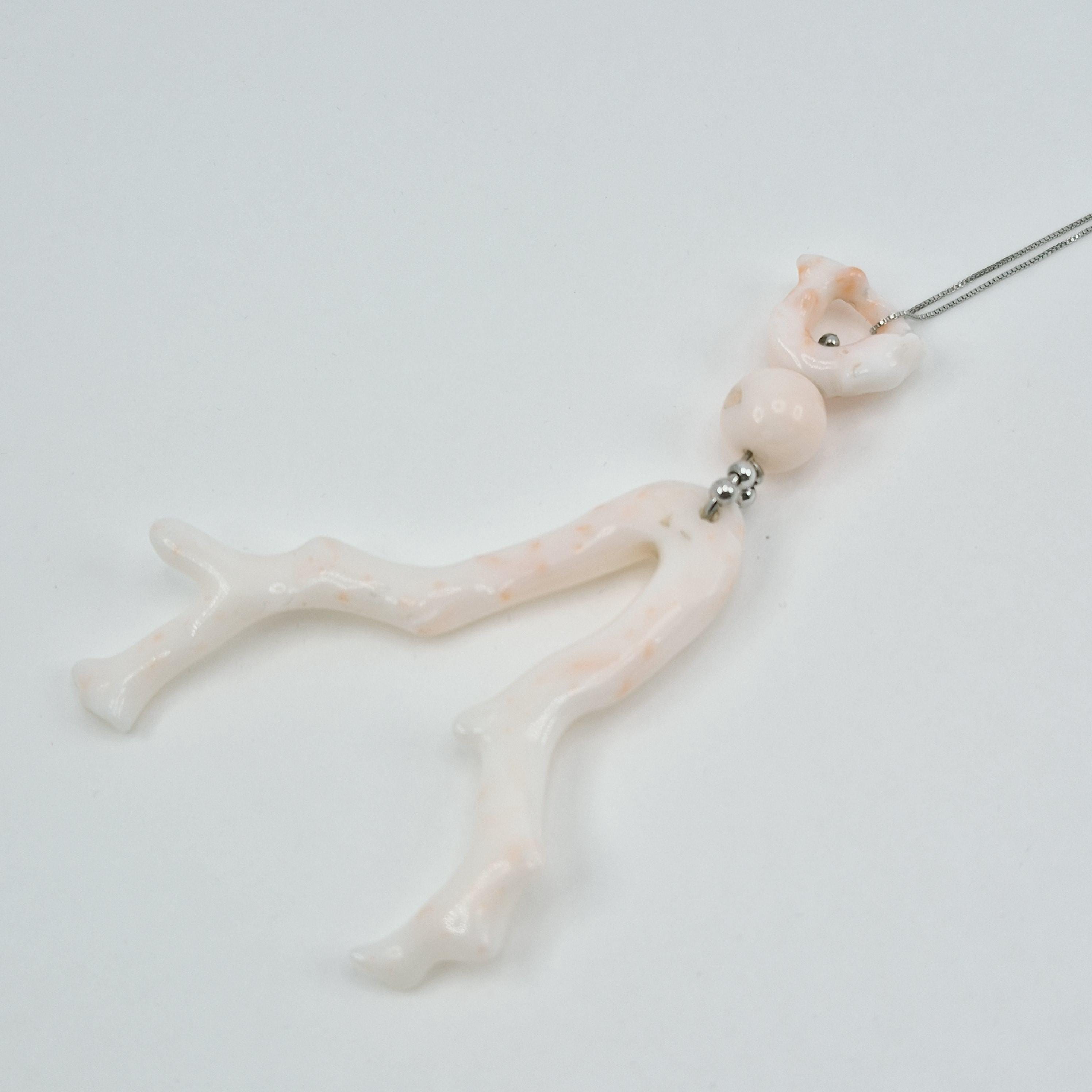 This particular branch of pink coral with a hook is also made of coral in its natural form.