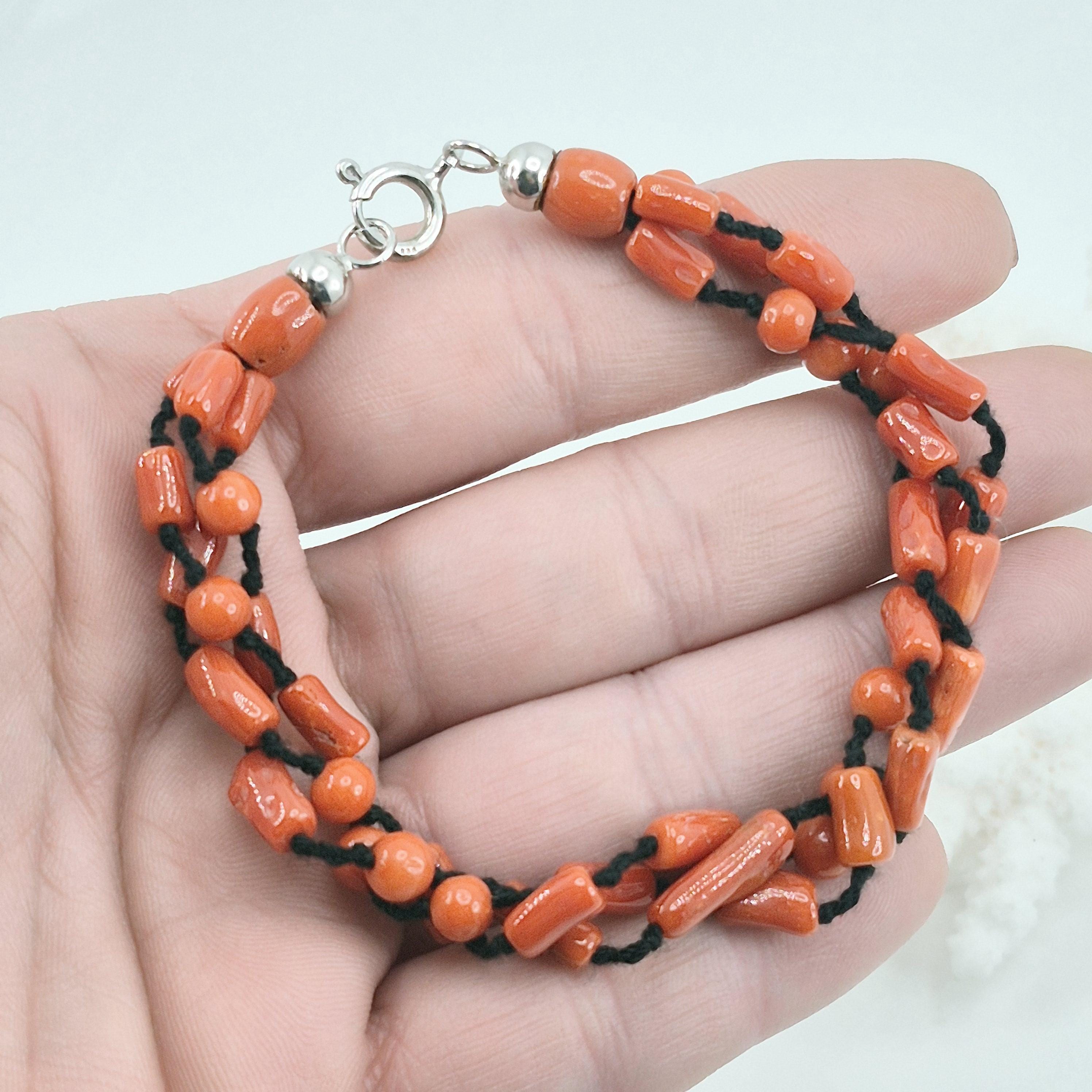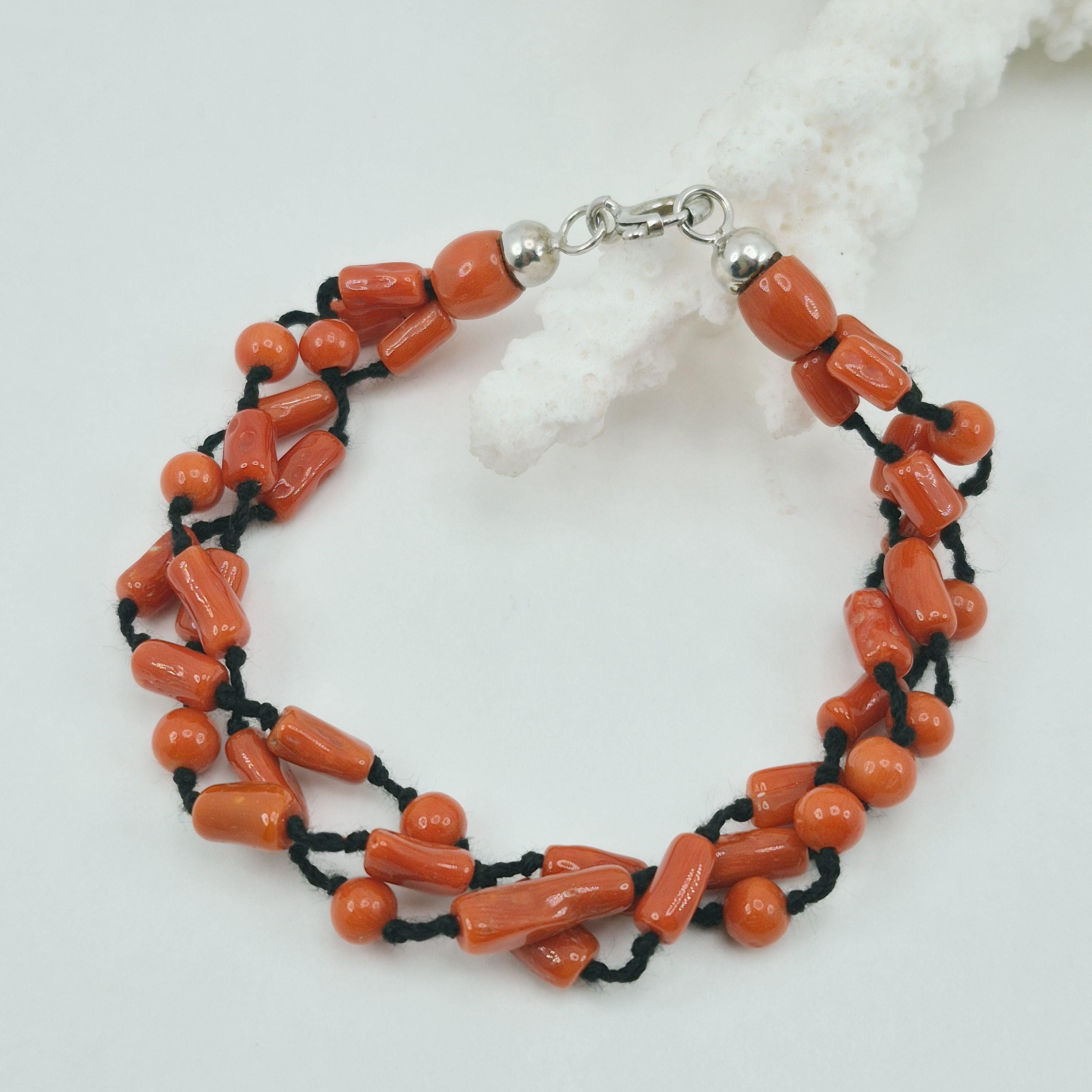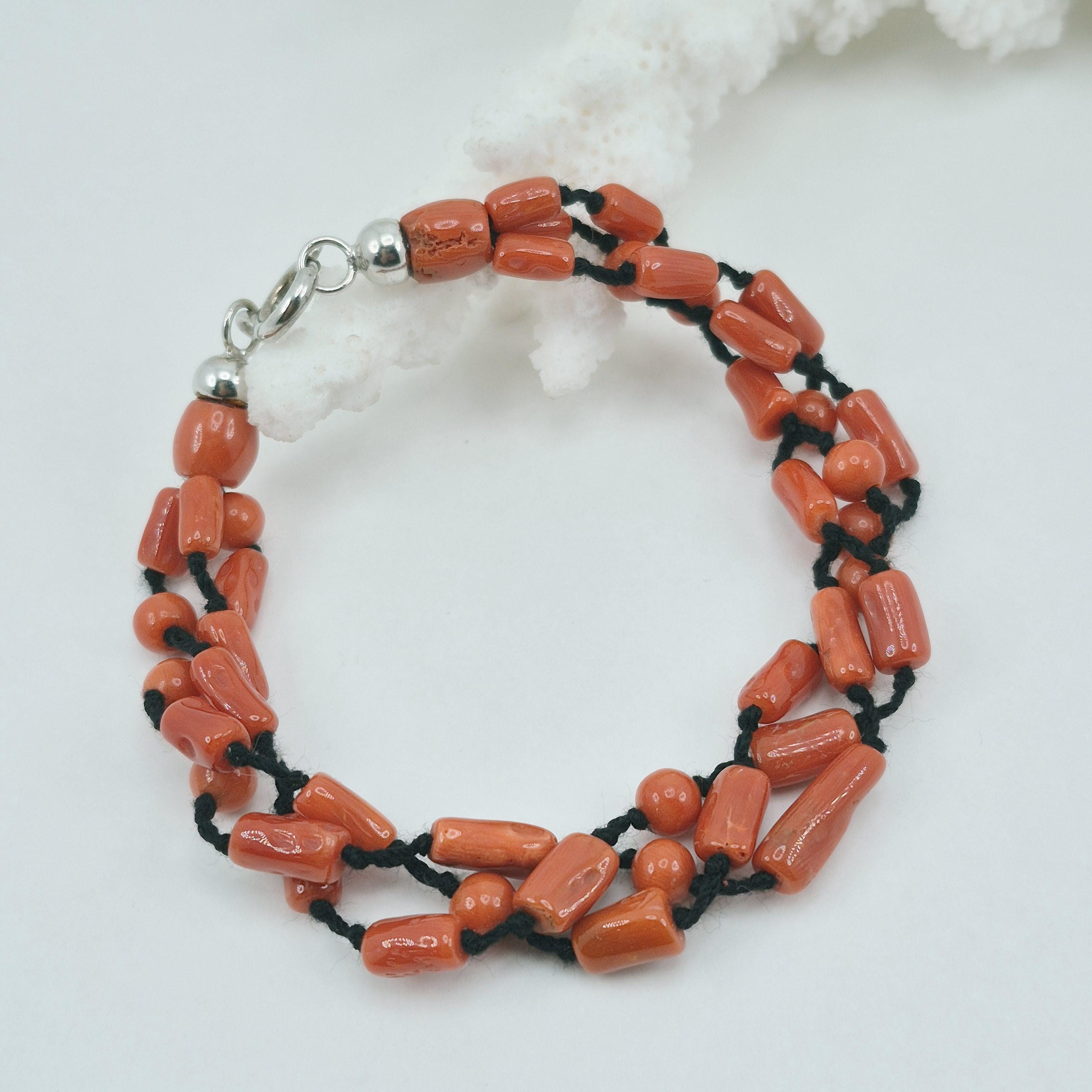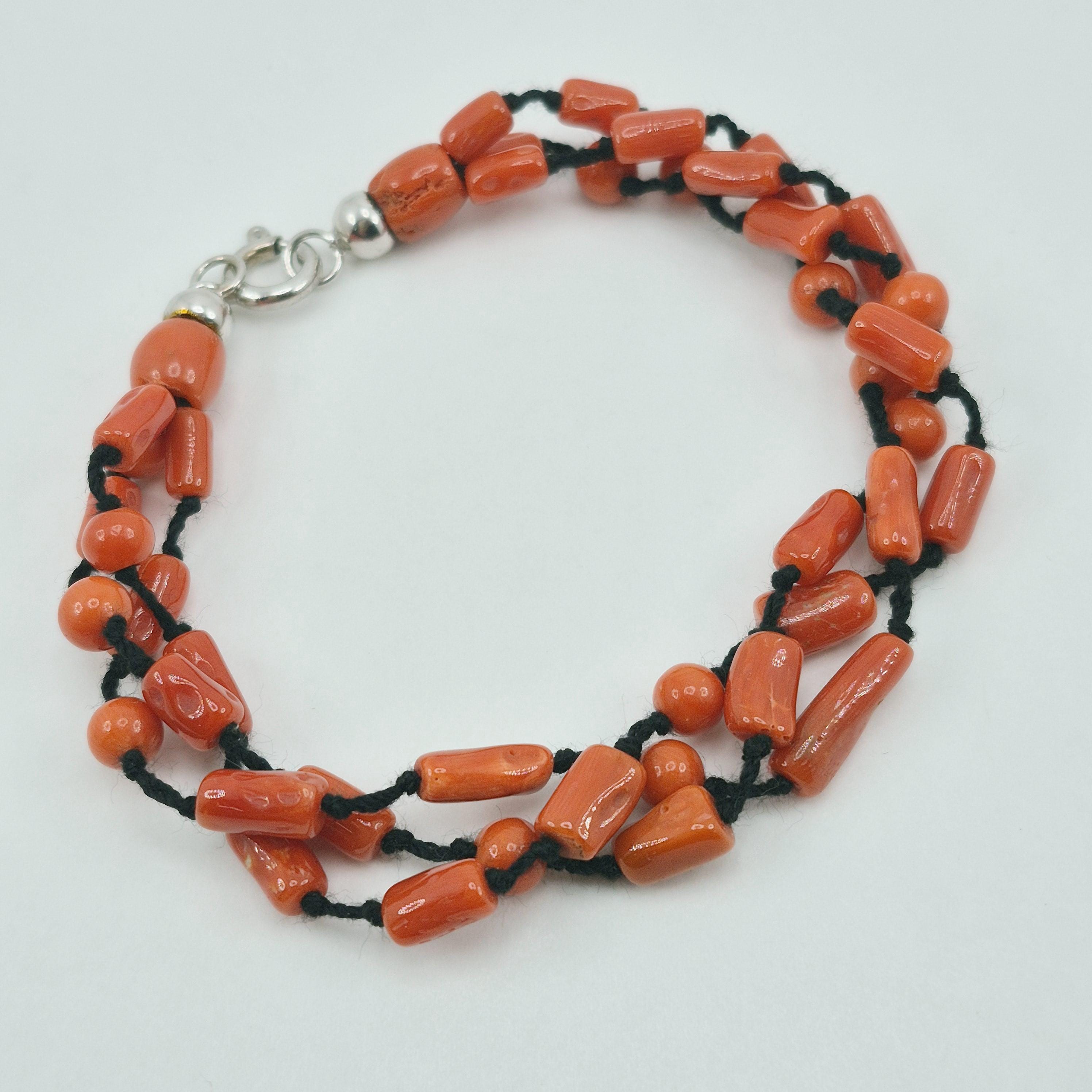 Knotted with black cotton thread using ancient knotting techniques that give the bracelet a softer effect.