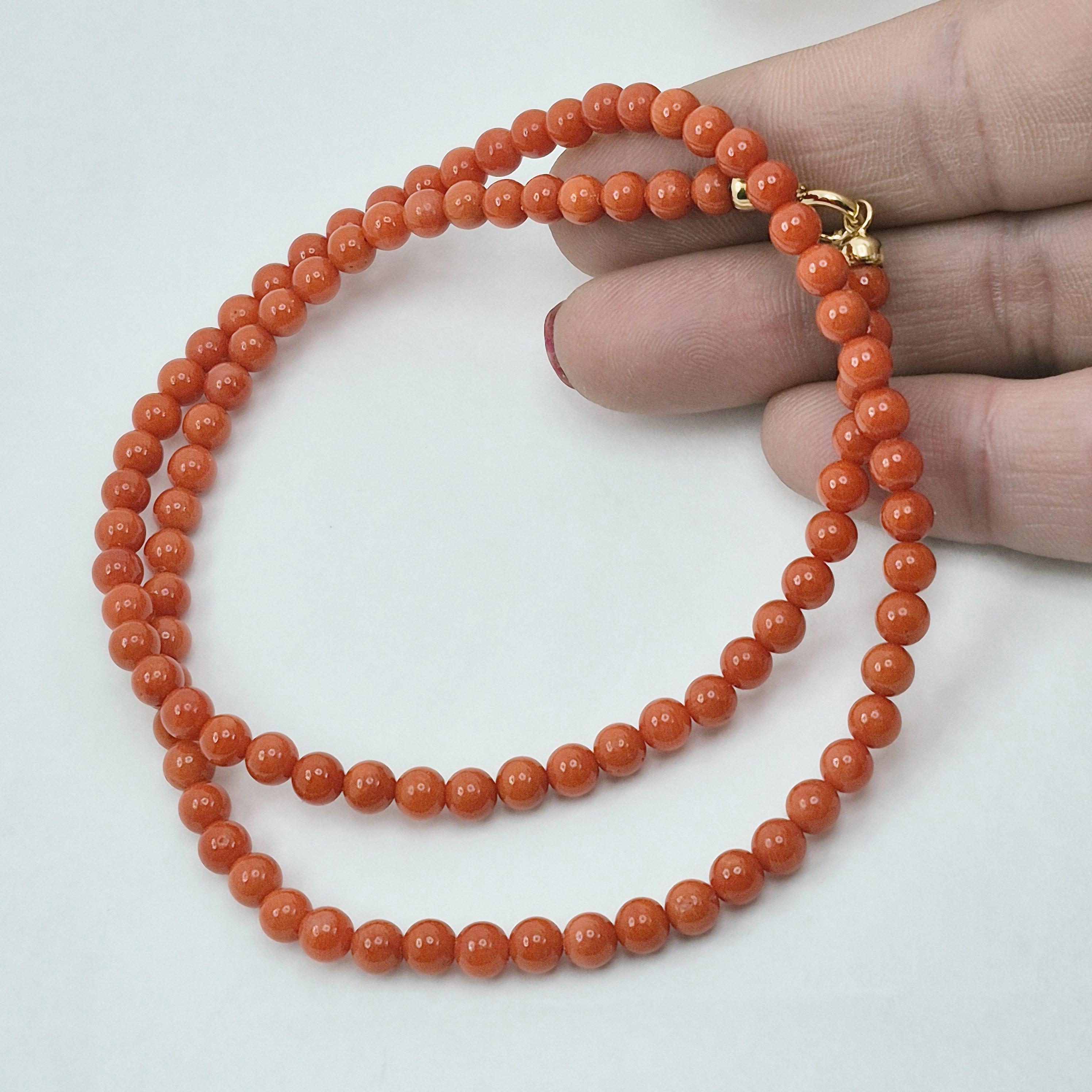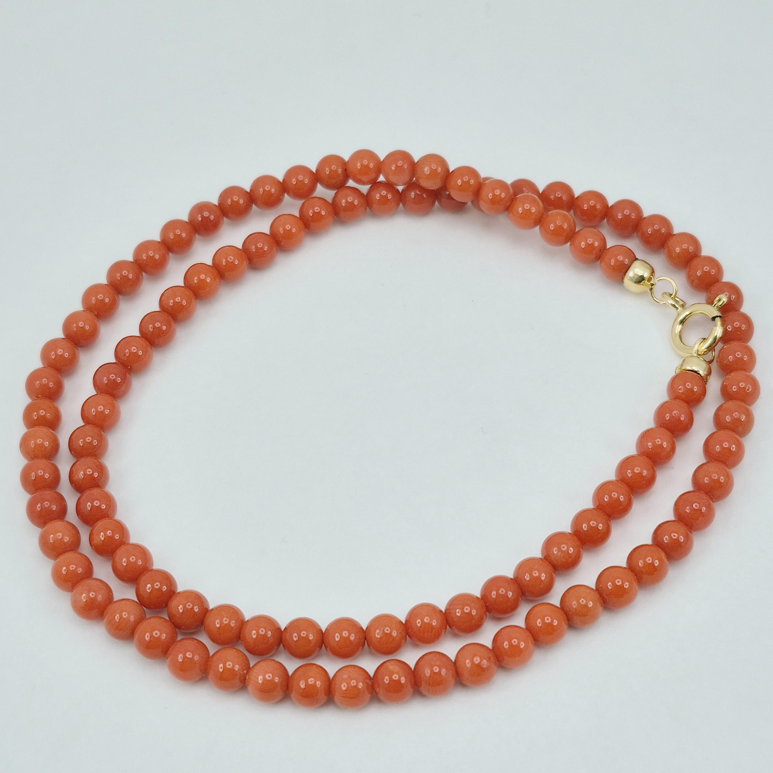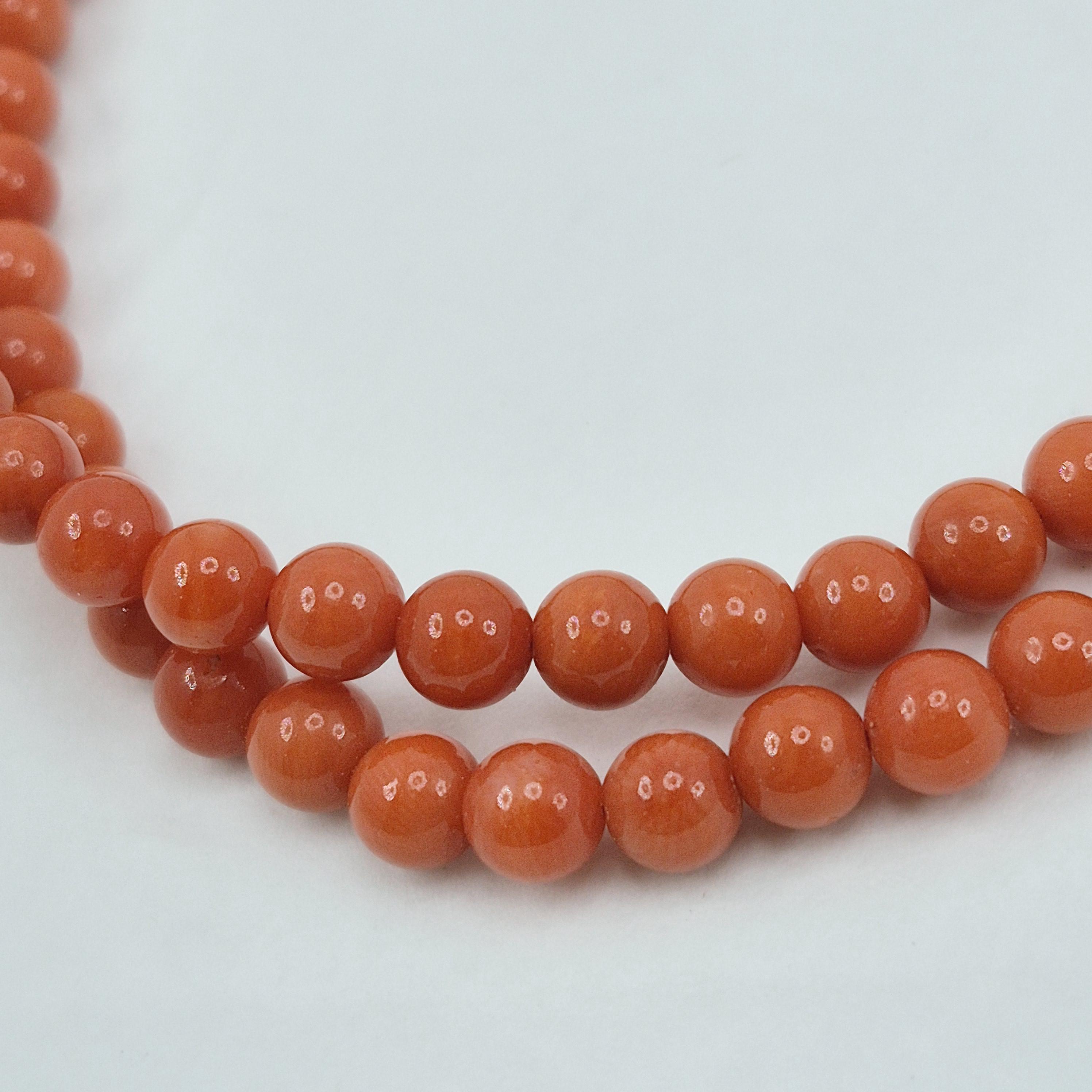 Versatile and unisex choker necklace with spheres in Mediterranean coral (Coral Rubrum).