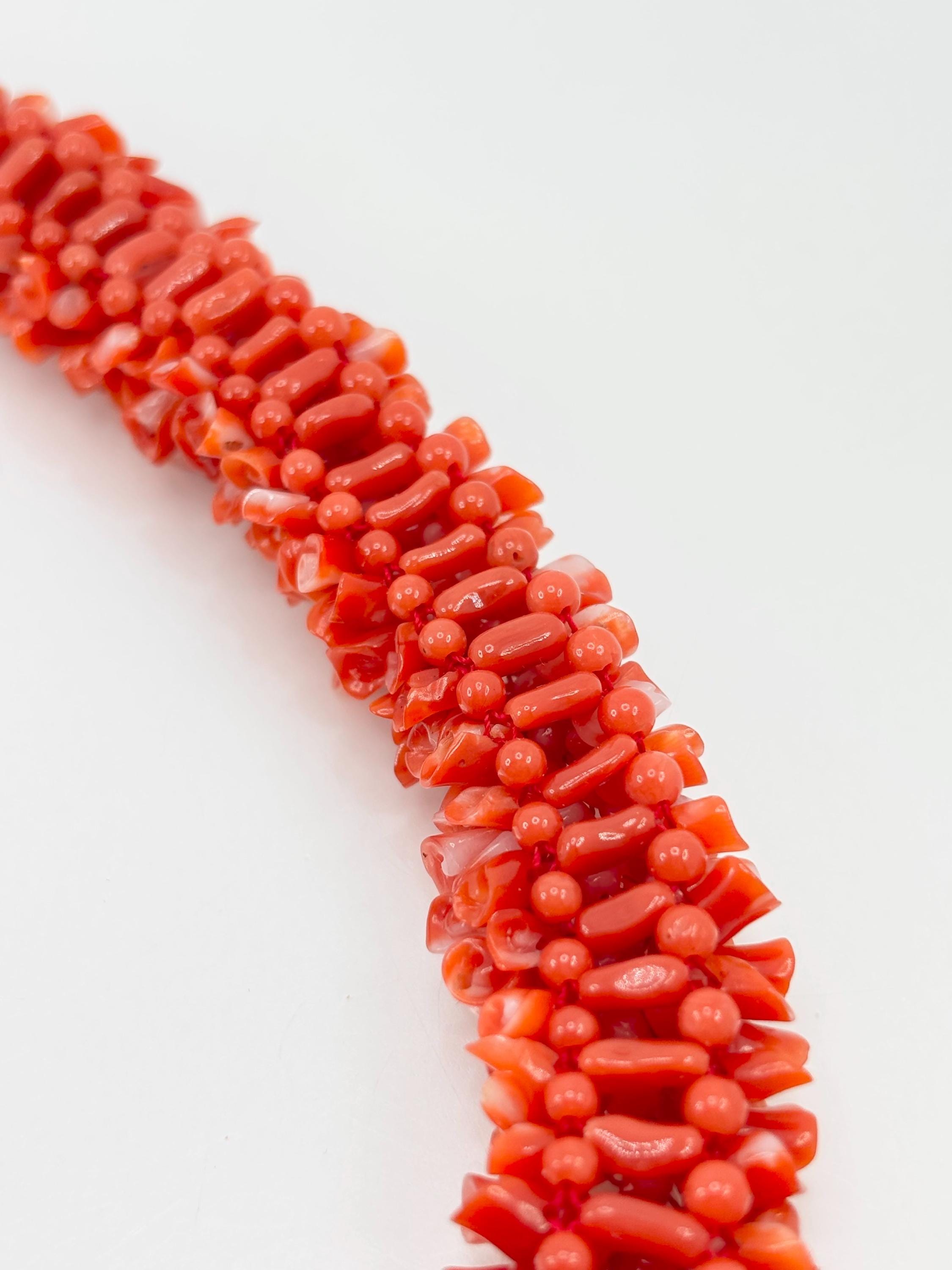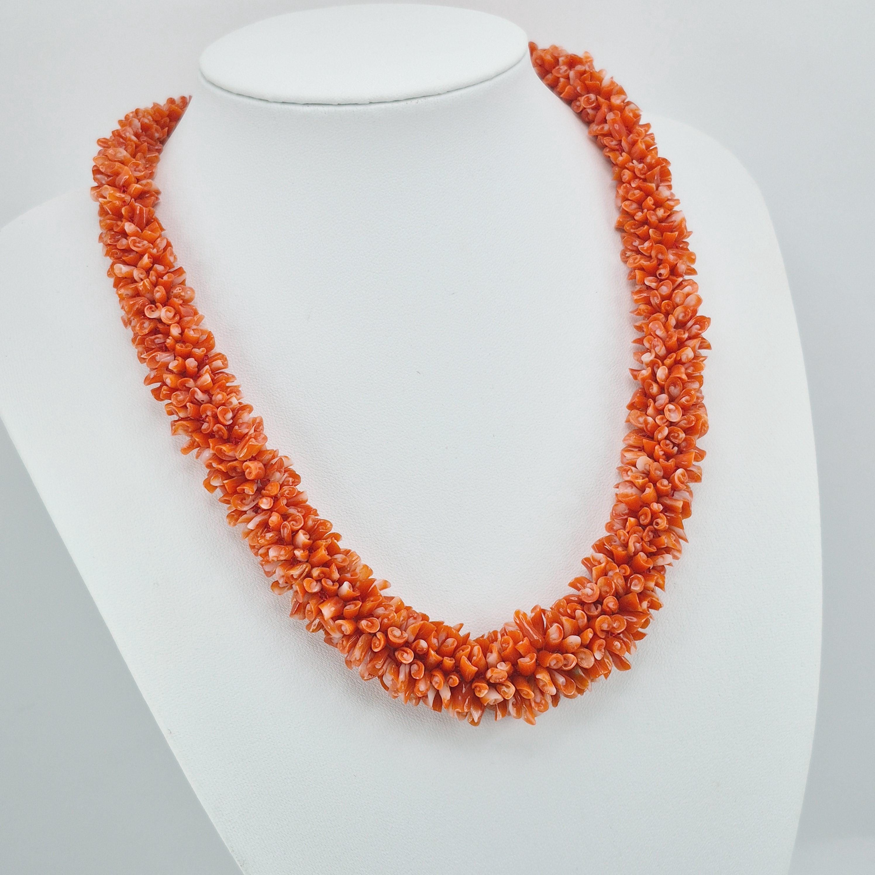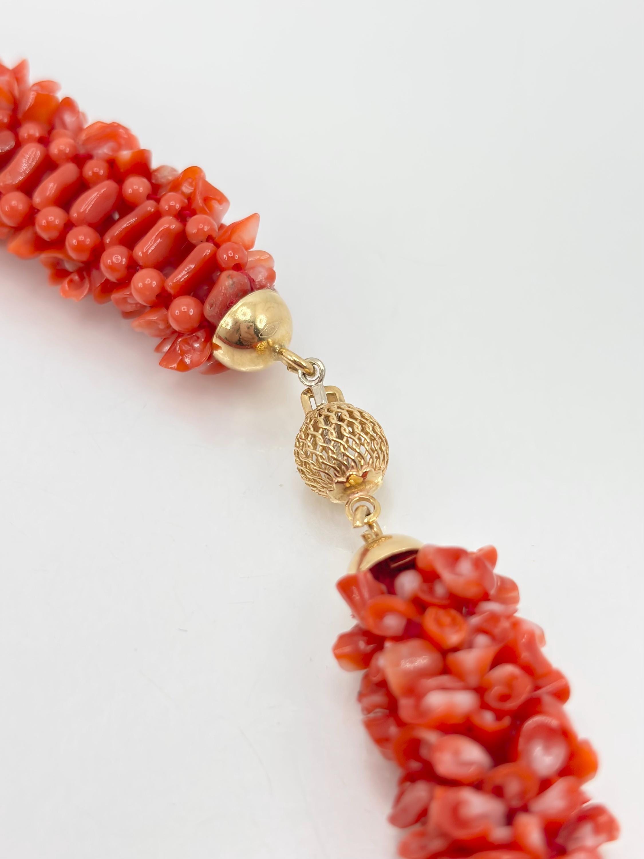An impressive necklace, both in terms of its design and weight, adds a touch of elegance and uniqueness. This is a highly prized coral that can command truly high prices. Momo or cherry coral (Corallium elatius) is characterized by a white vein running through its entire clump, making it easily recognizable and attesting to its authenticity.