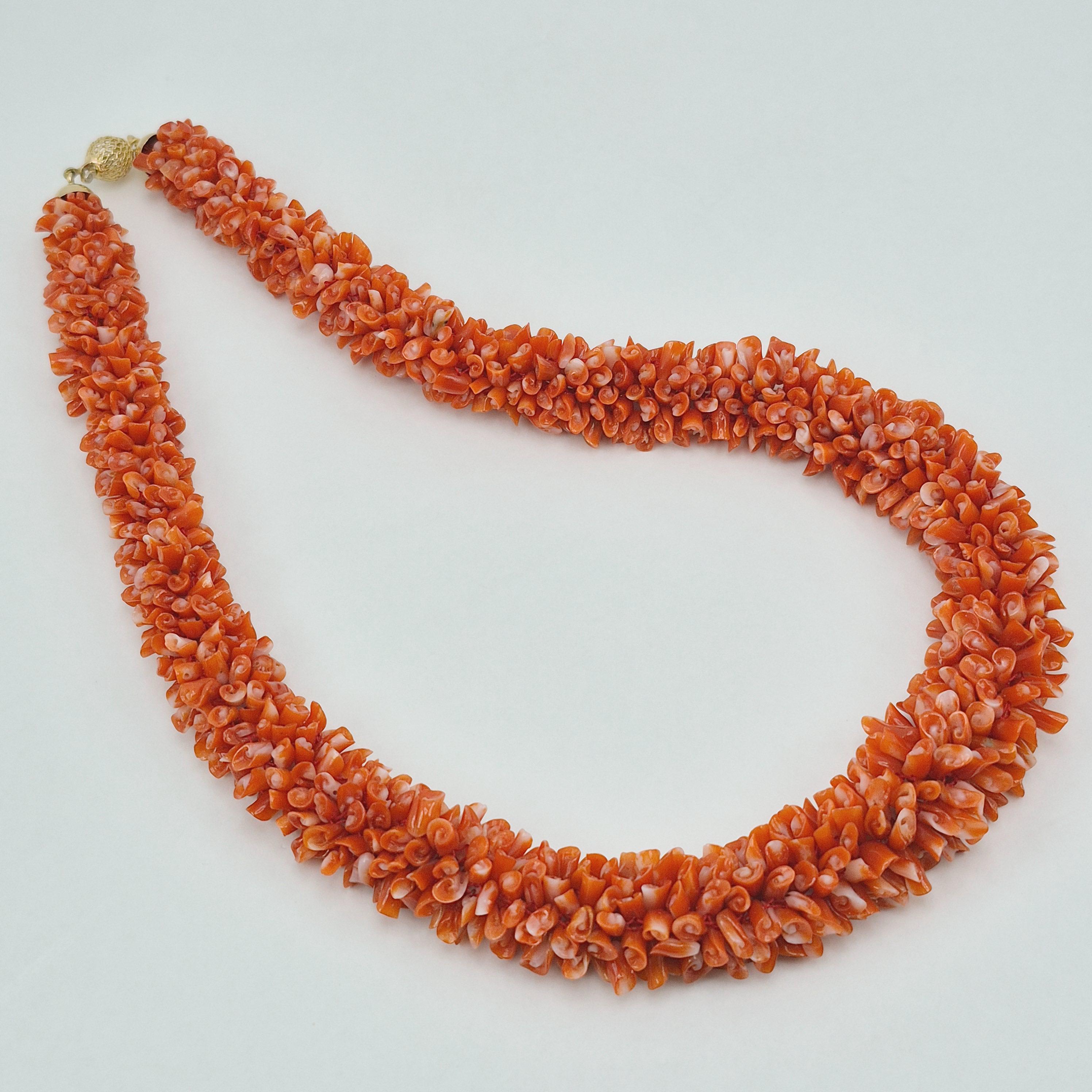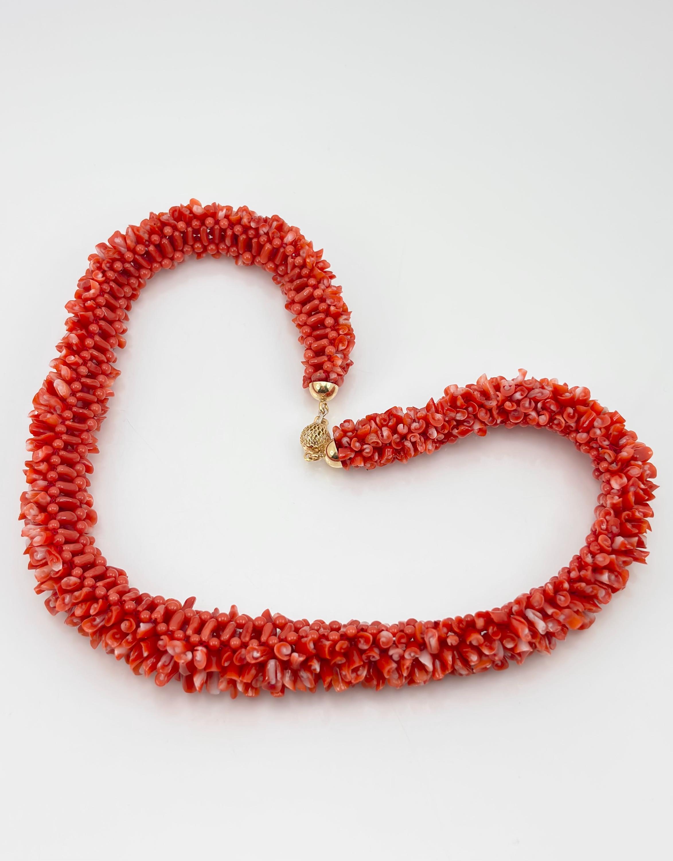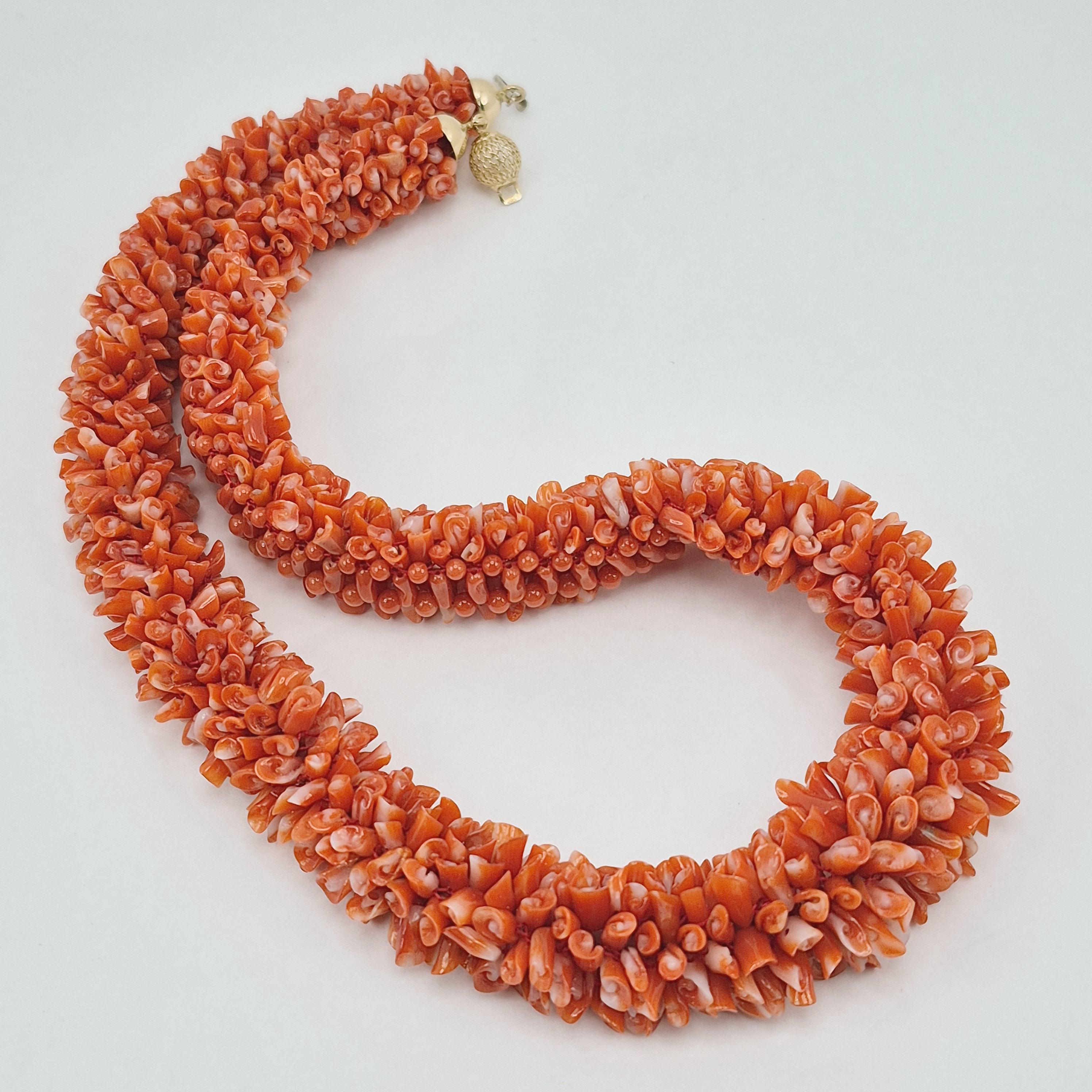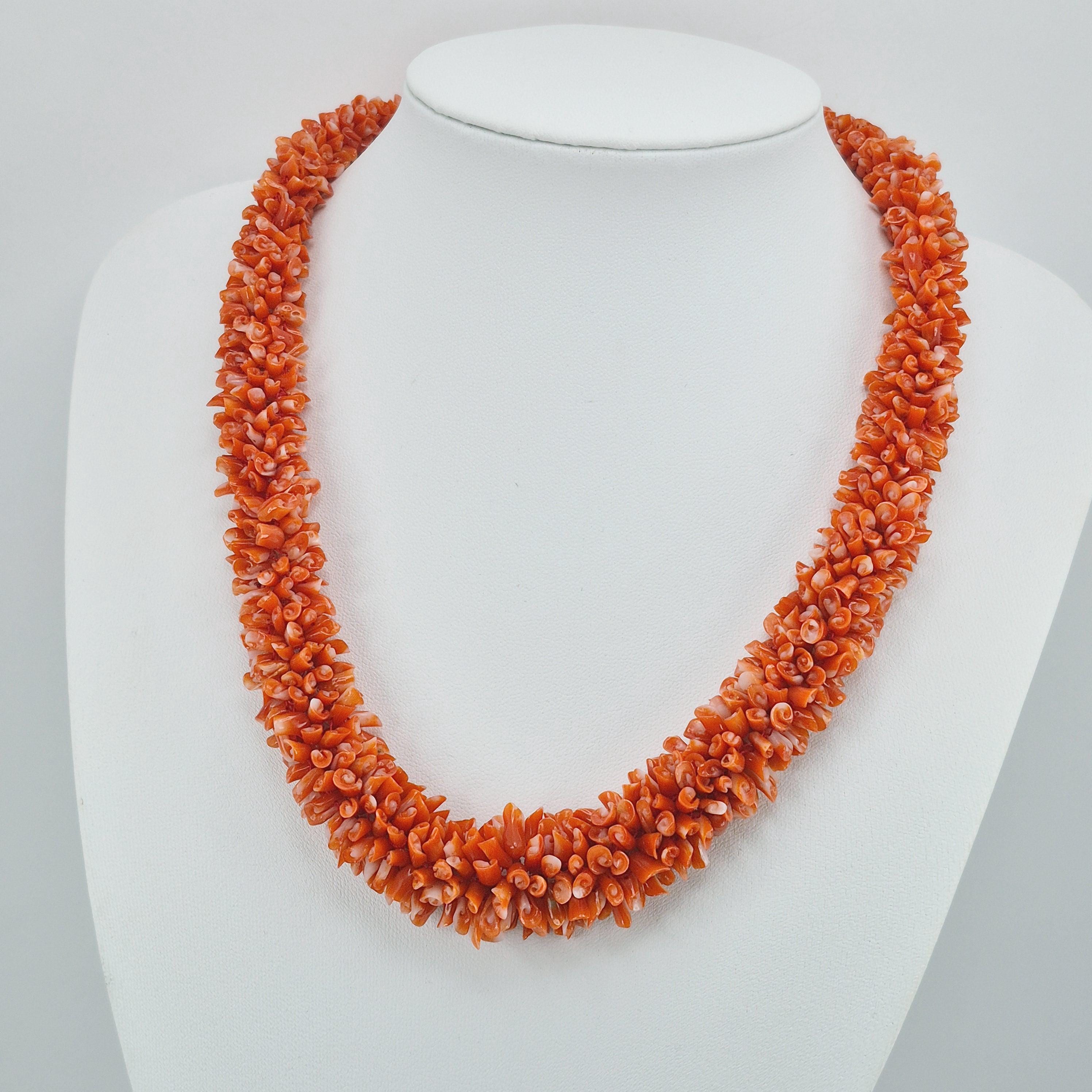 An impressive necklace, both in terms of its design and weight, adds a touch of elegance and uniqueness. This is a highly prized coral that can command truly high prices. Momo or cherry coral (Corallium elatius) is characterized by a white vein running through its entire clump, making it easily recognizable and attesting to its authenticity.