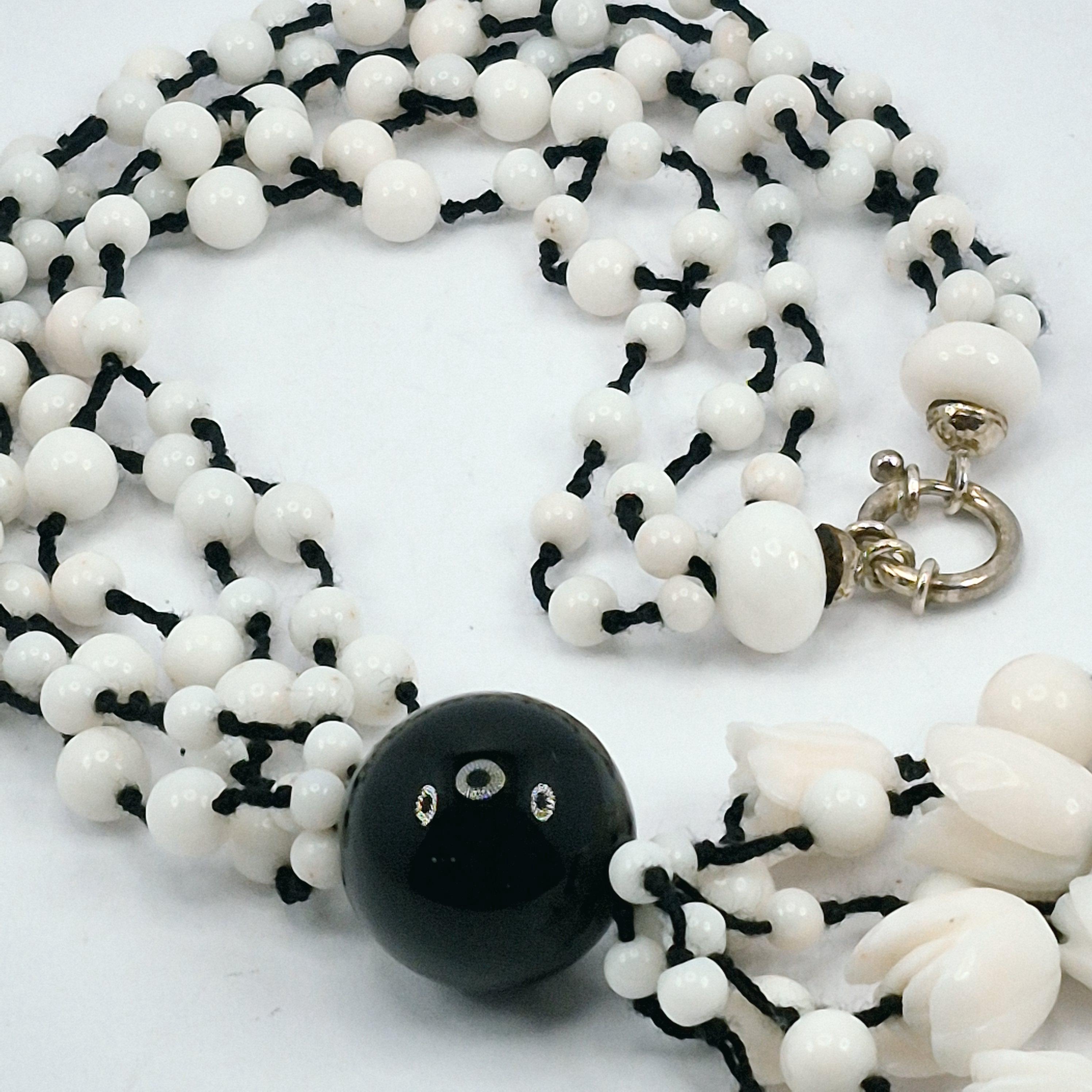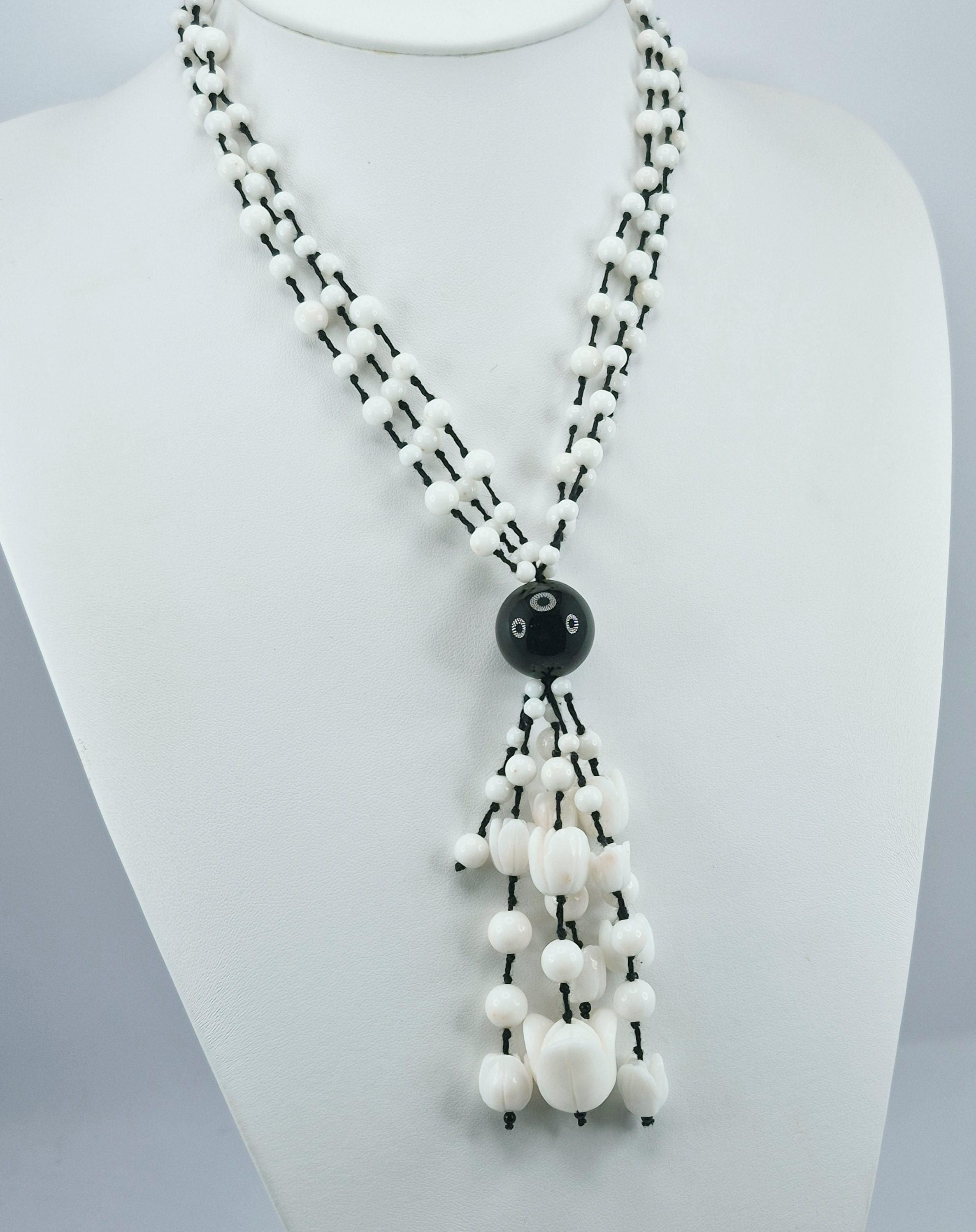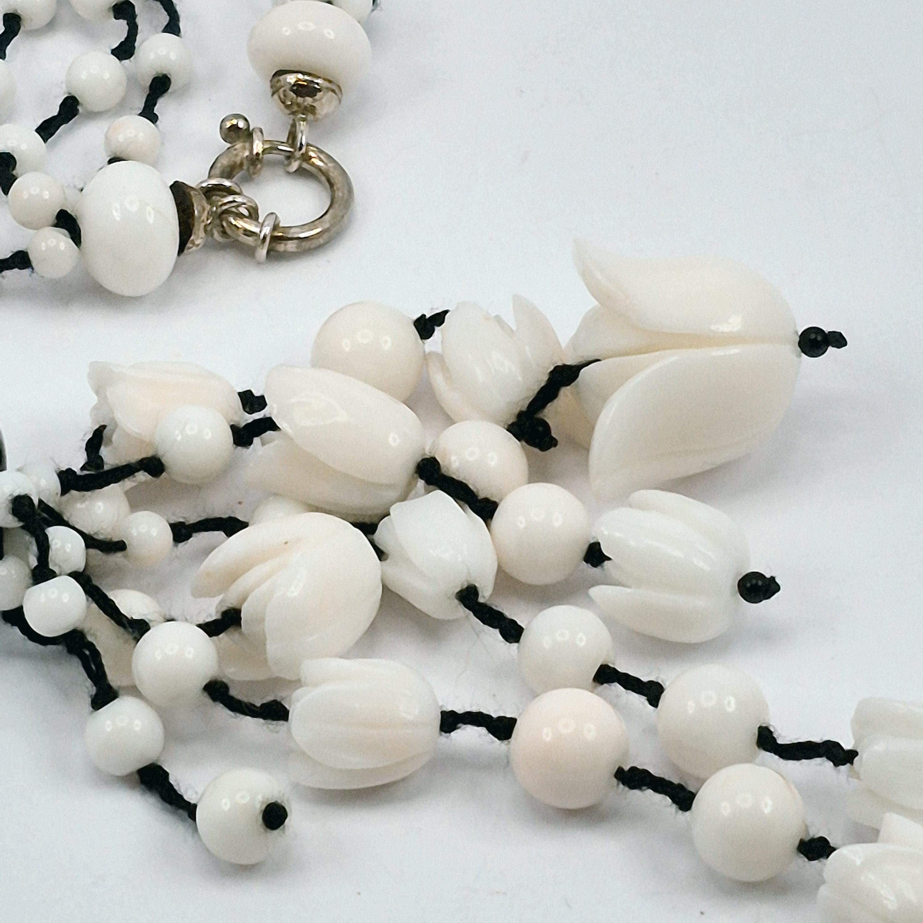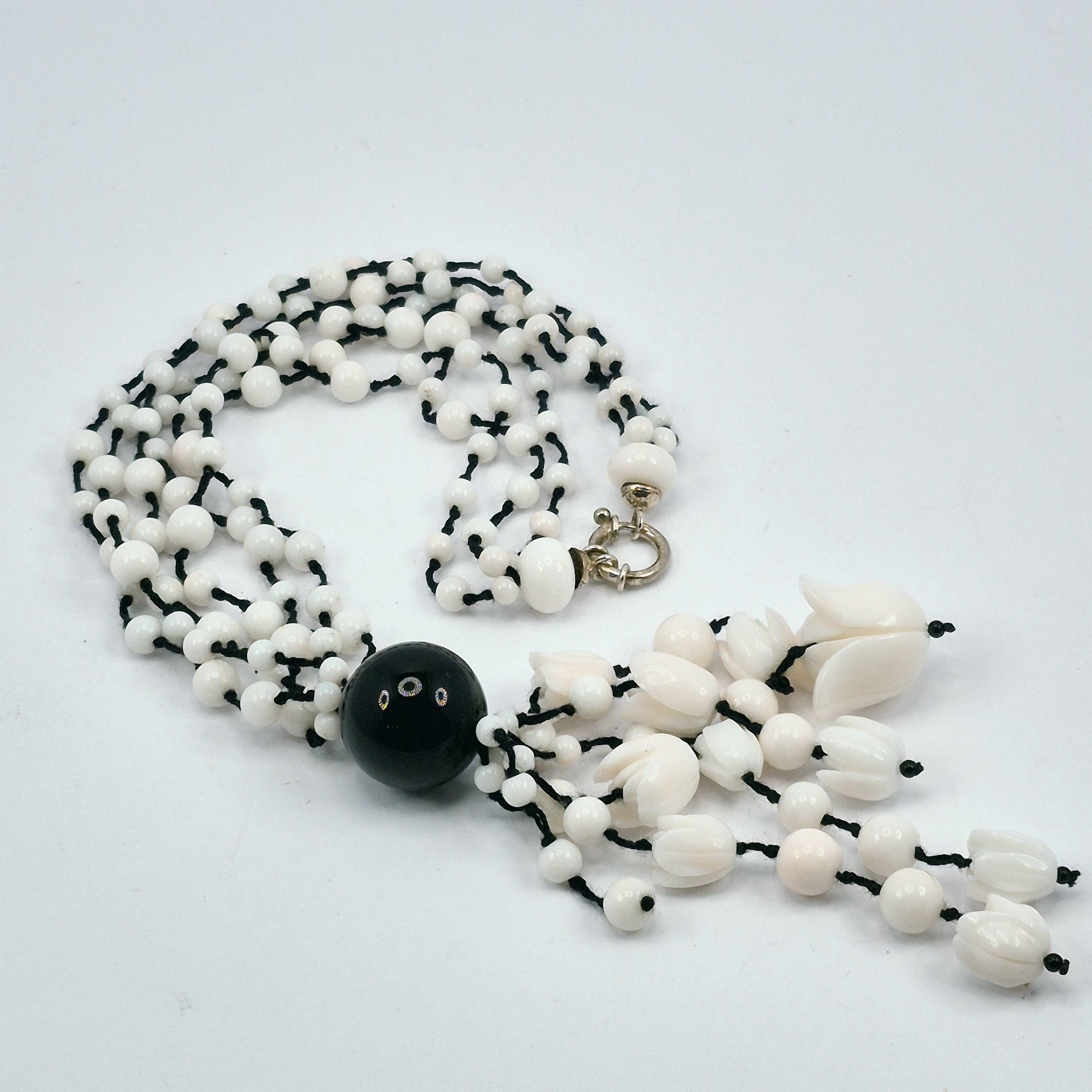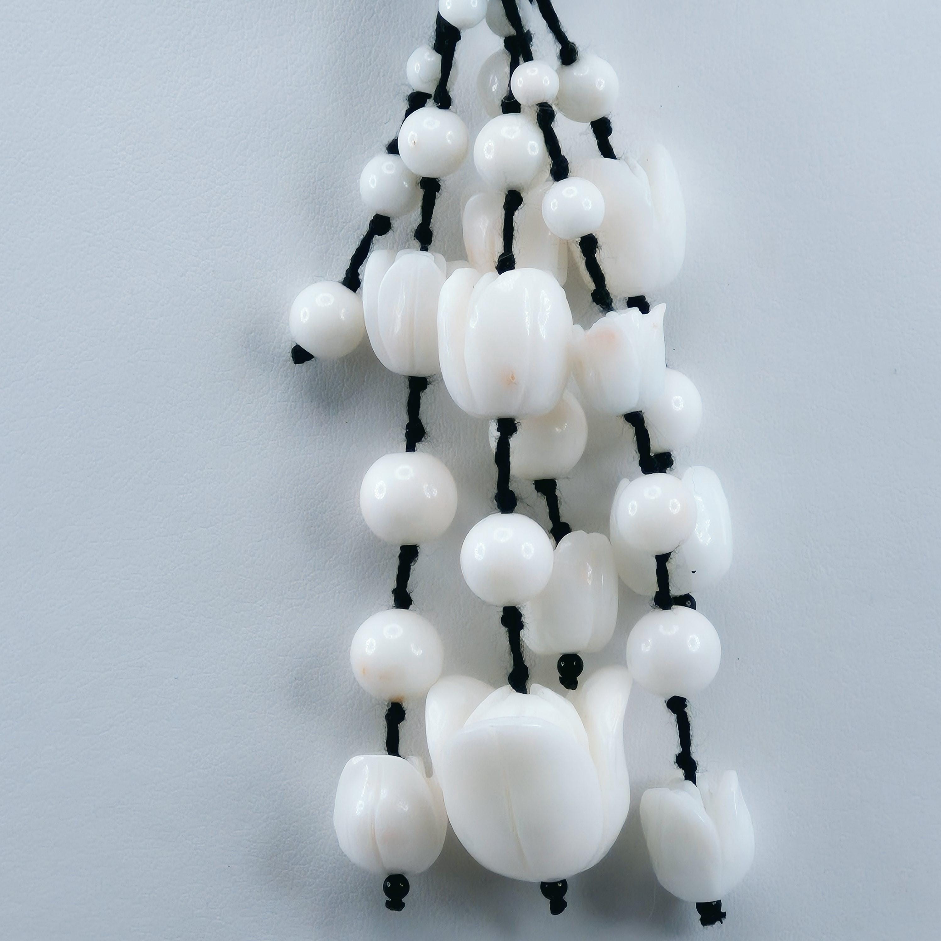 Stunning hand-engraved white coral necklace, coral from Asian seas and handcrafted.