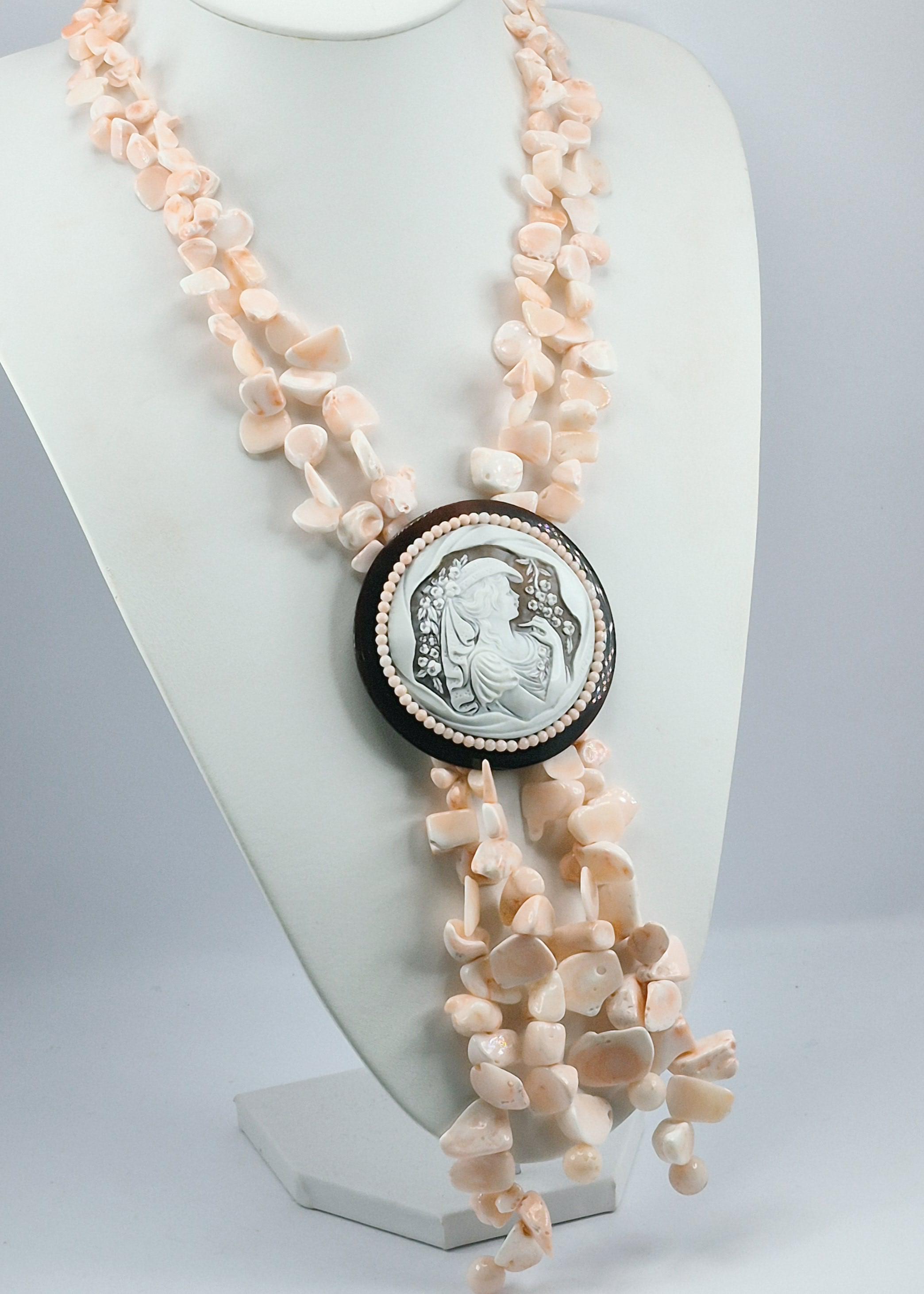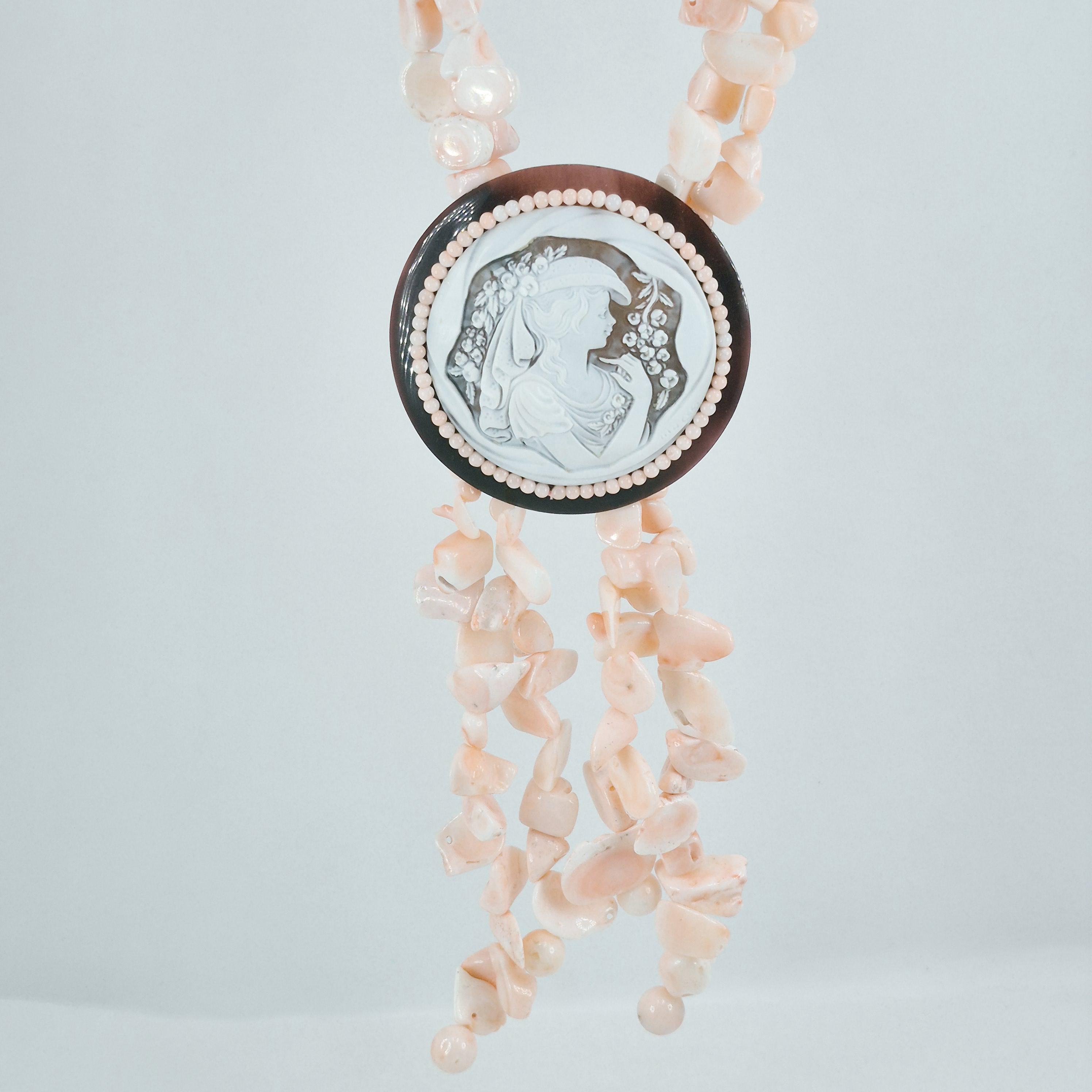 Unique and enchanting creation in pink coral from the seas of Asia and handcrafted in Torre del Greco, home of coral and cameo craftsmanship for generations.