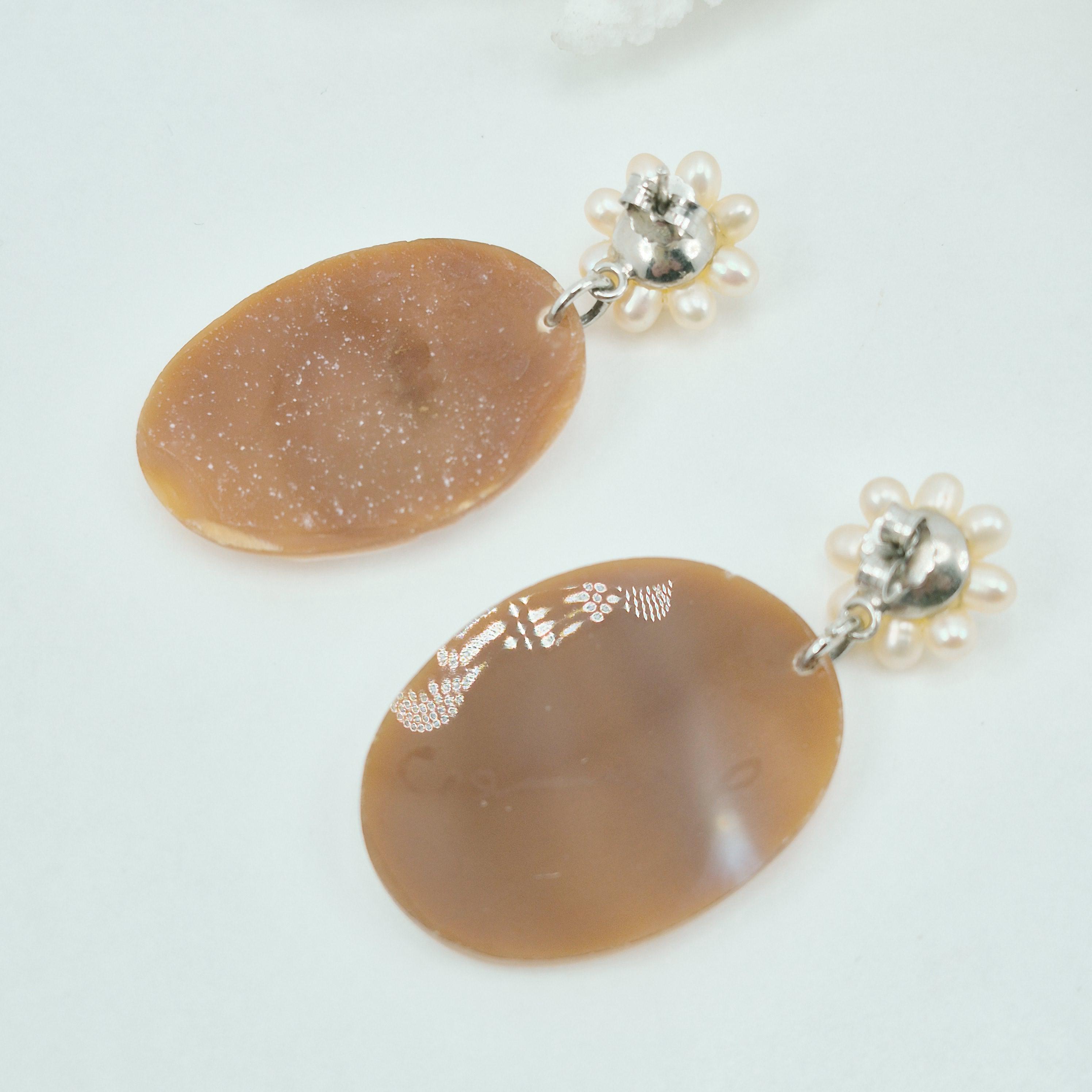 On the earlobe, a flower in beads worked with the multi-needle weaving technique.