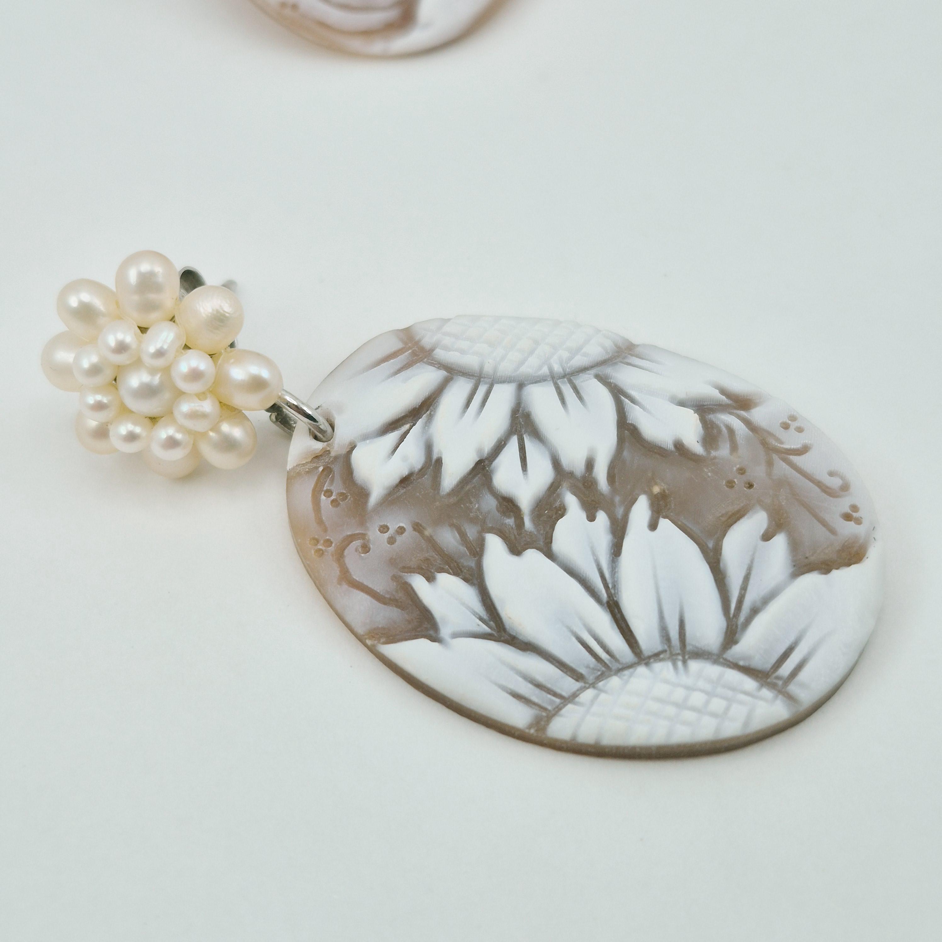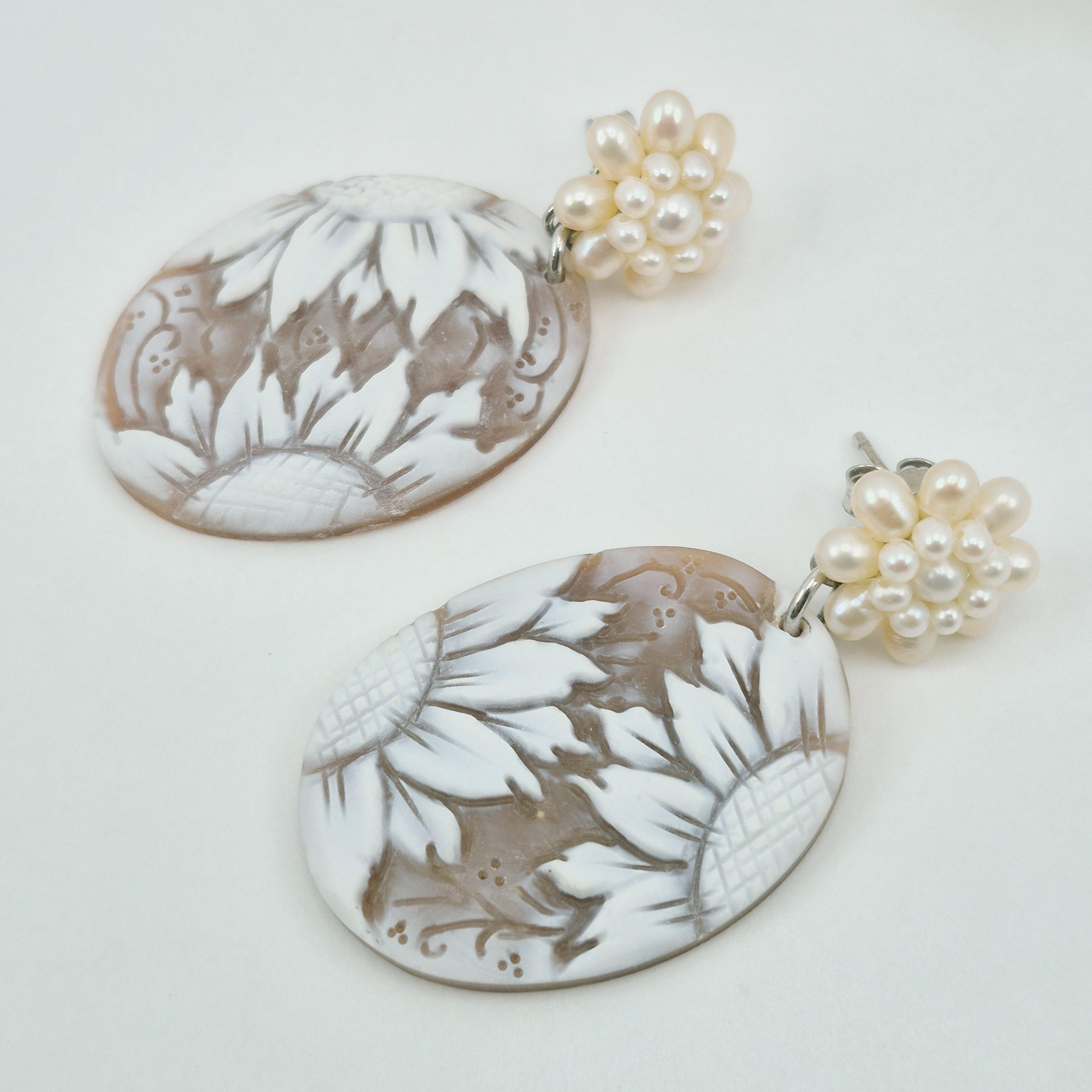 Beautiful, lightweight and unique oval floral cameo earrings, hand-engraved in Torre del Greco, the home of cameo engraving for generations.