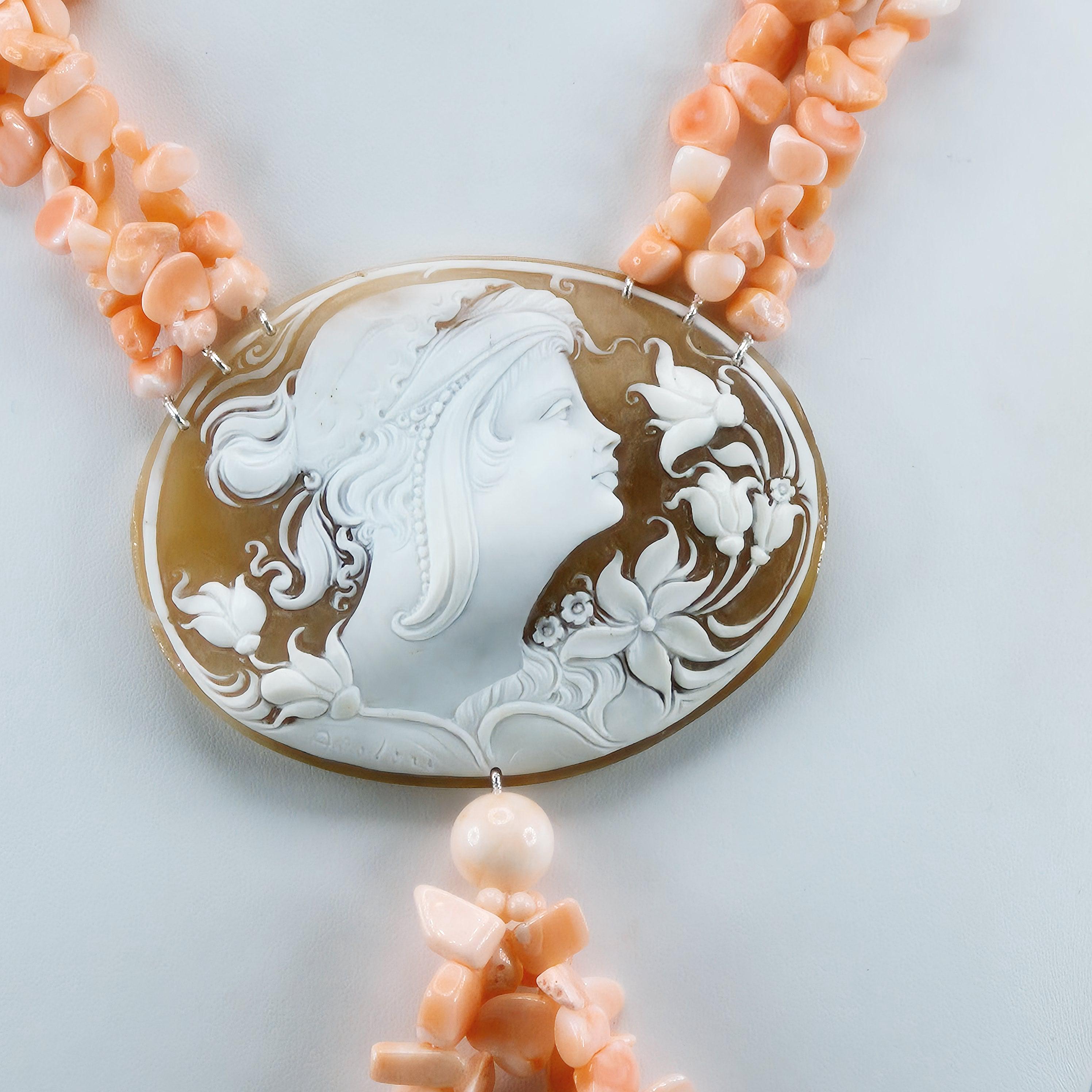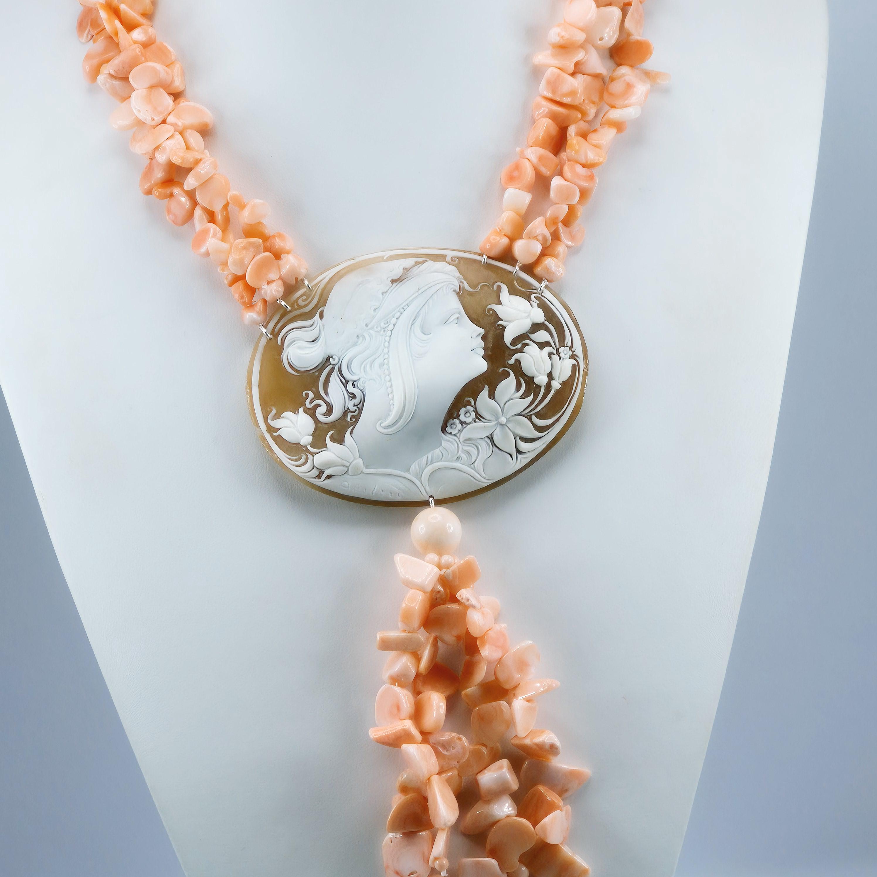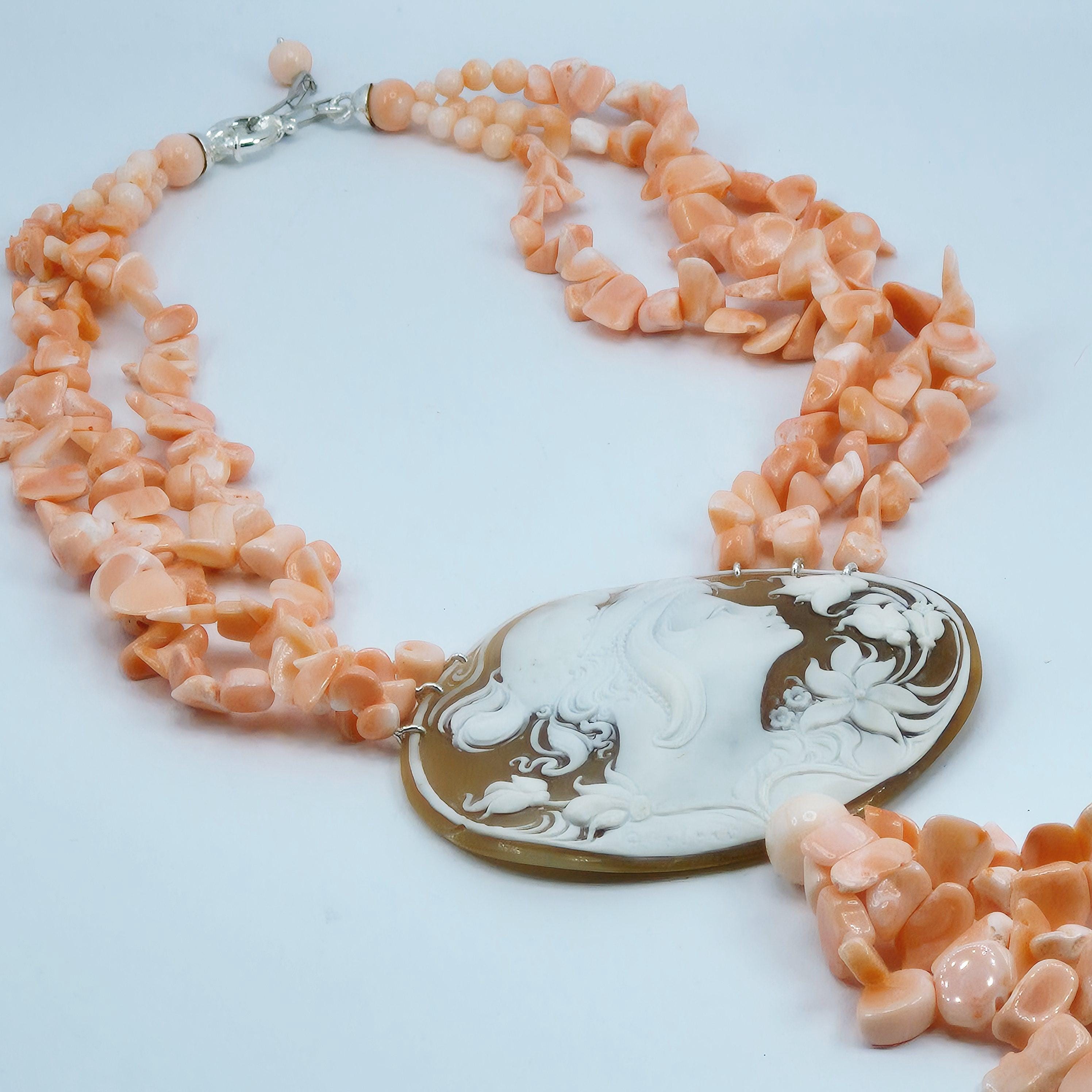 Pink Coral and Cameo Necklace, pink coral and cameo necklace, 925 silver, Italian craftsmanship, stunning Pacific coral necklace.