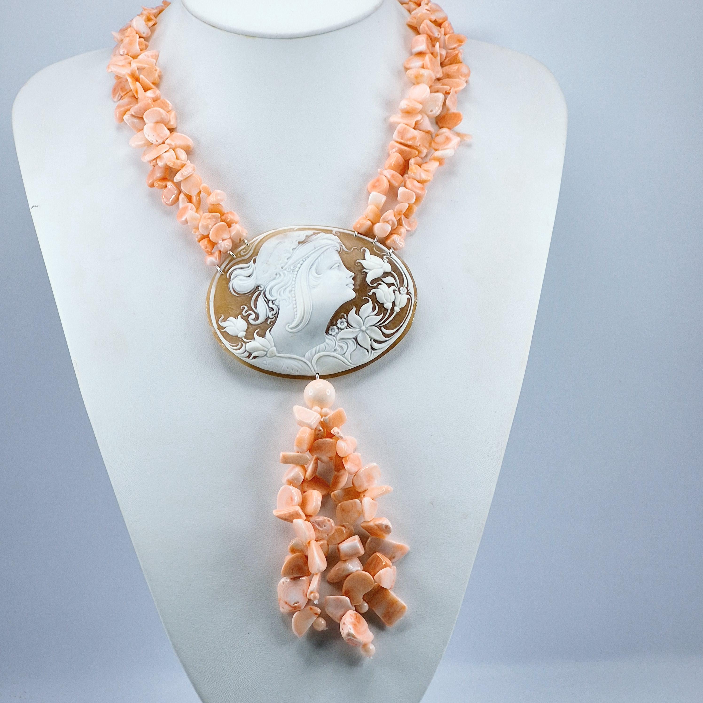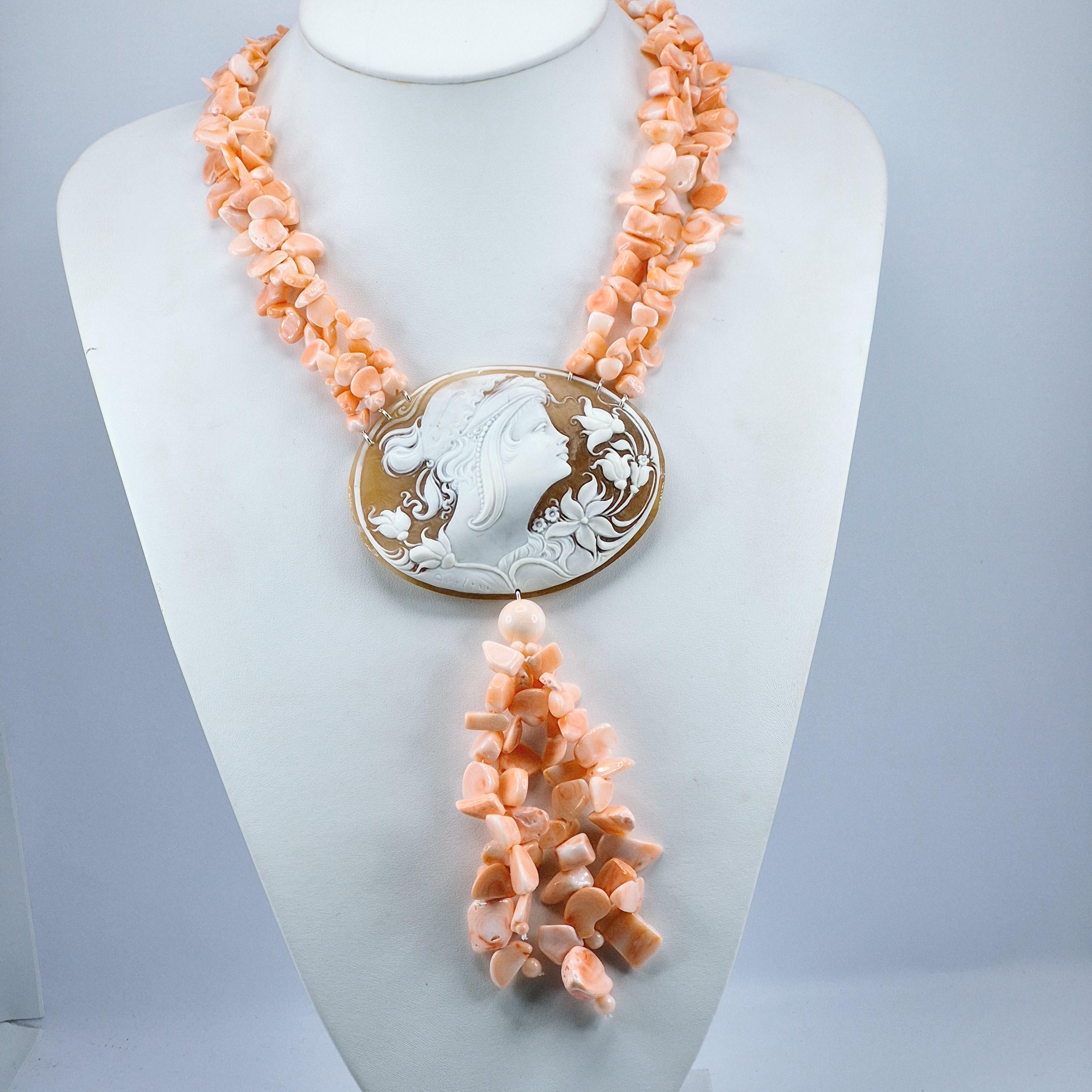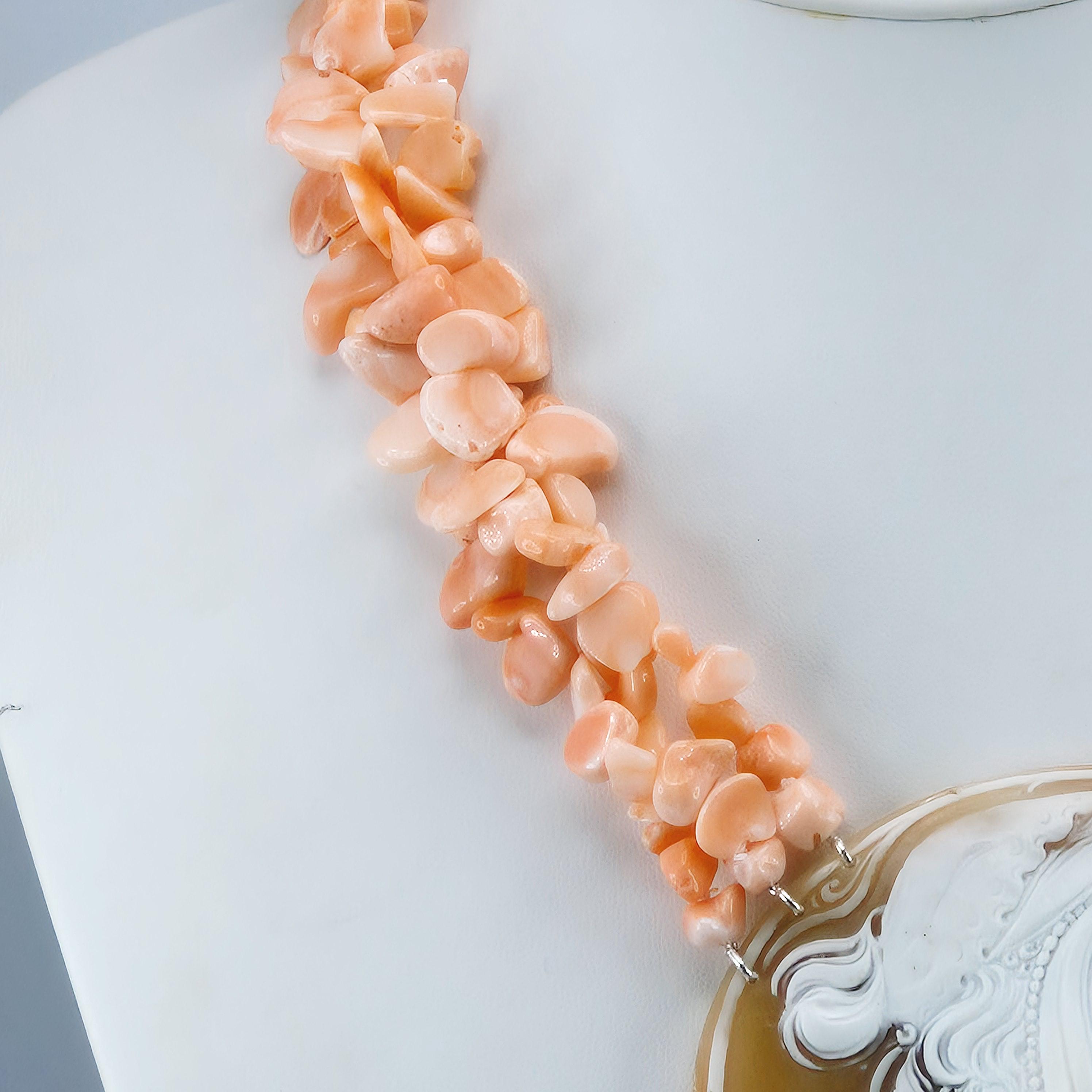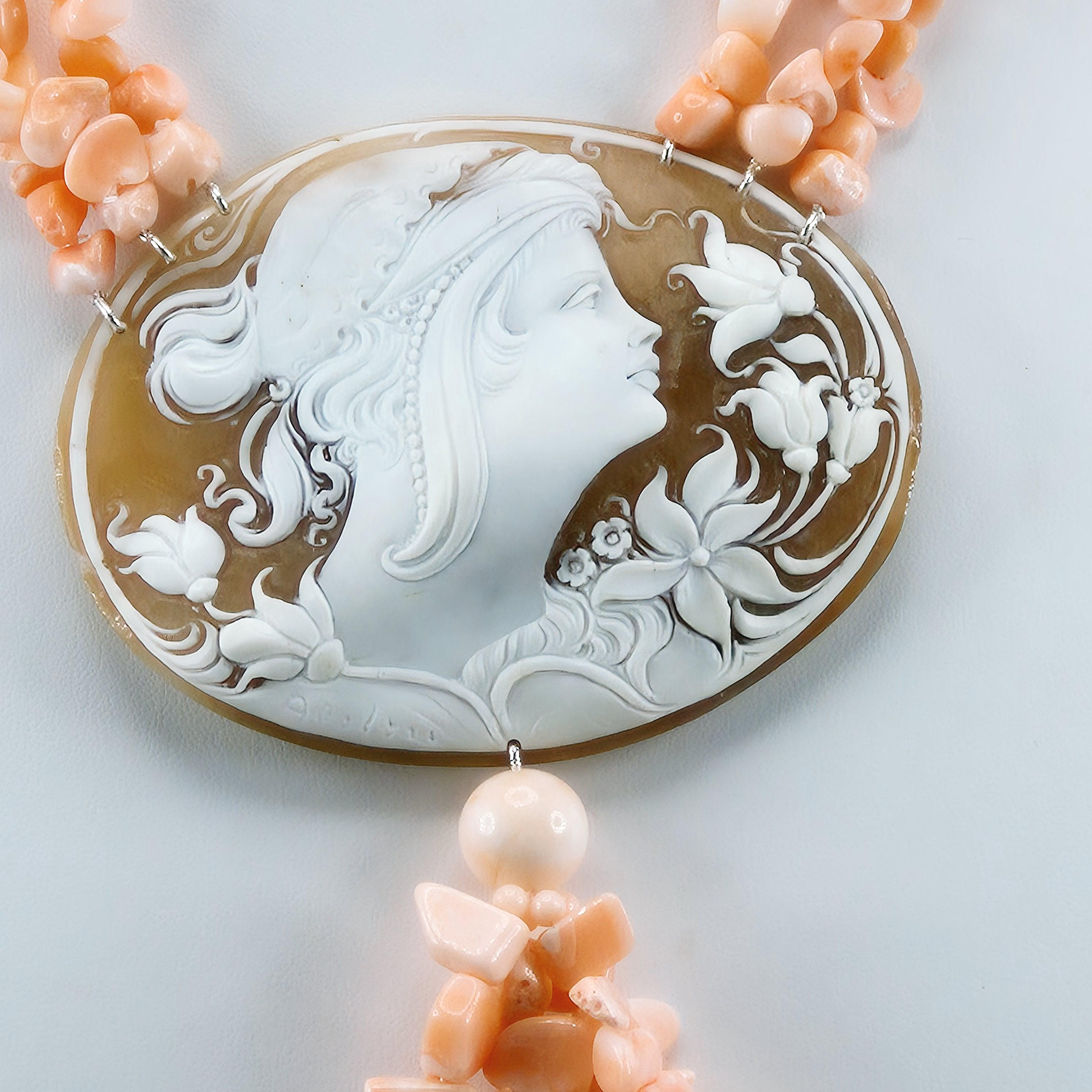 Pink Coral and Cameo Necklace, pink coral and cameo necklace, 925 silver, Italian craftsmanship, stunning Pacific coral necklace.