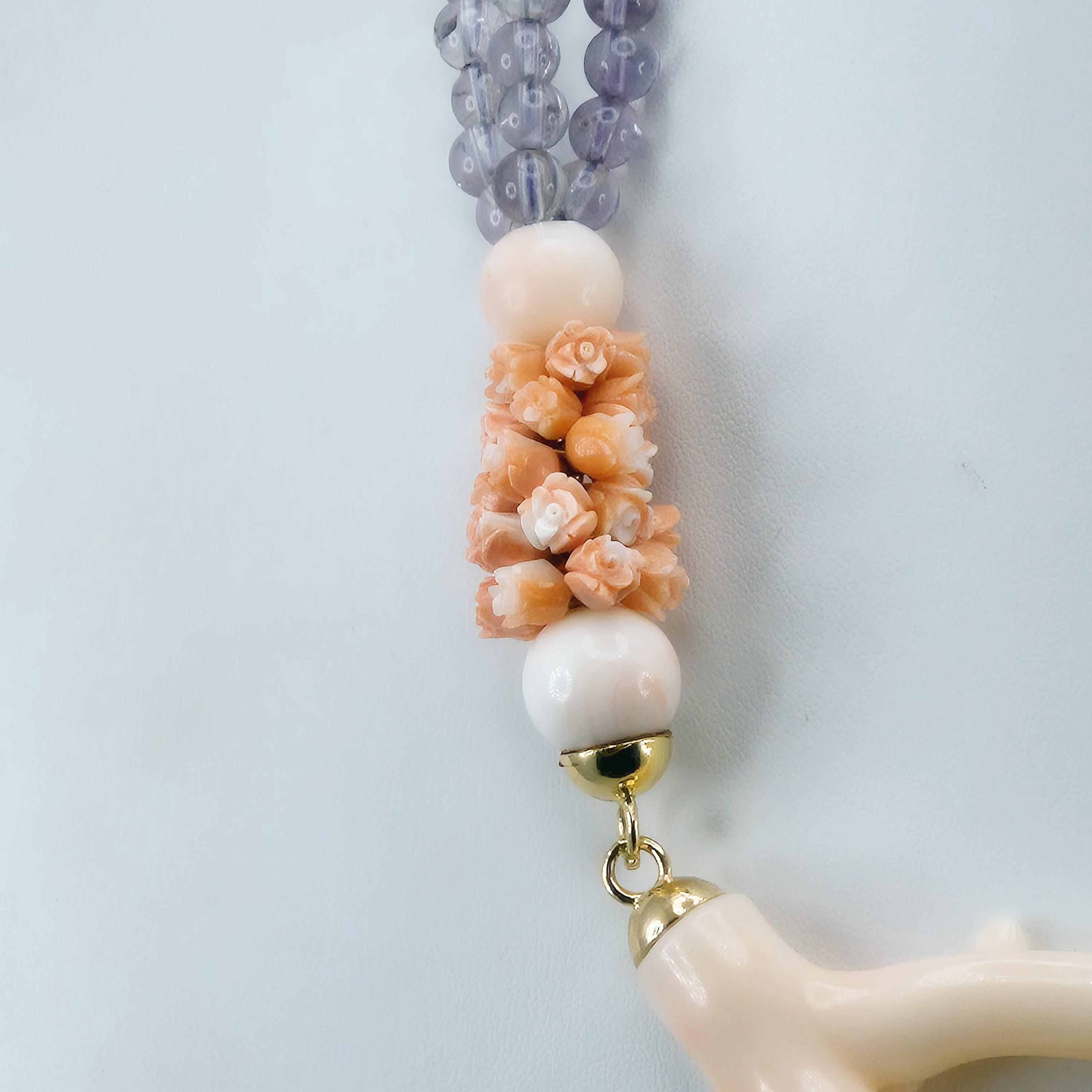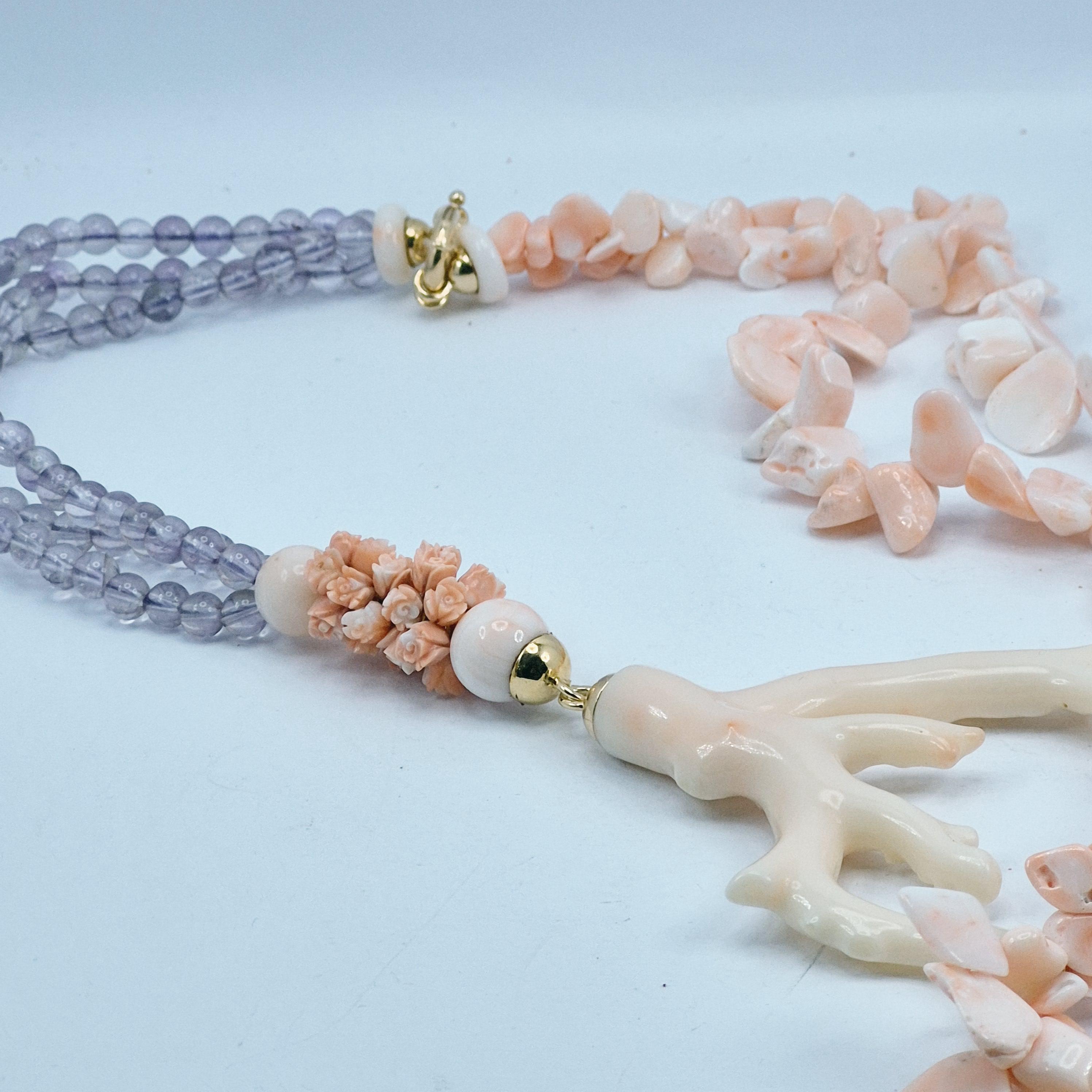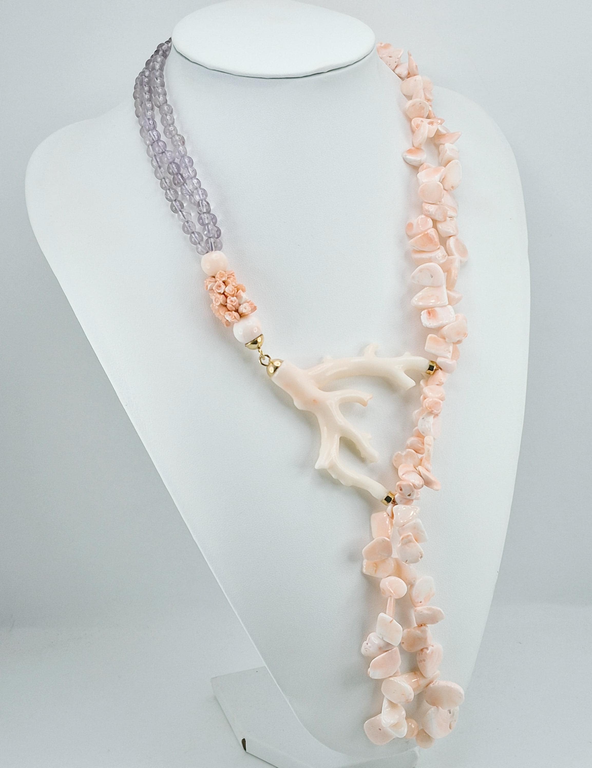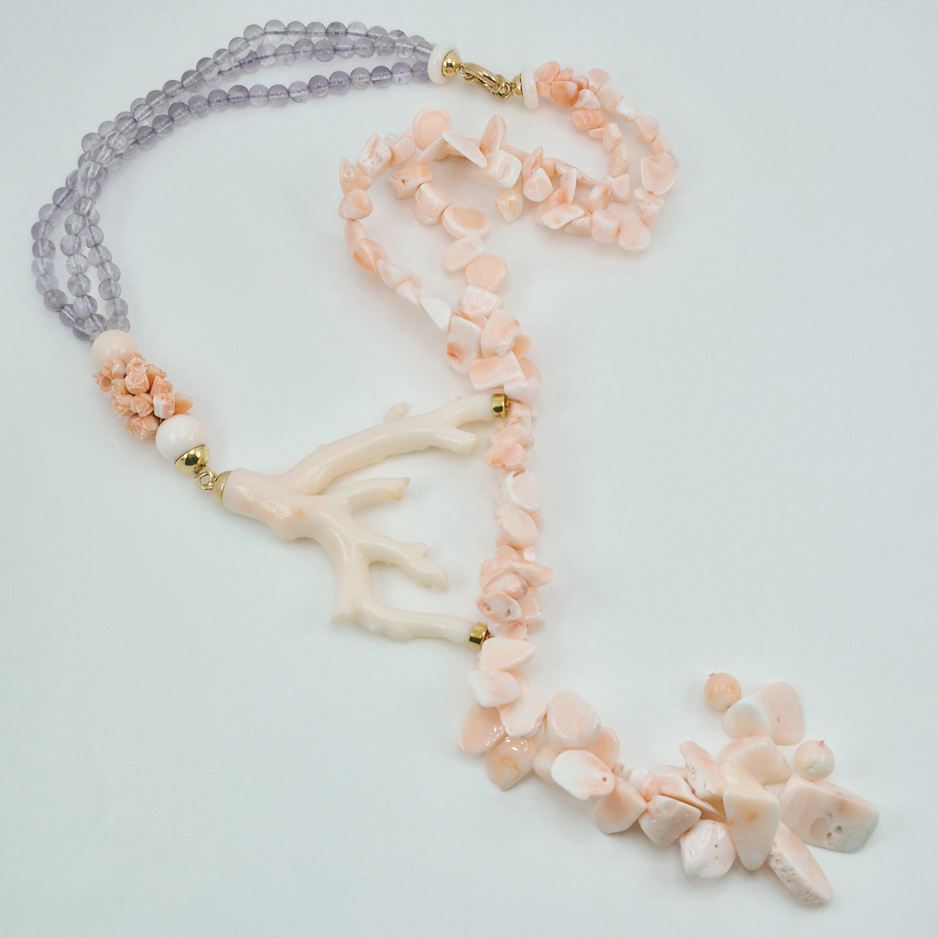 This creation, entirely made in Italy, in pink coral from Asian seas and amethyst, also from Asia, is enchanting.