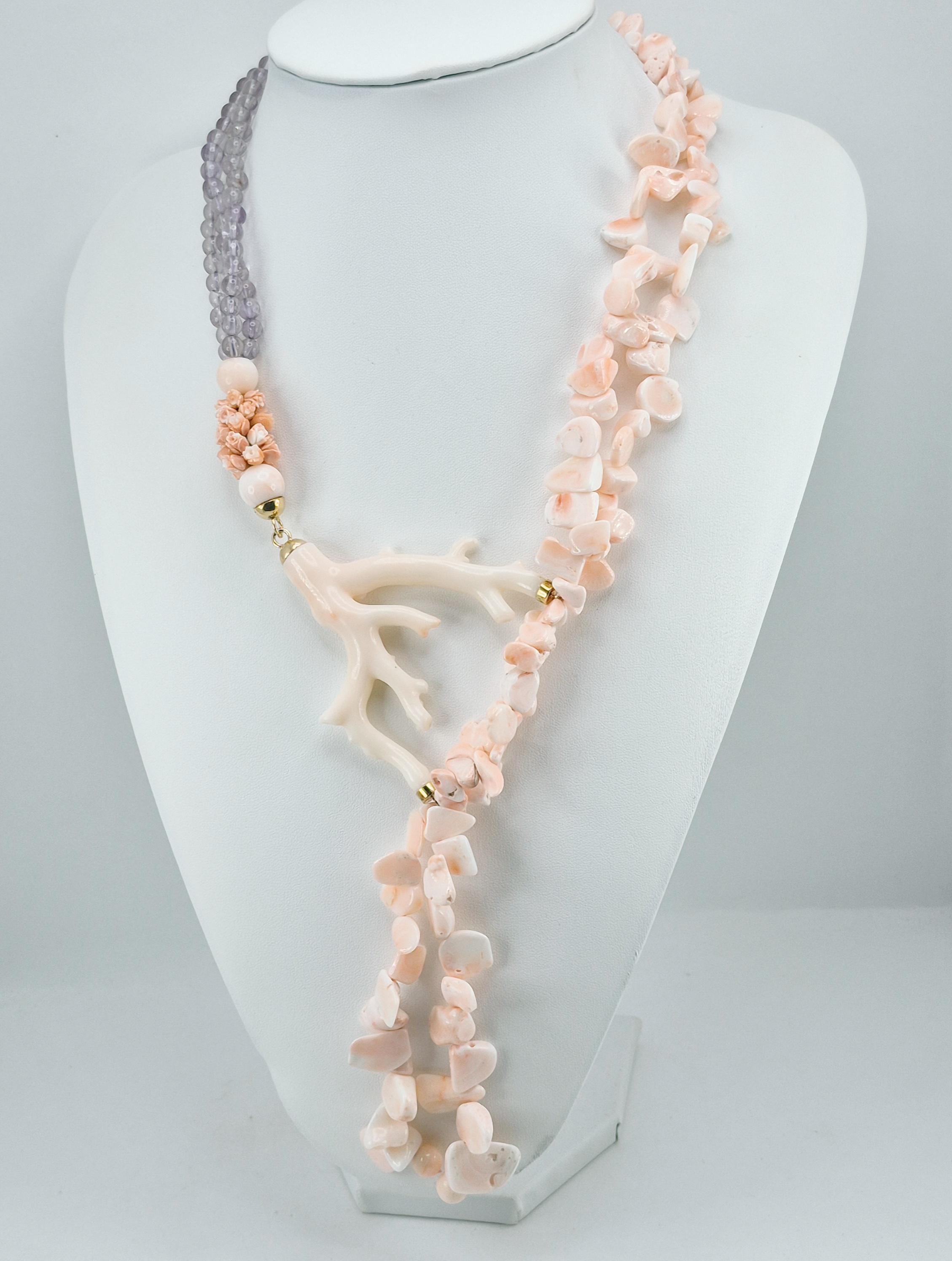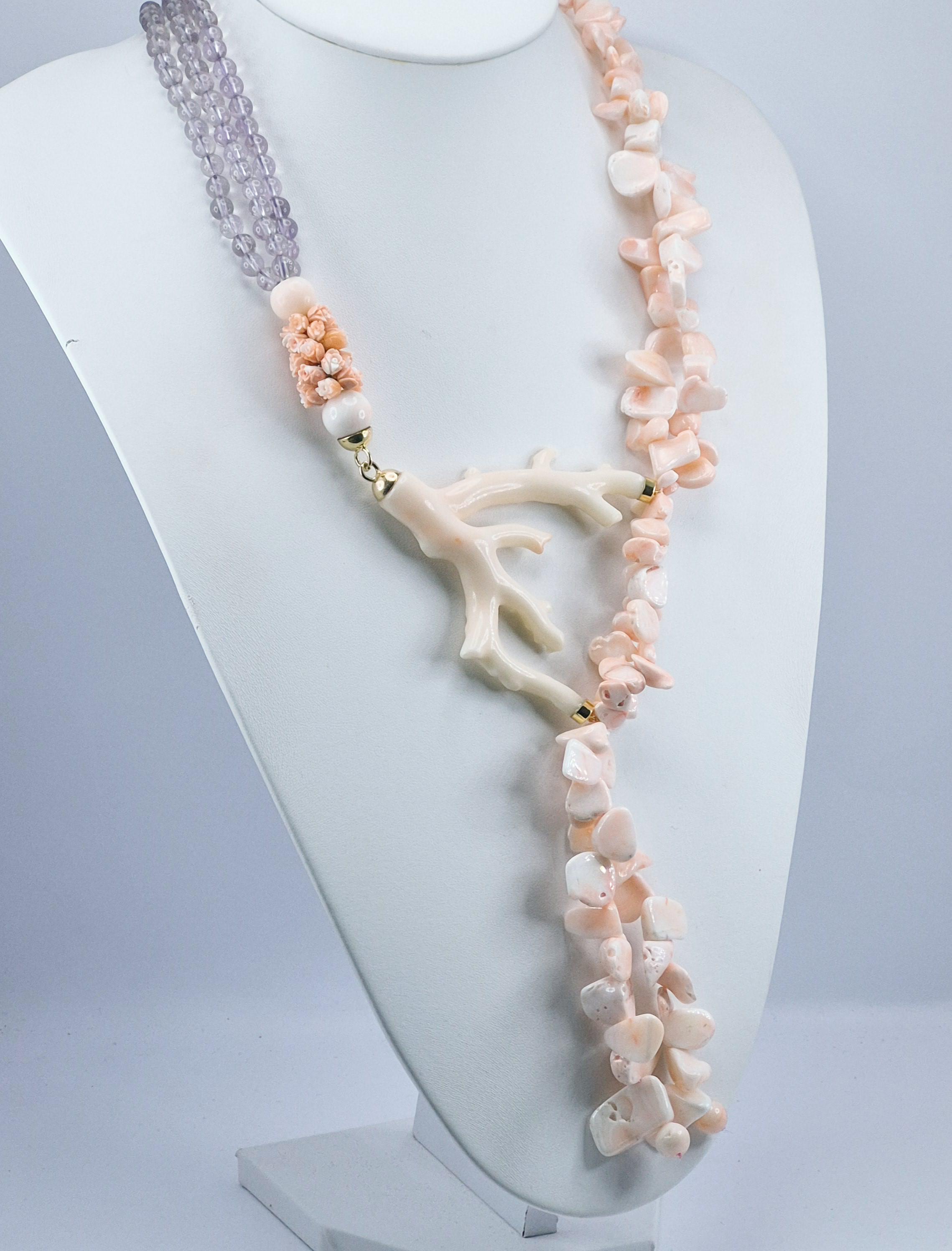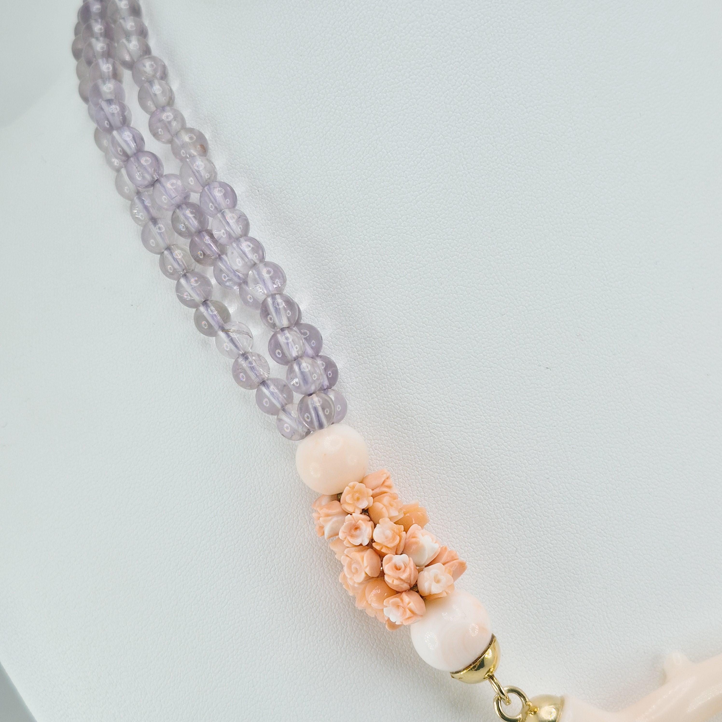 This creation, entirely made in Italy, in pink coral from Asian seas and amethyst, also from Asia, is enchanting.