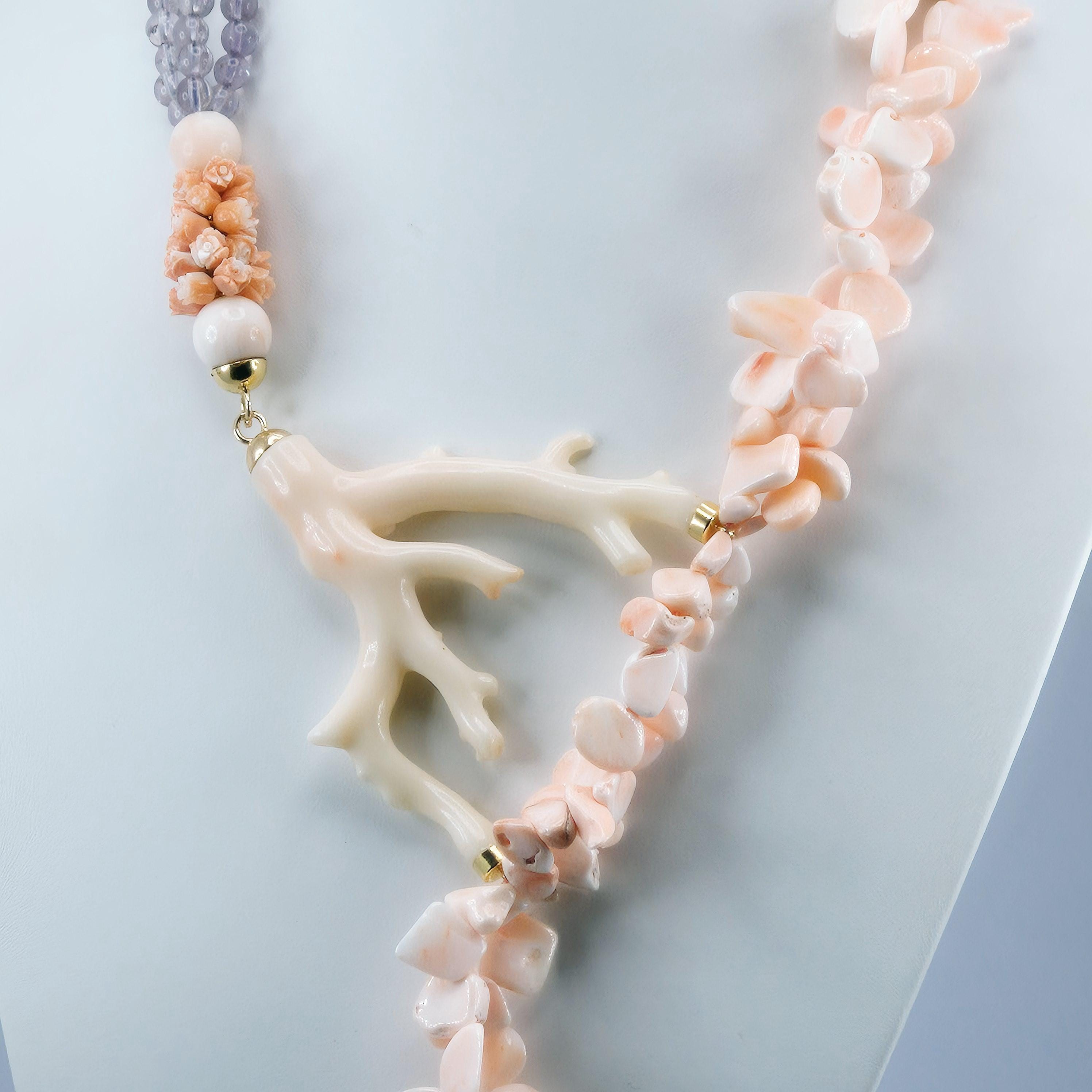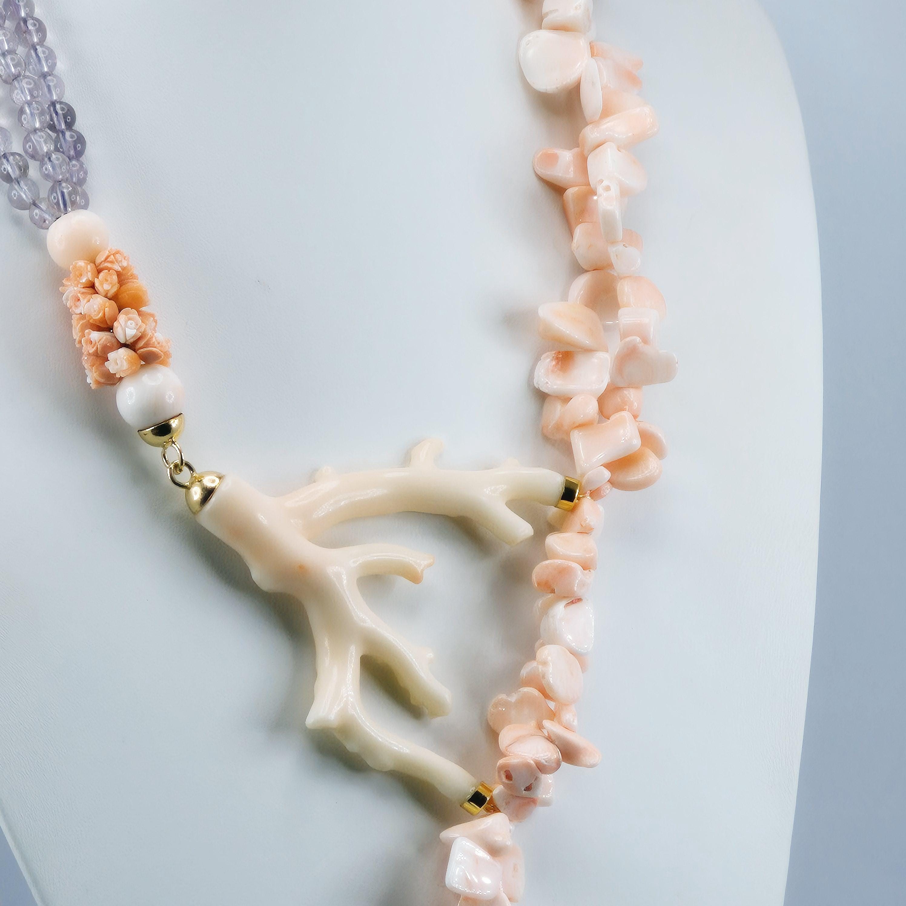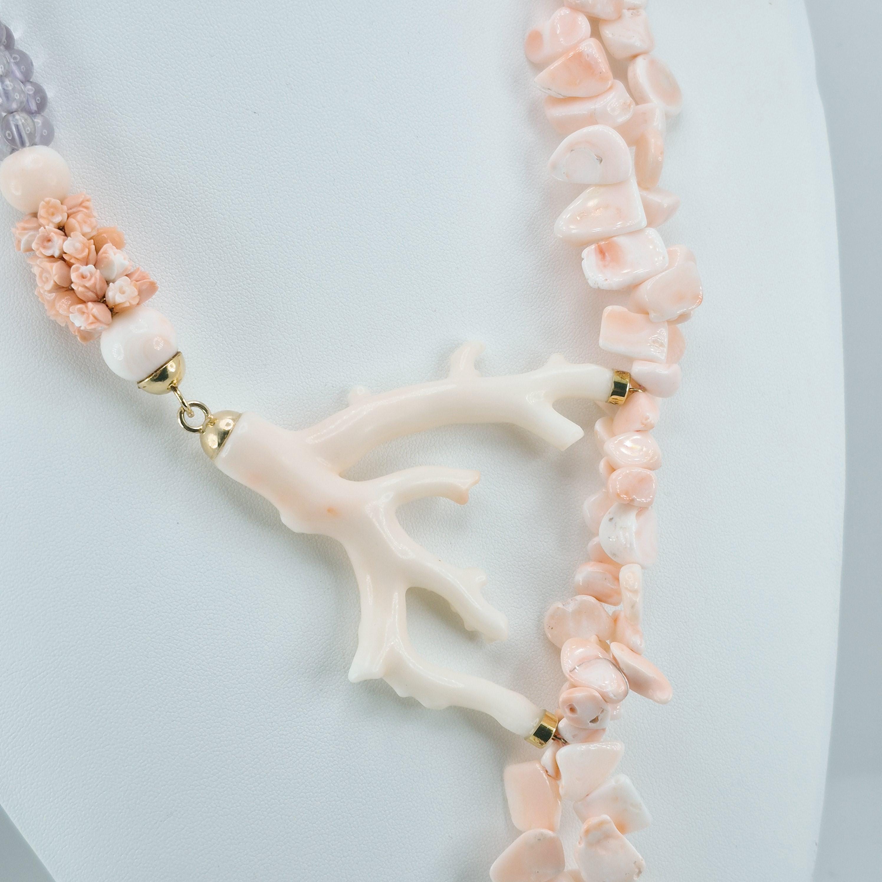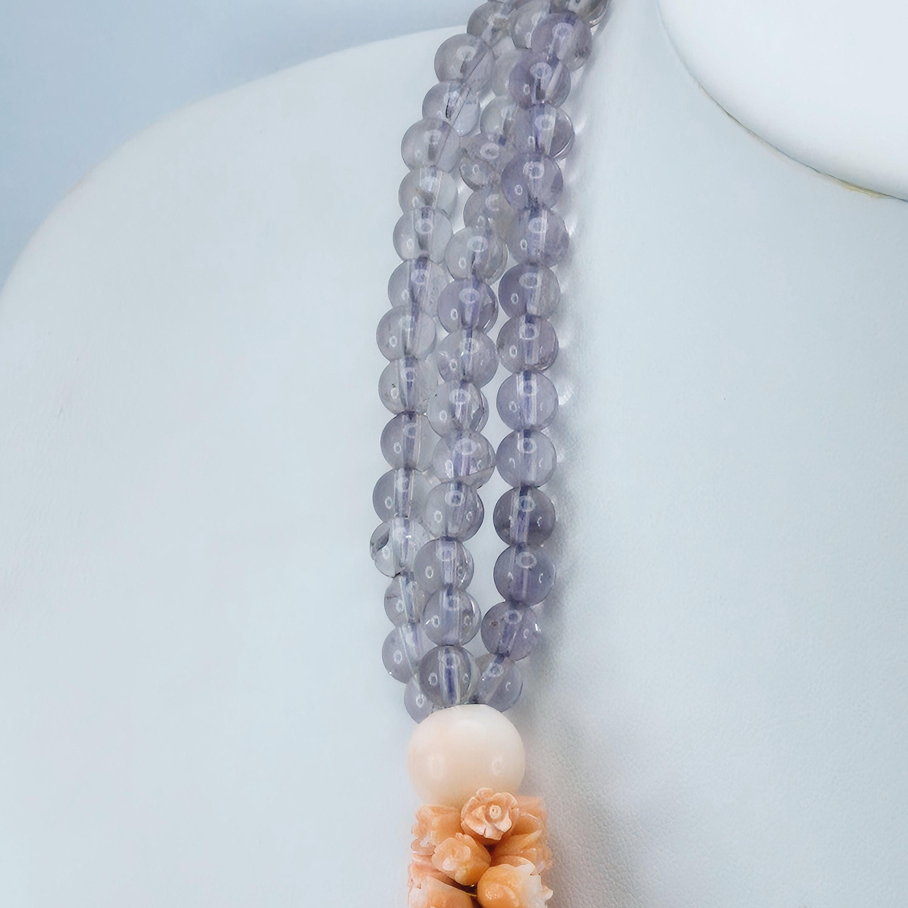 This creation, entirely made in Italy, in pink coral from Asian seas and amethyst, also from Asia, is enchanting.