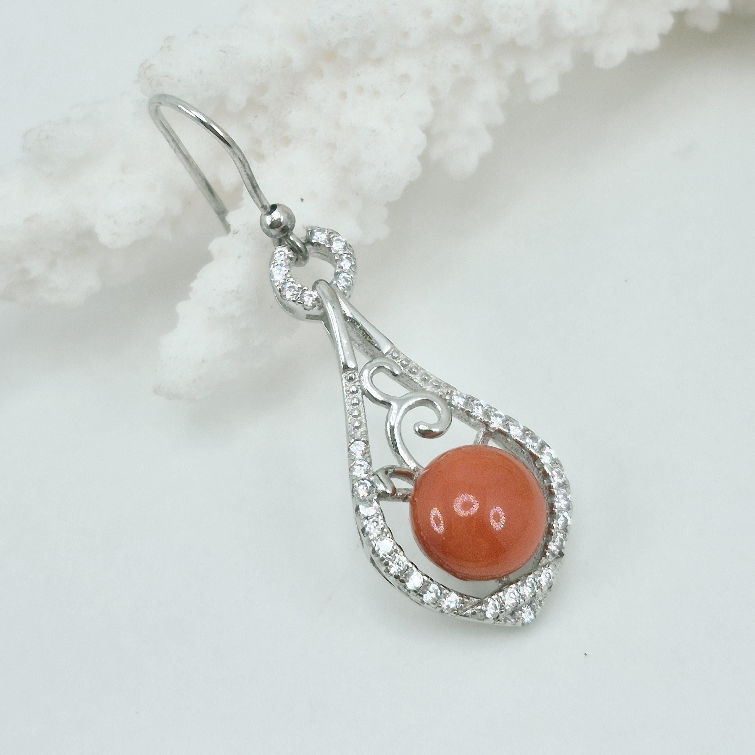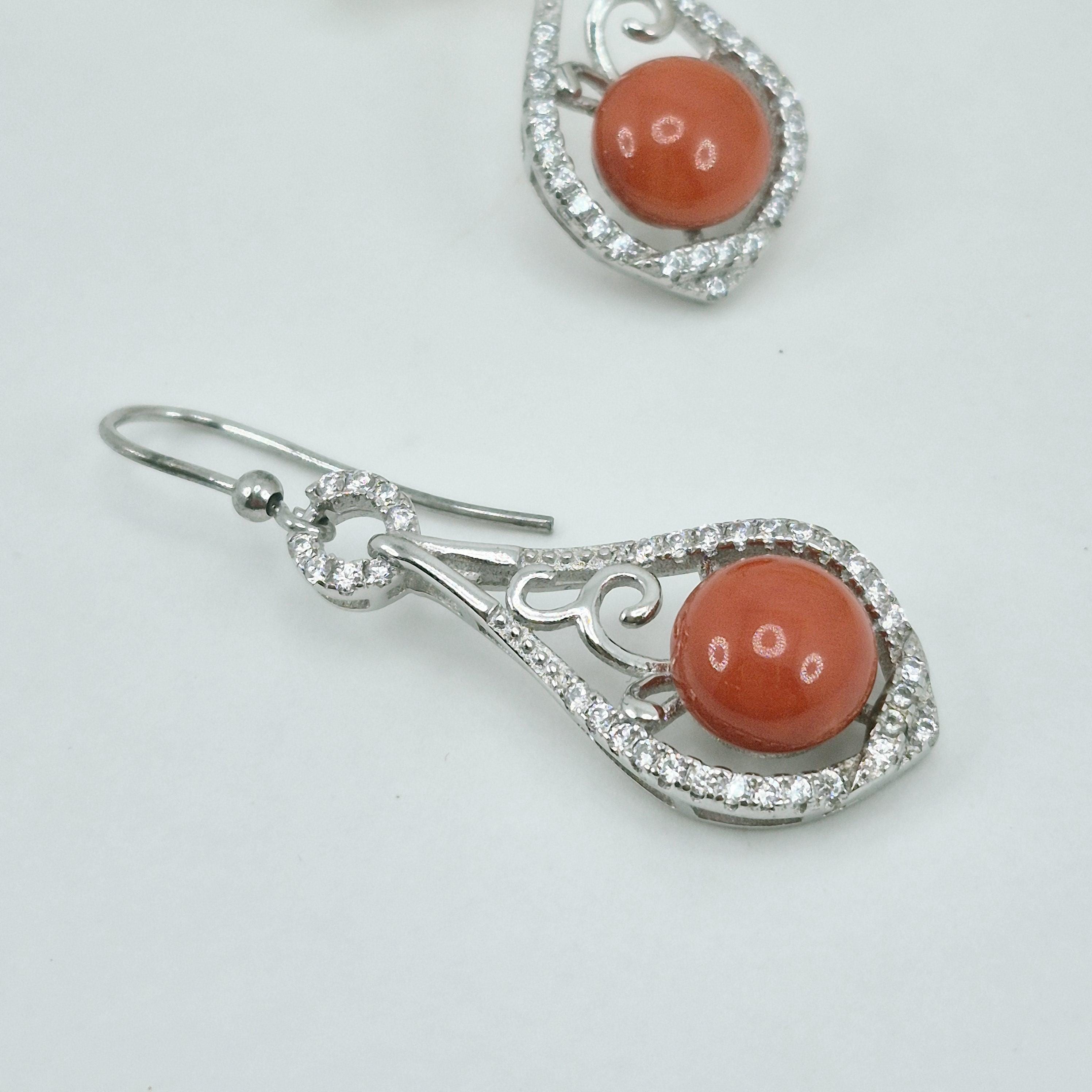 Enchanting and luminous Mediterranean coral earrings, 8.75 mm coral buttons, zirconia.