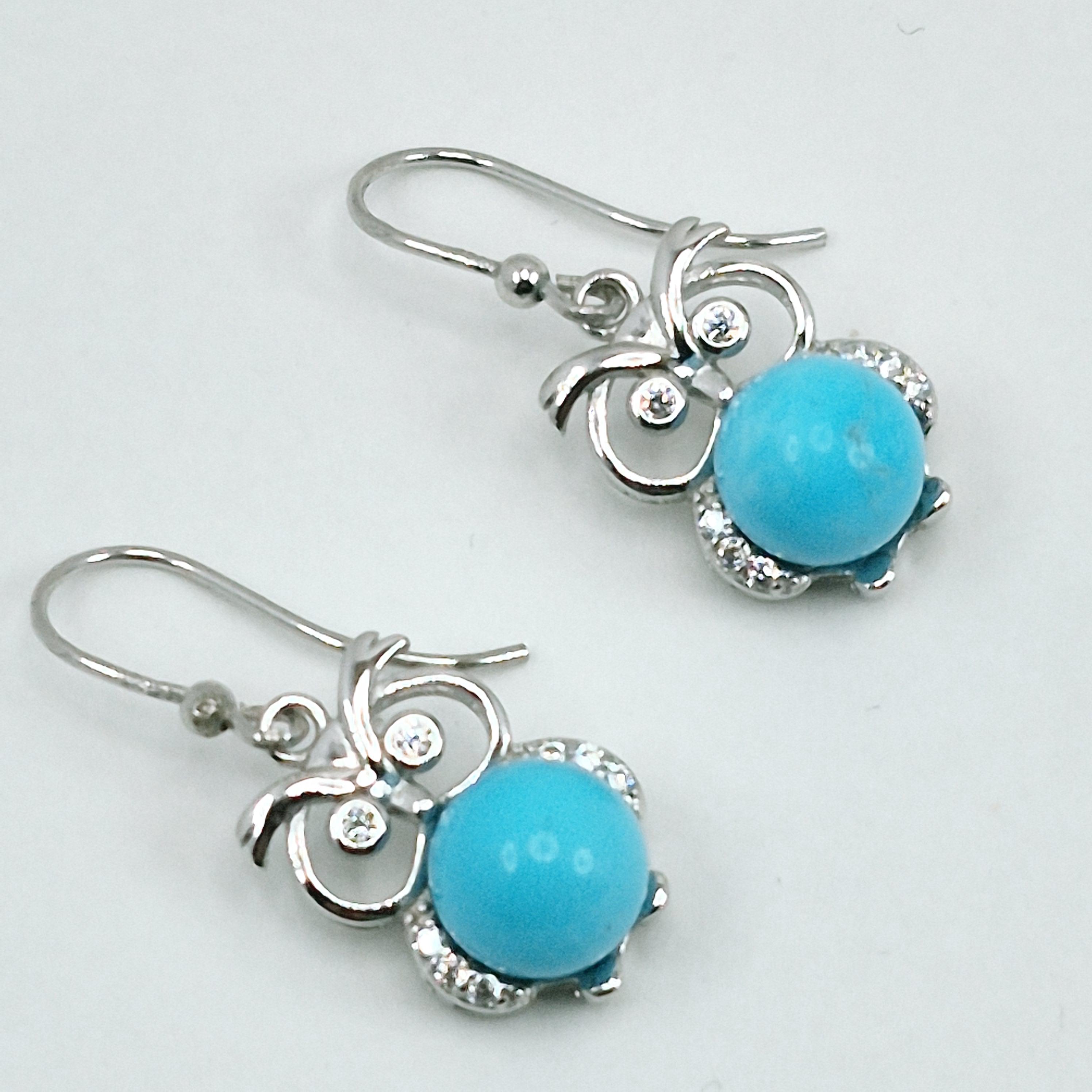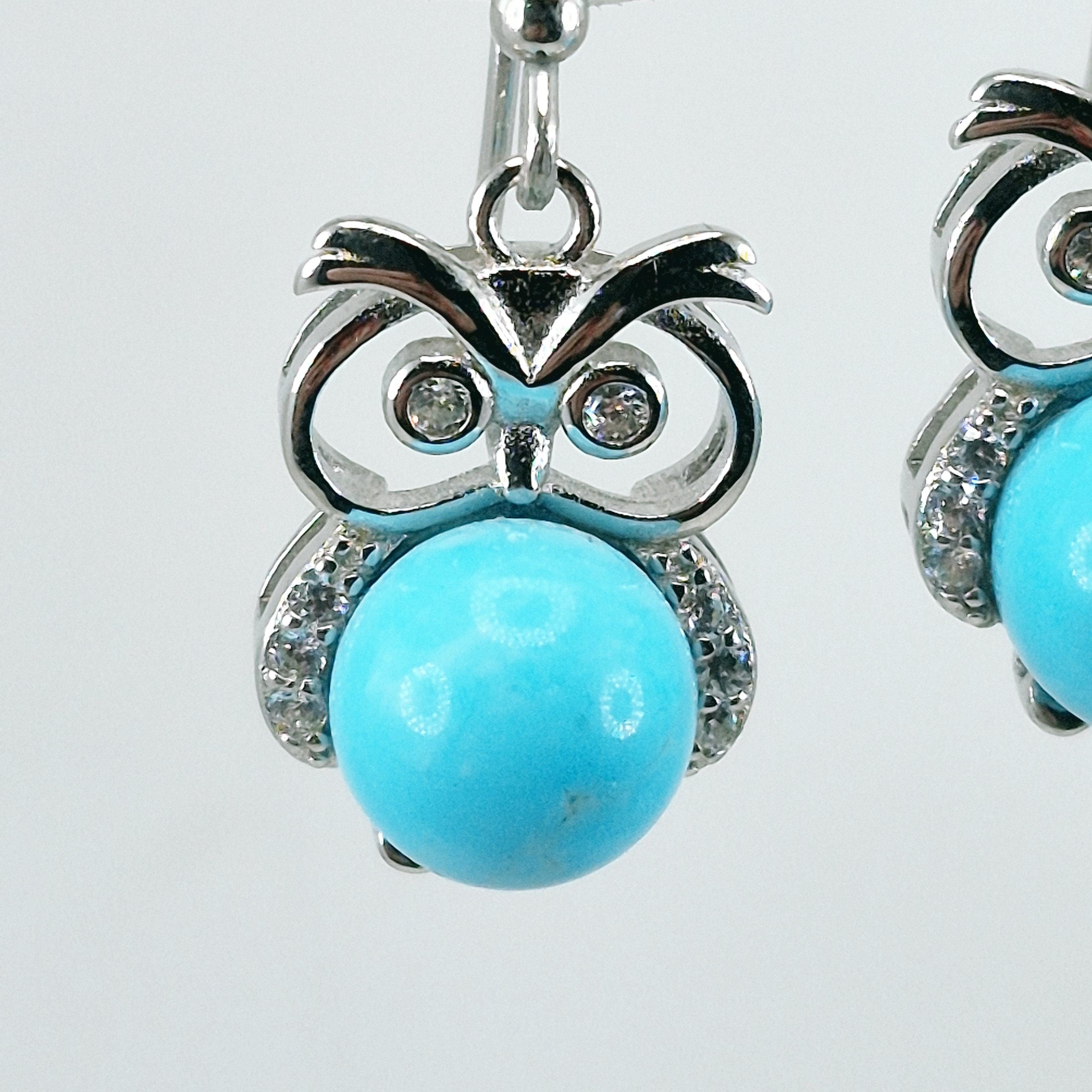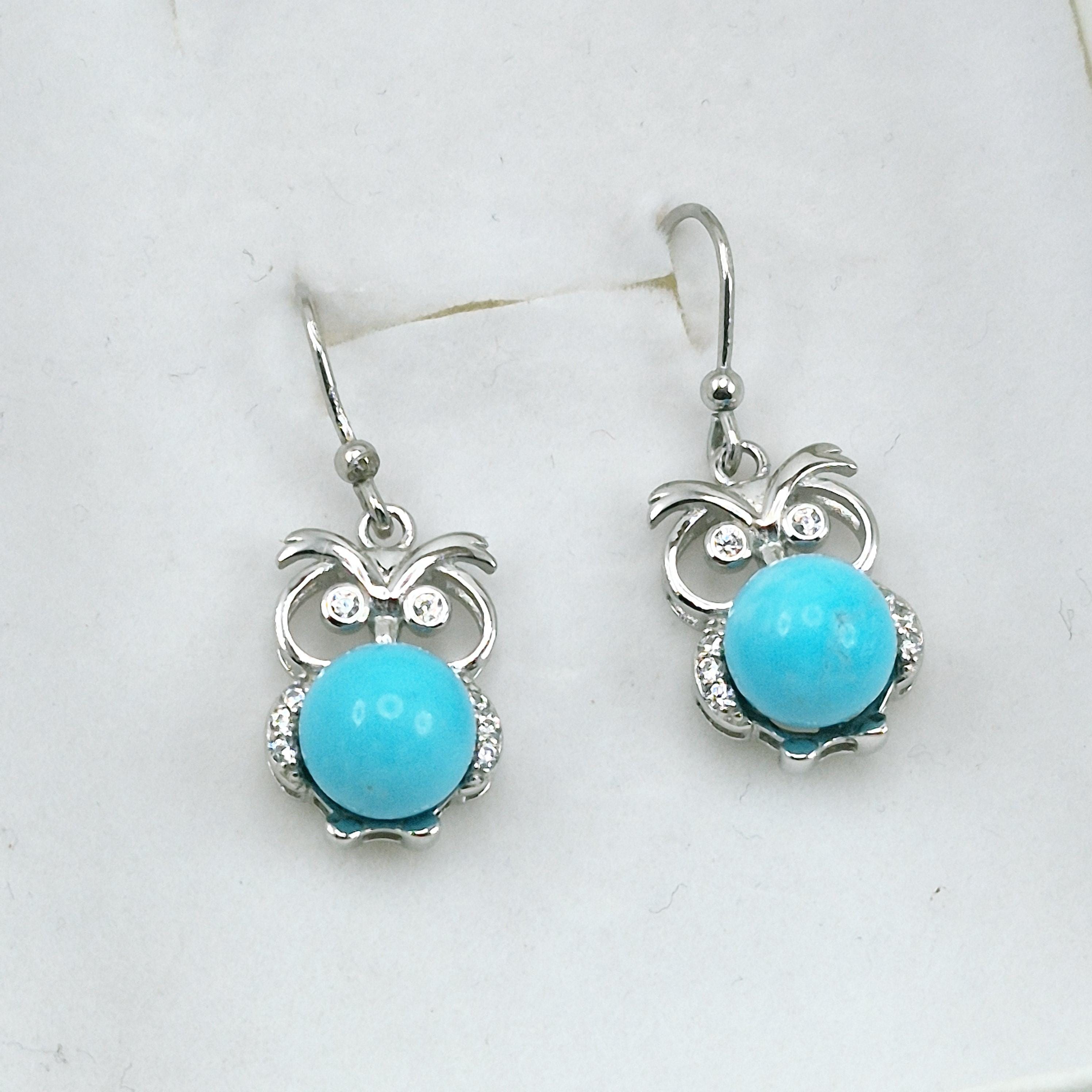 Owl-style earrings with turquoise spheres.