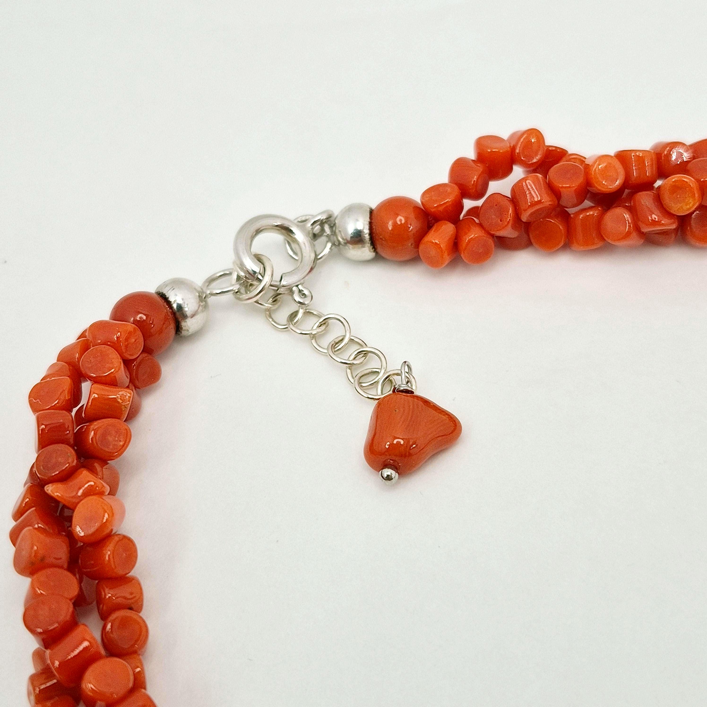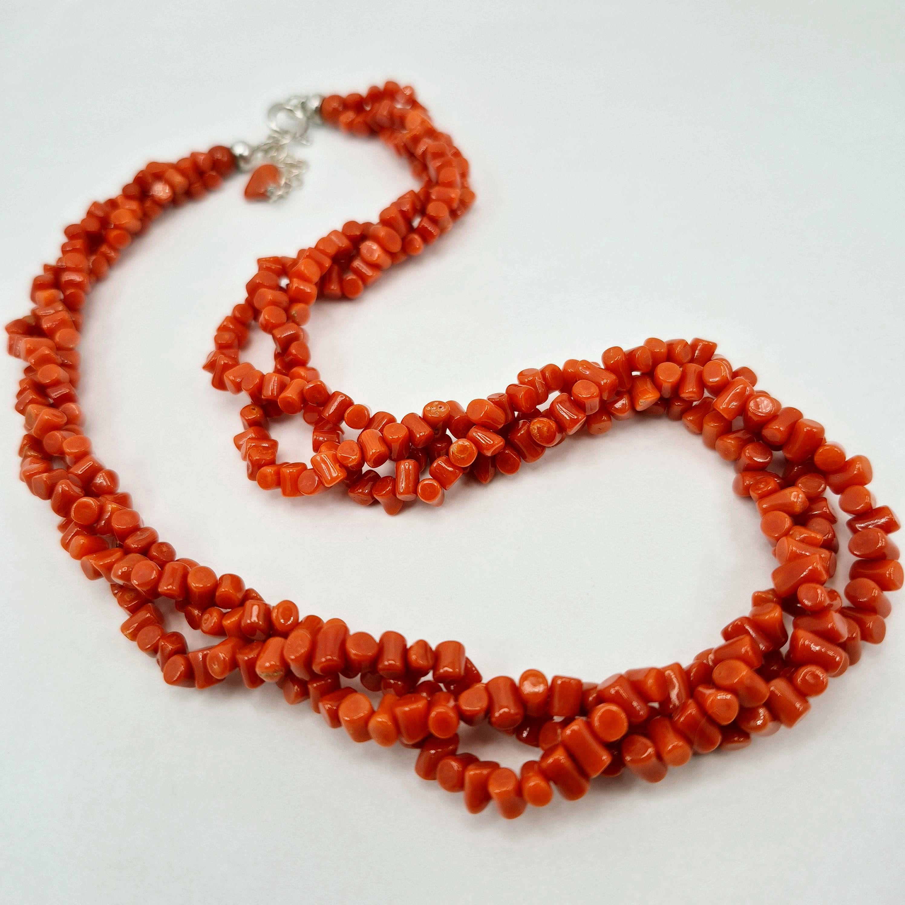 3 strands of authentic Mediterranean red coral.