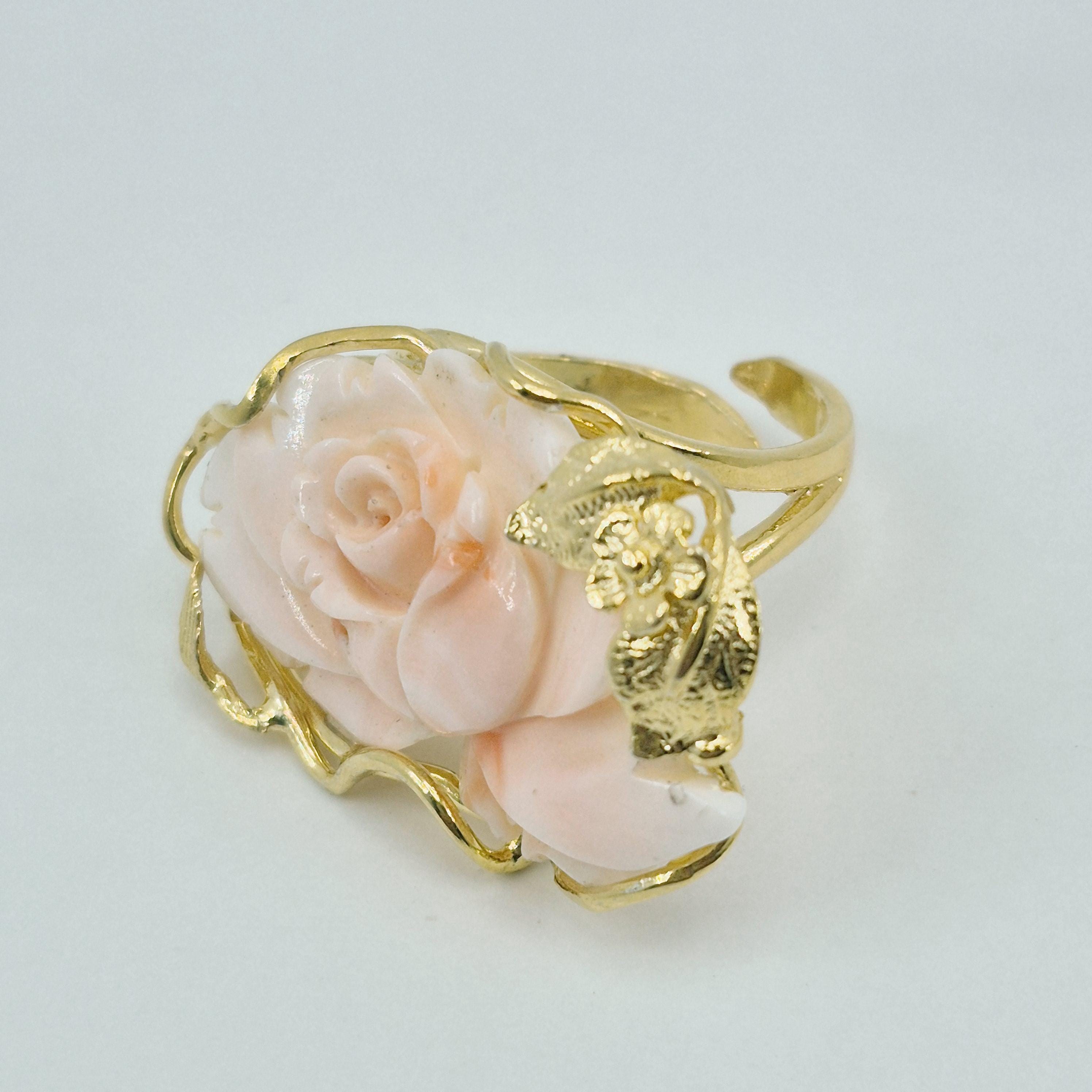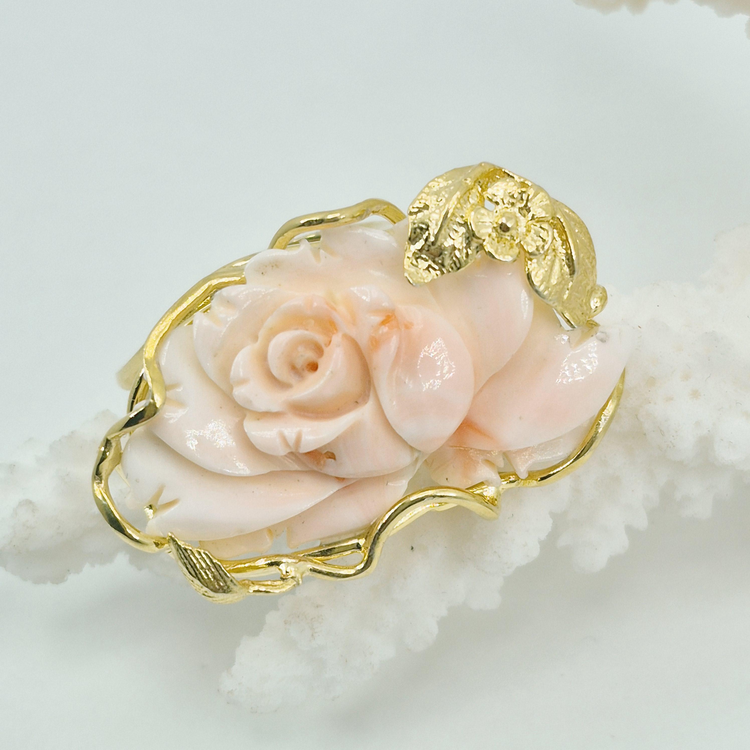 Enchanting and imposing with so much elegance handcrafted ring engraved on pink coral in a superb shade