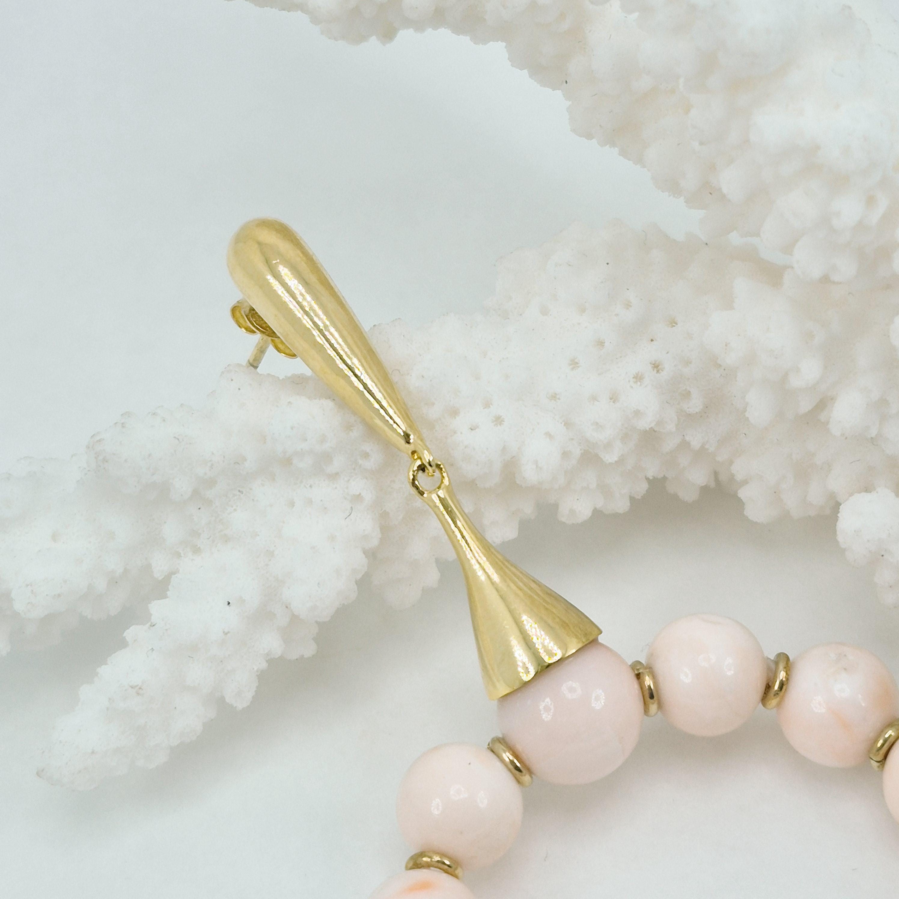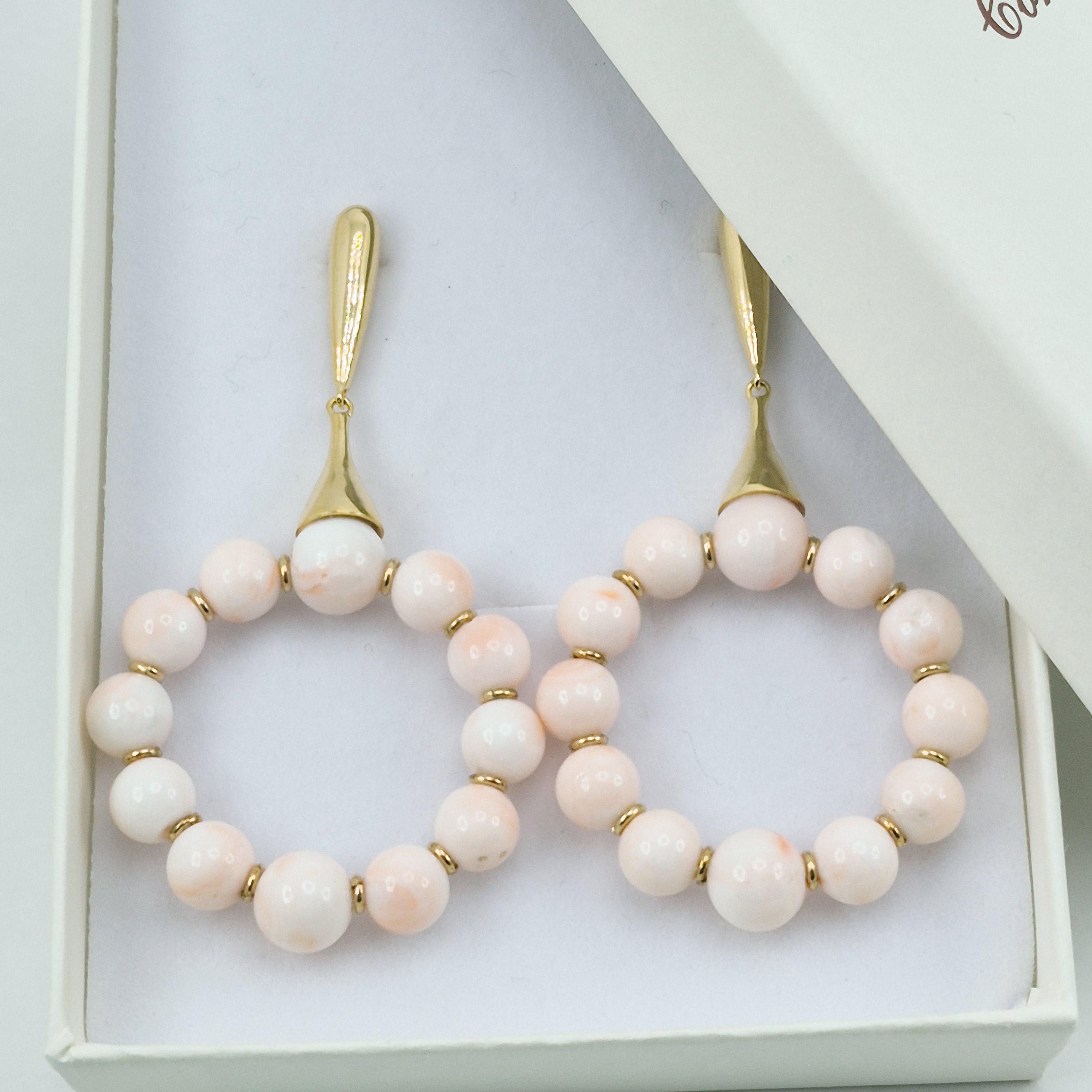 Whimsical and elegant handcrafted earrings with pink coral spheres in an enchanting shade from the Asian seas and handcrafted according to the coral processing phases that we have been handing down for generations in Torre del Greco