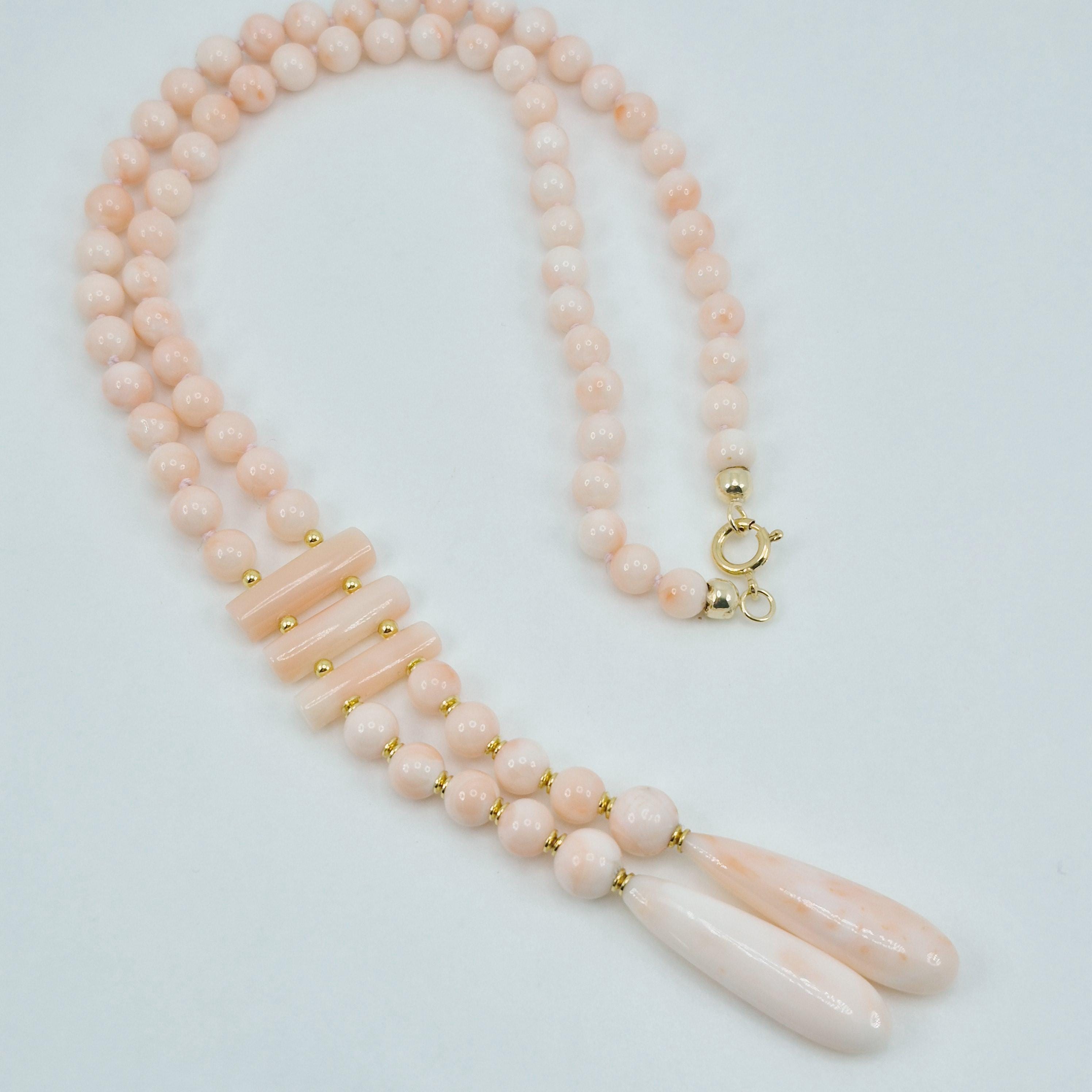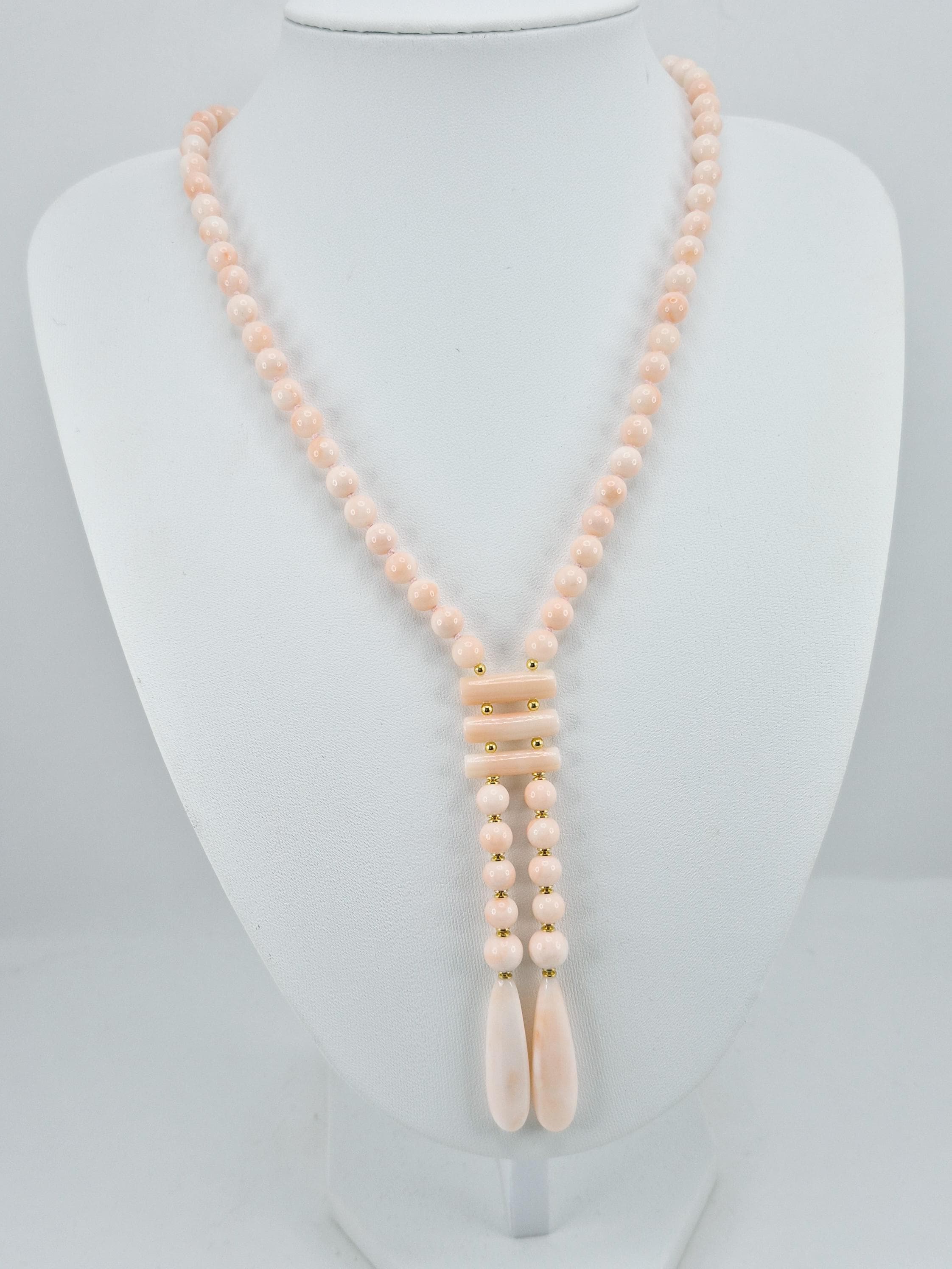 Beautiful and elegant pink coral necklace in angel skin tones from the Asian seas.