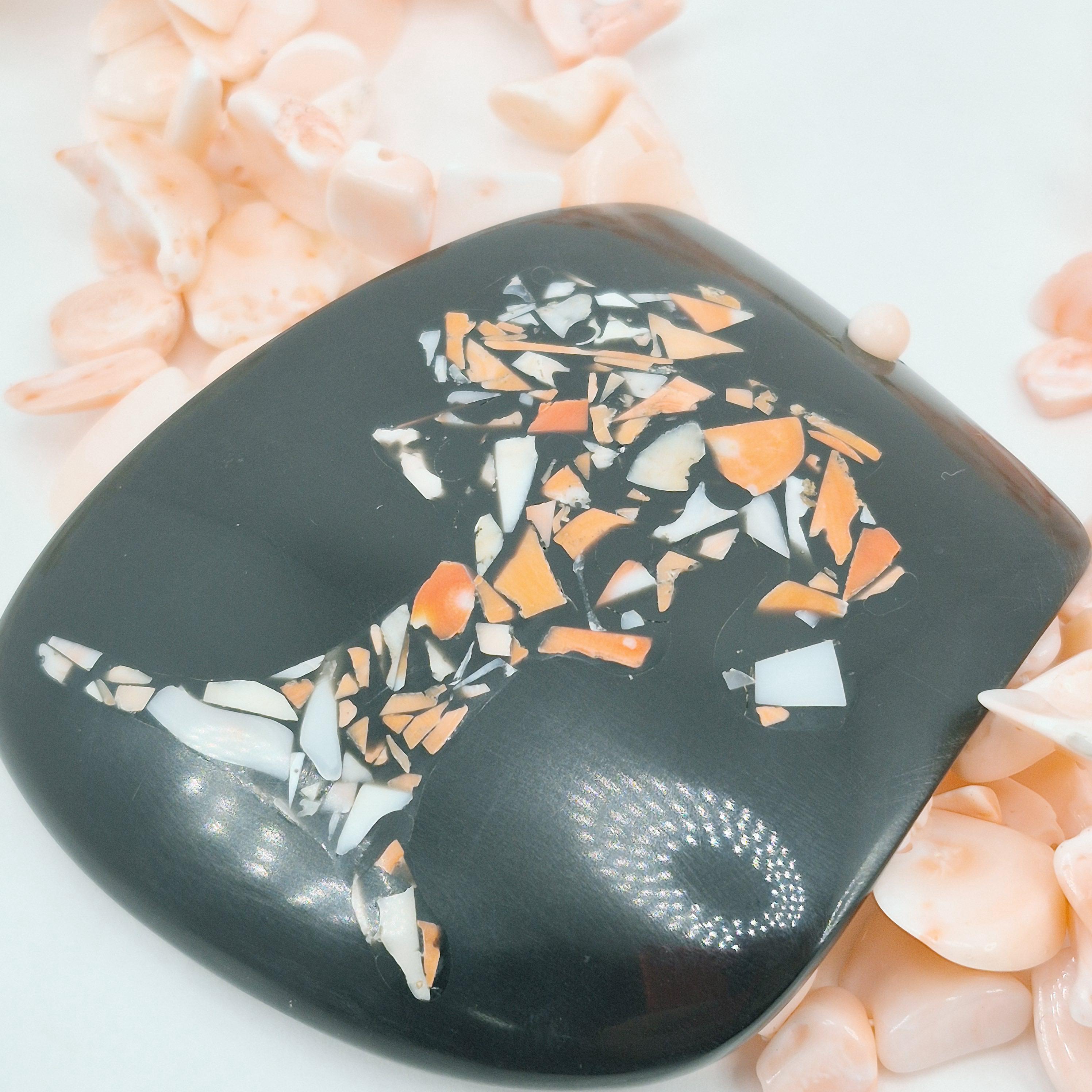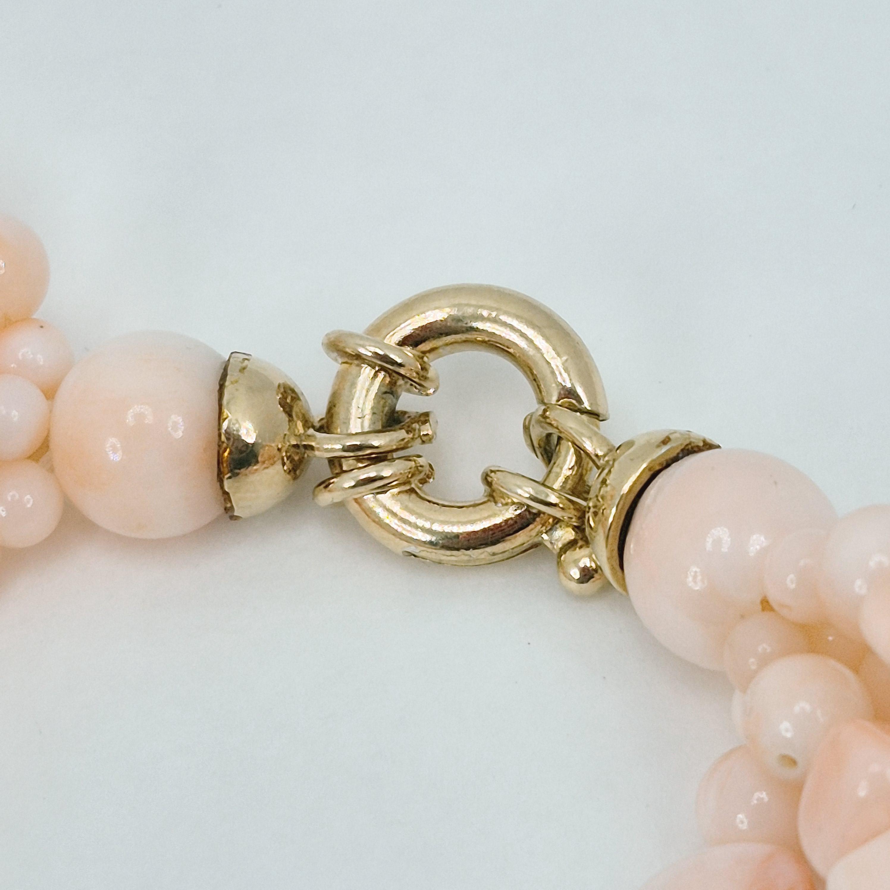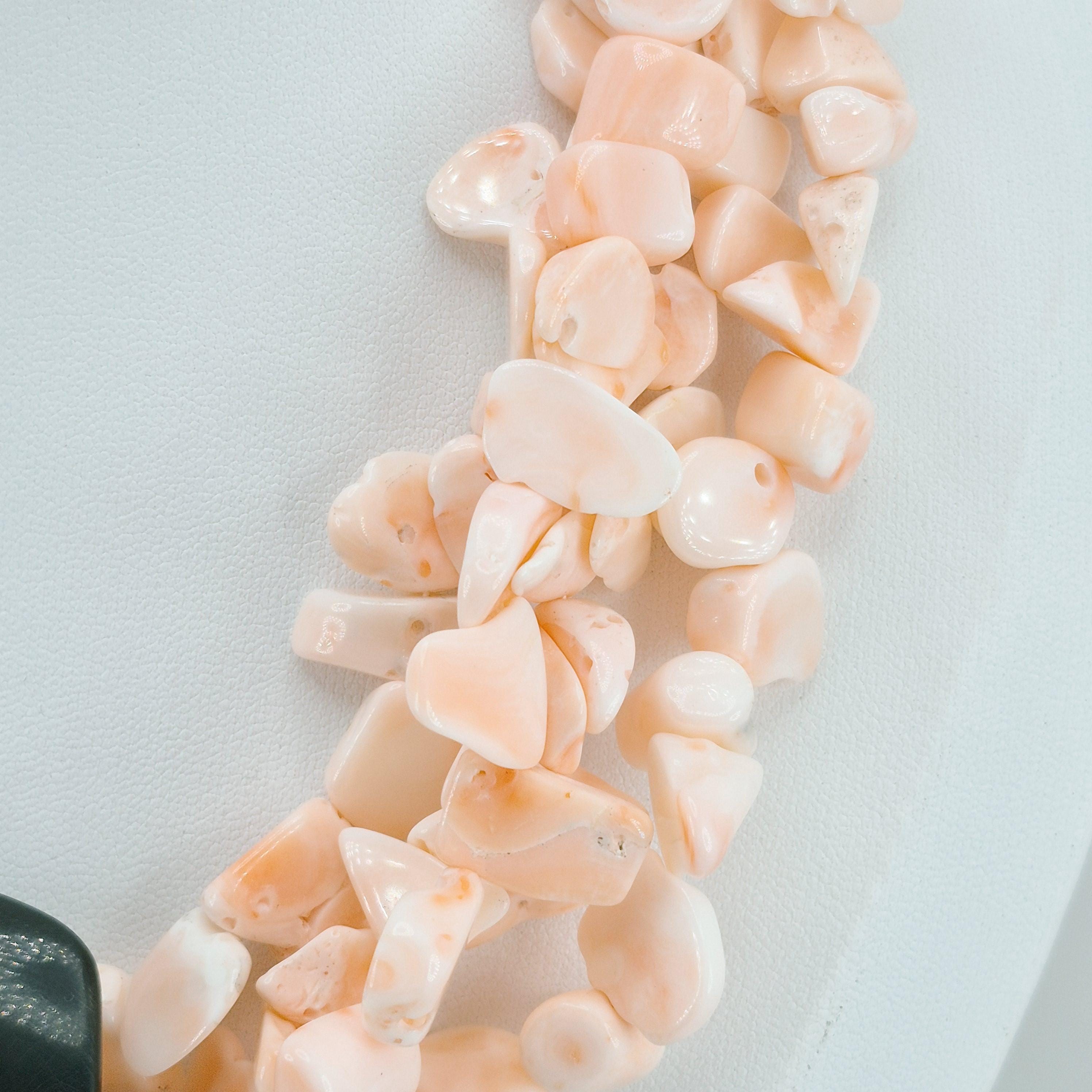Elegant and unique necklace made of pink coral from Asian seas and a bull's horn inlaid with coral.