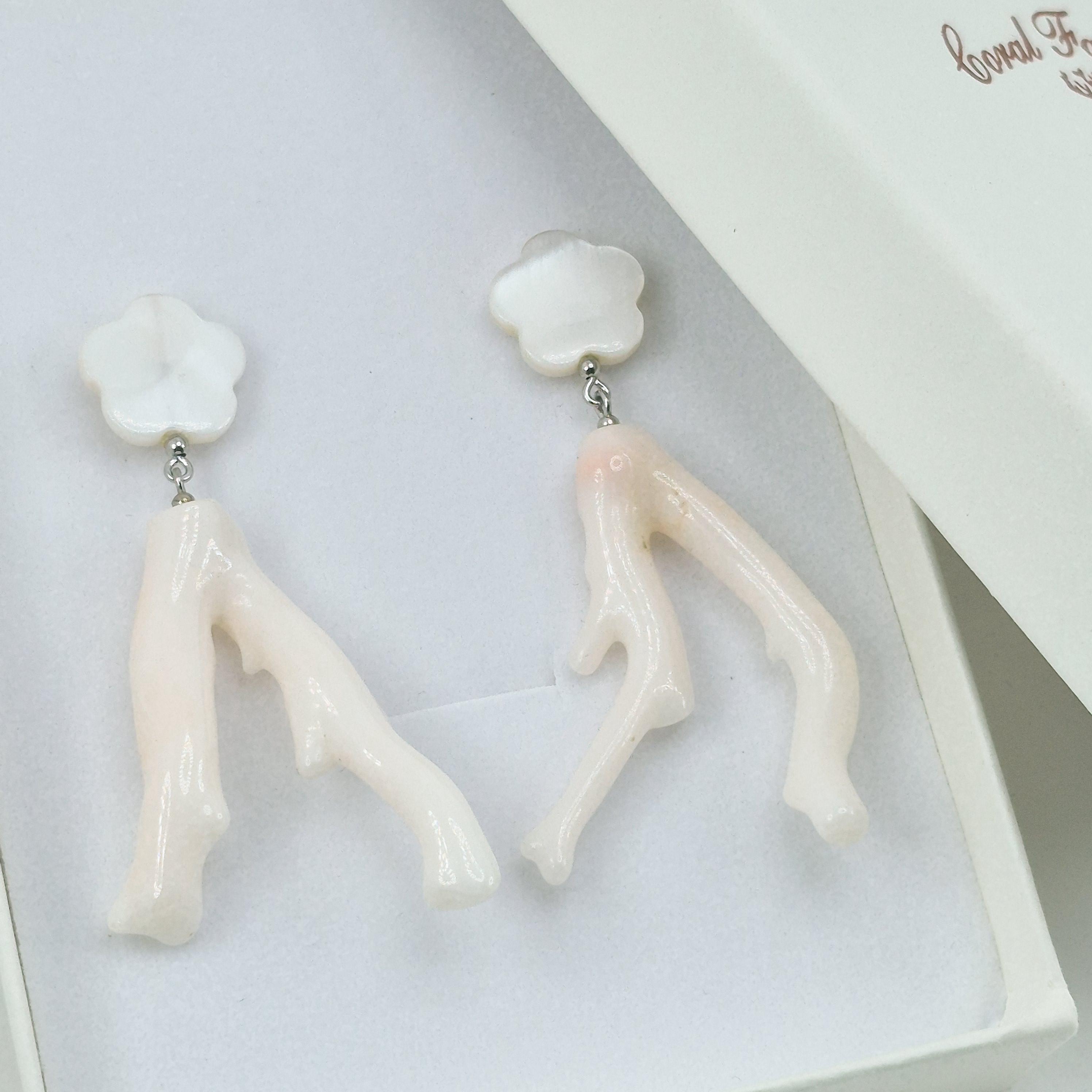Beautiful and luminous pink/white coral earrings in a very delicate shade sourced from the Asian seas and handcrafted in Torre del Greco.