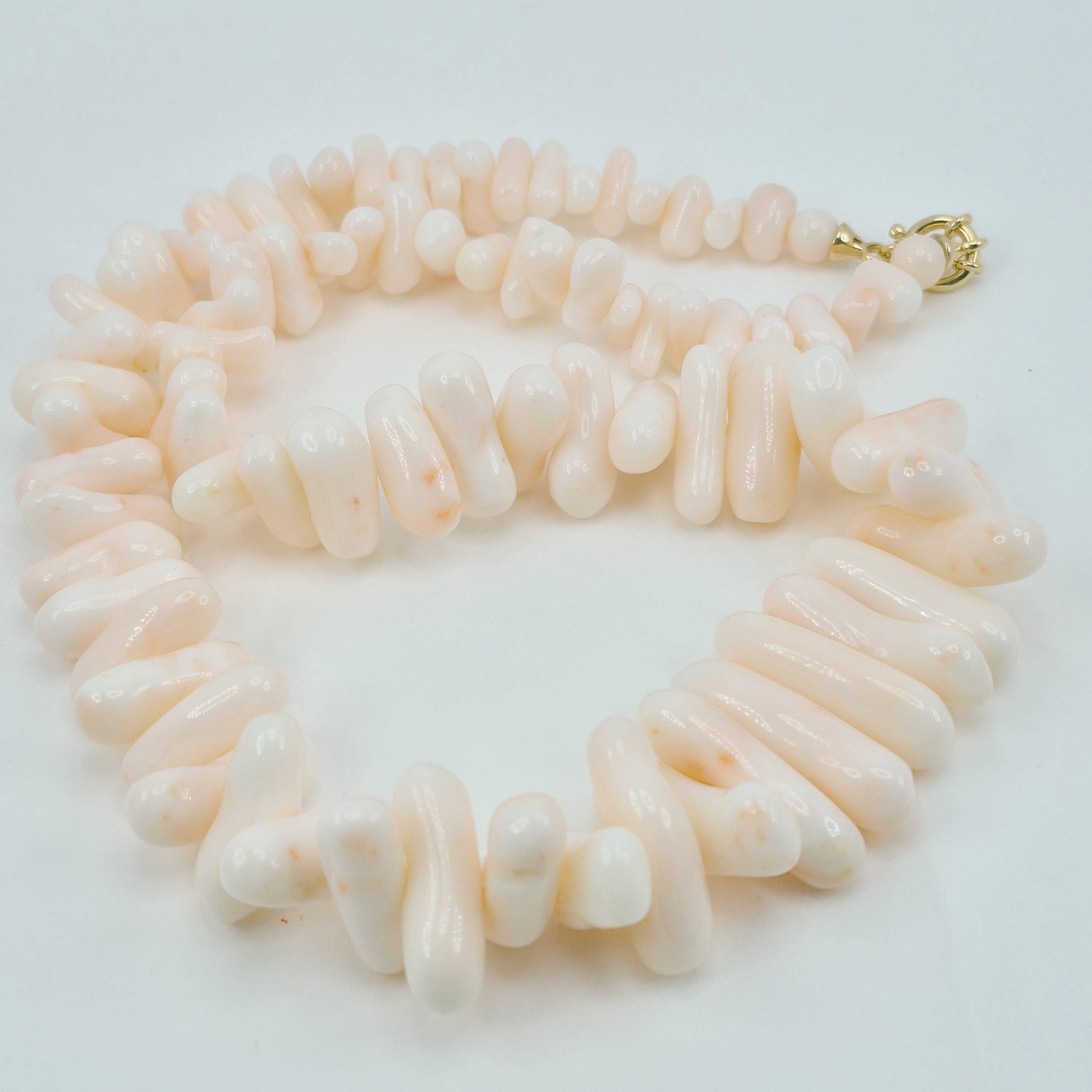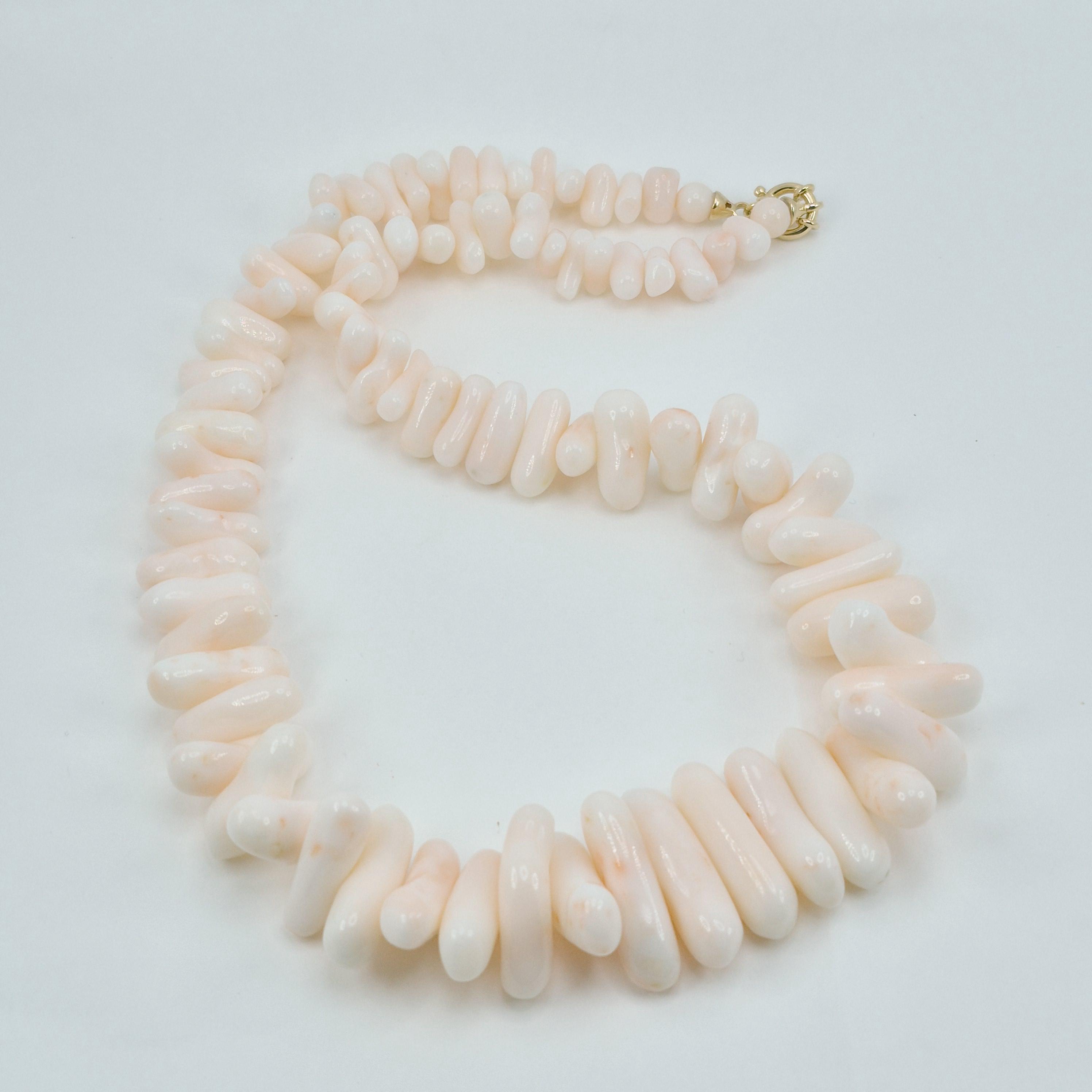 Enchanting and entirely handcrafted pink coral necklace in a delicate shade