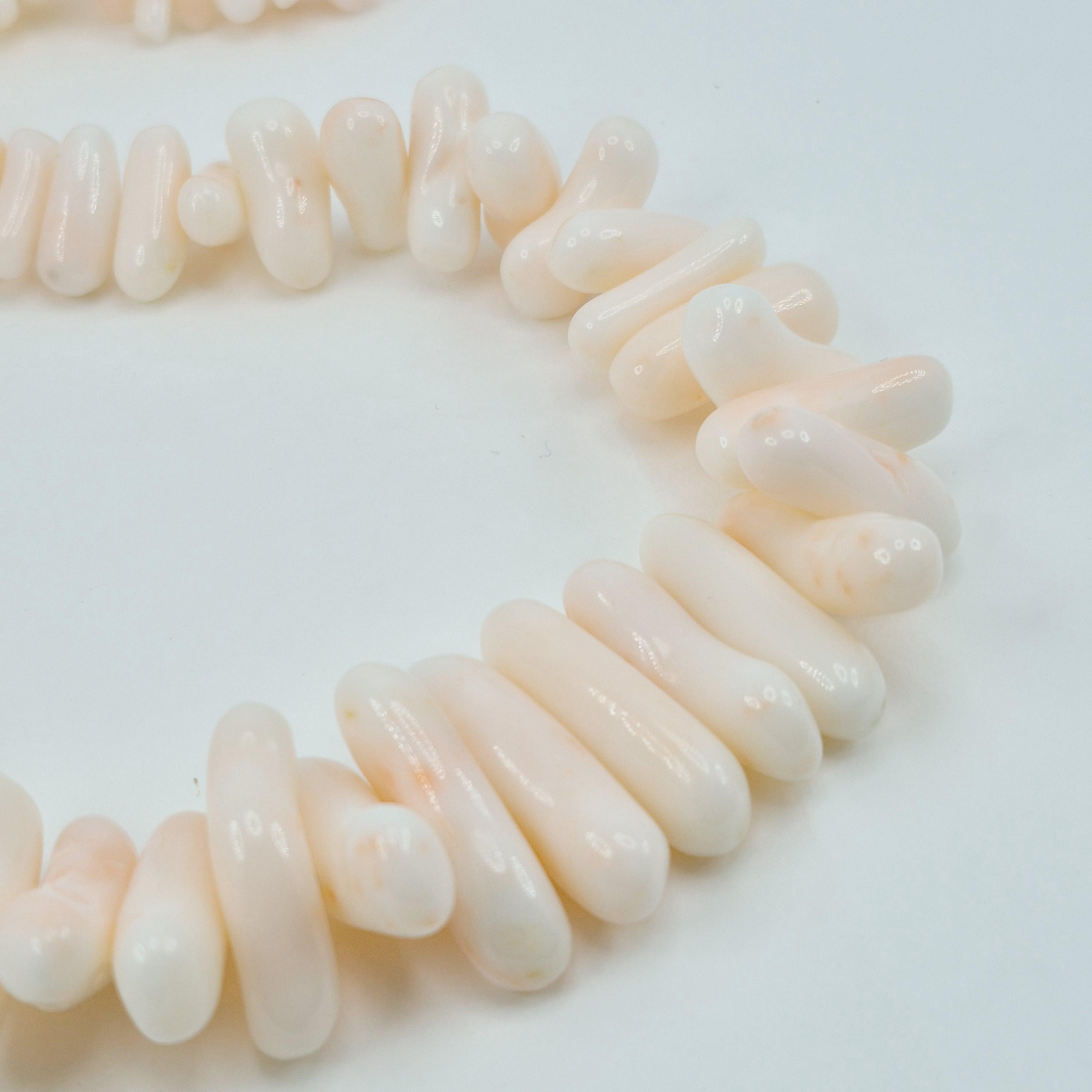 Handcrafted coral by coral, this cupulone shape is named after its rounded ends, giving harmony and elegance to the necklace.