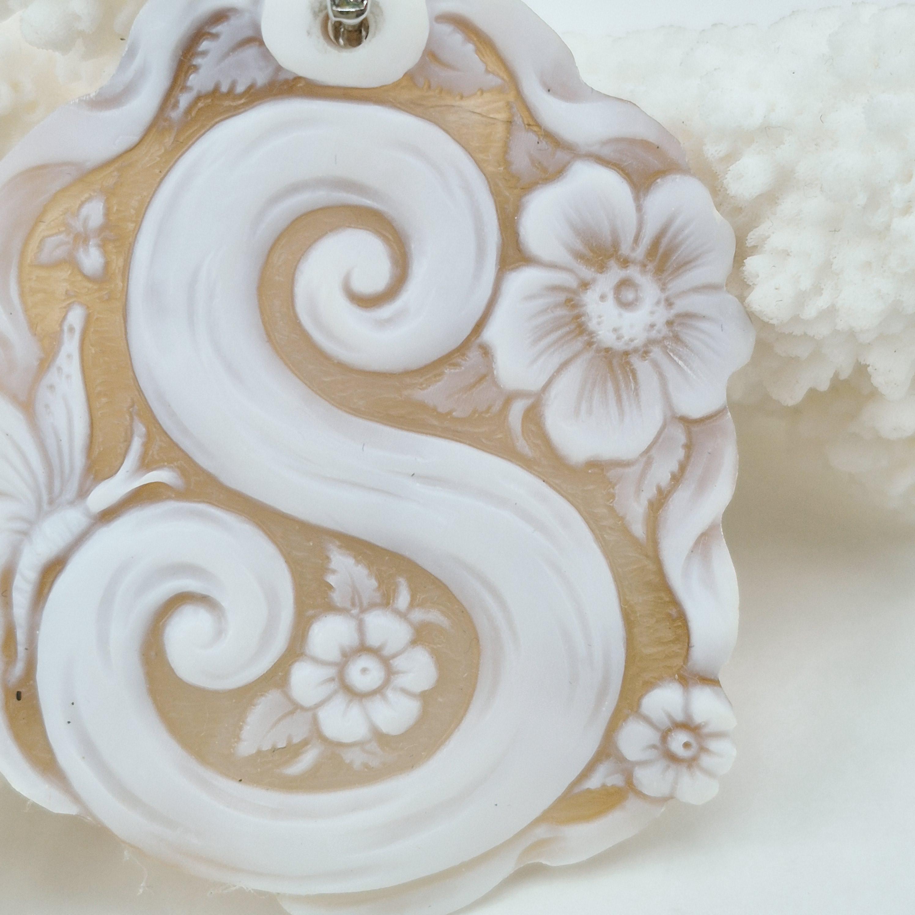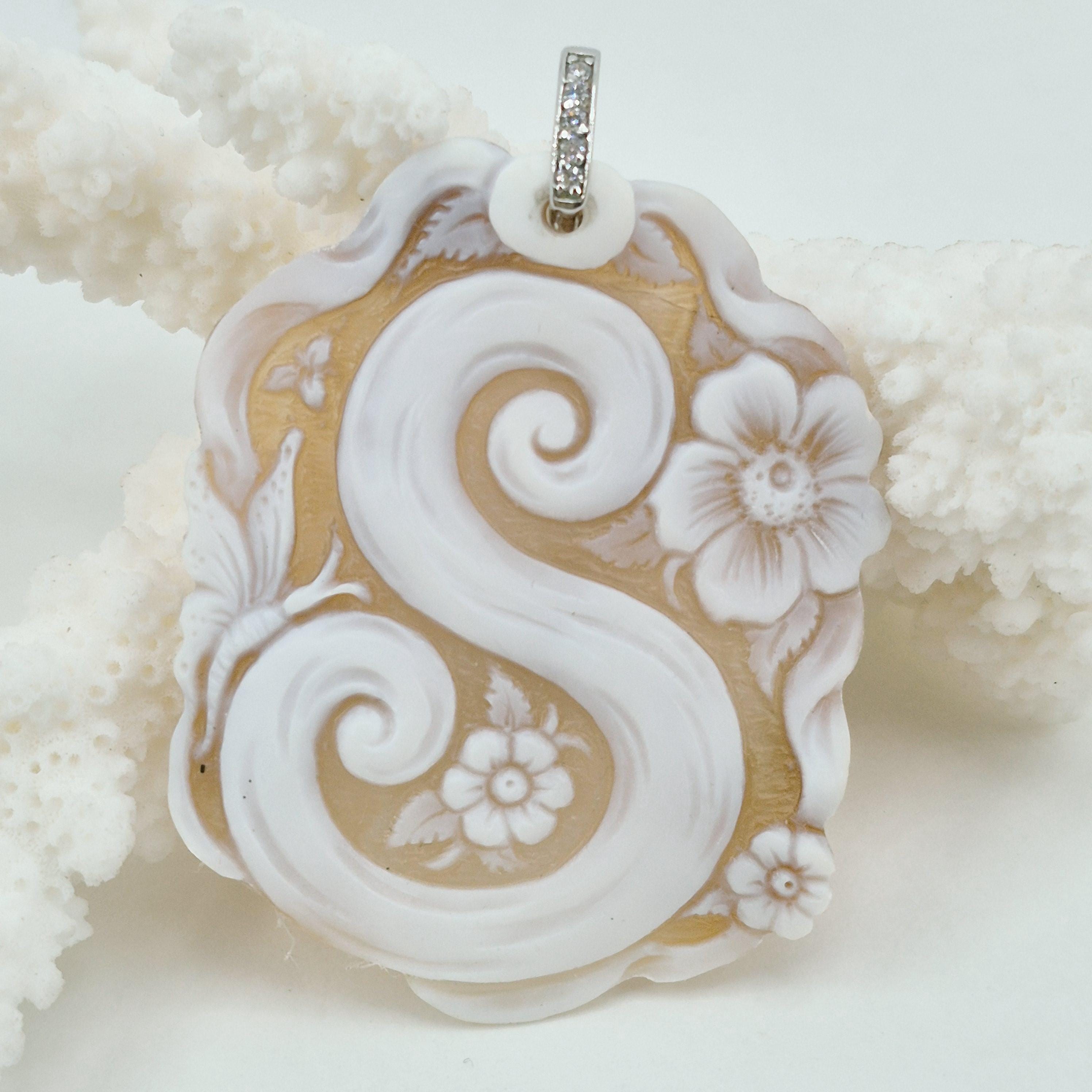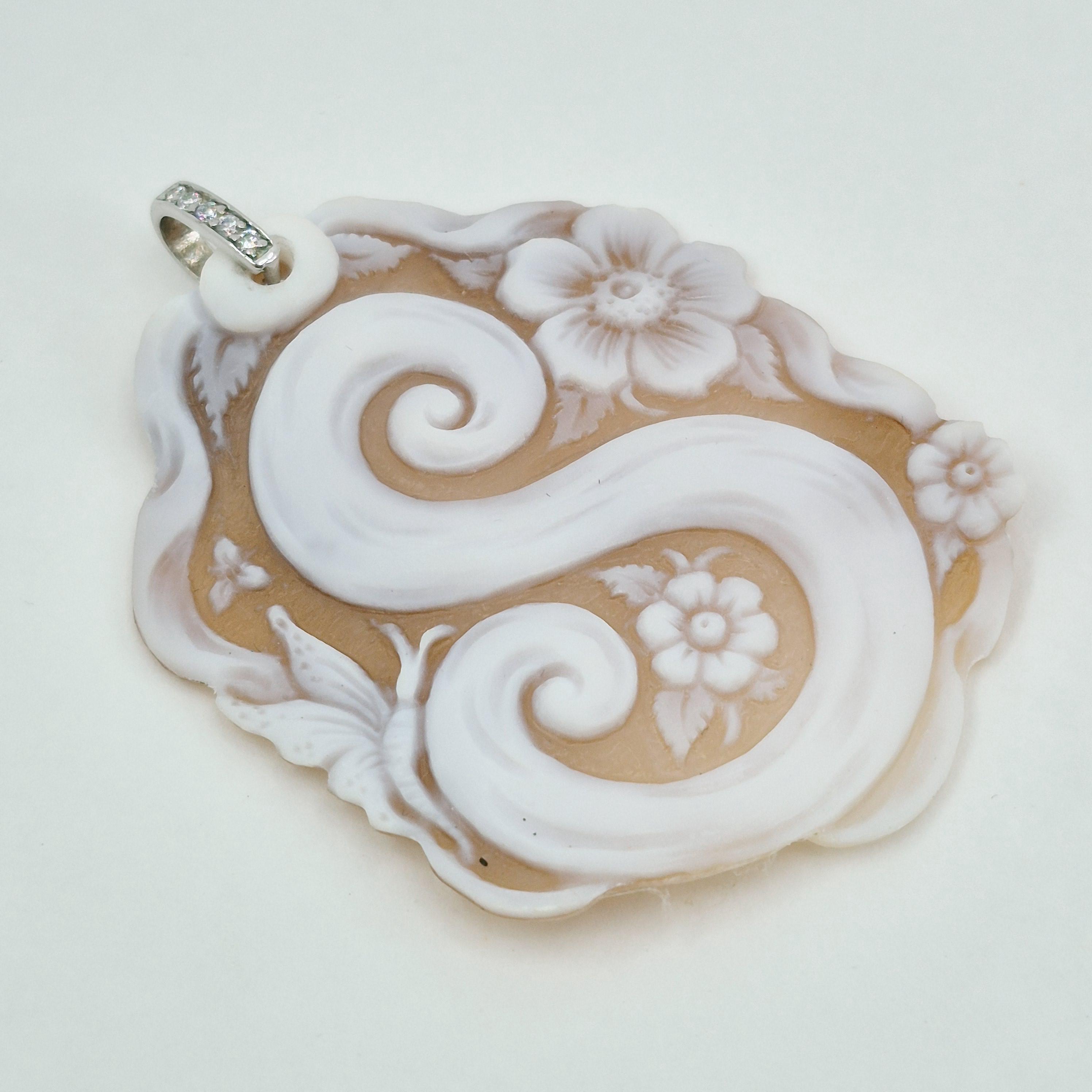 Enchanting personalized cameo engraved on Cassis Madagascariensis shell in a more contemporary style.