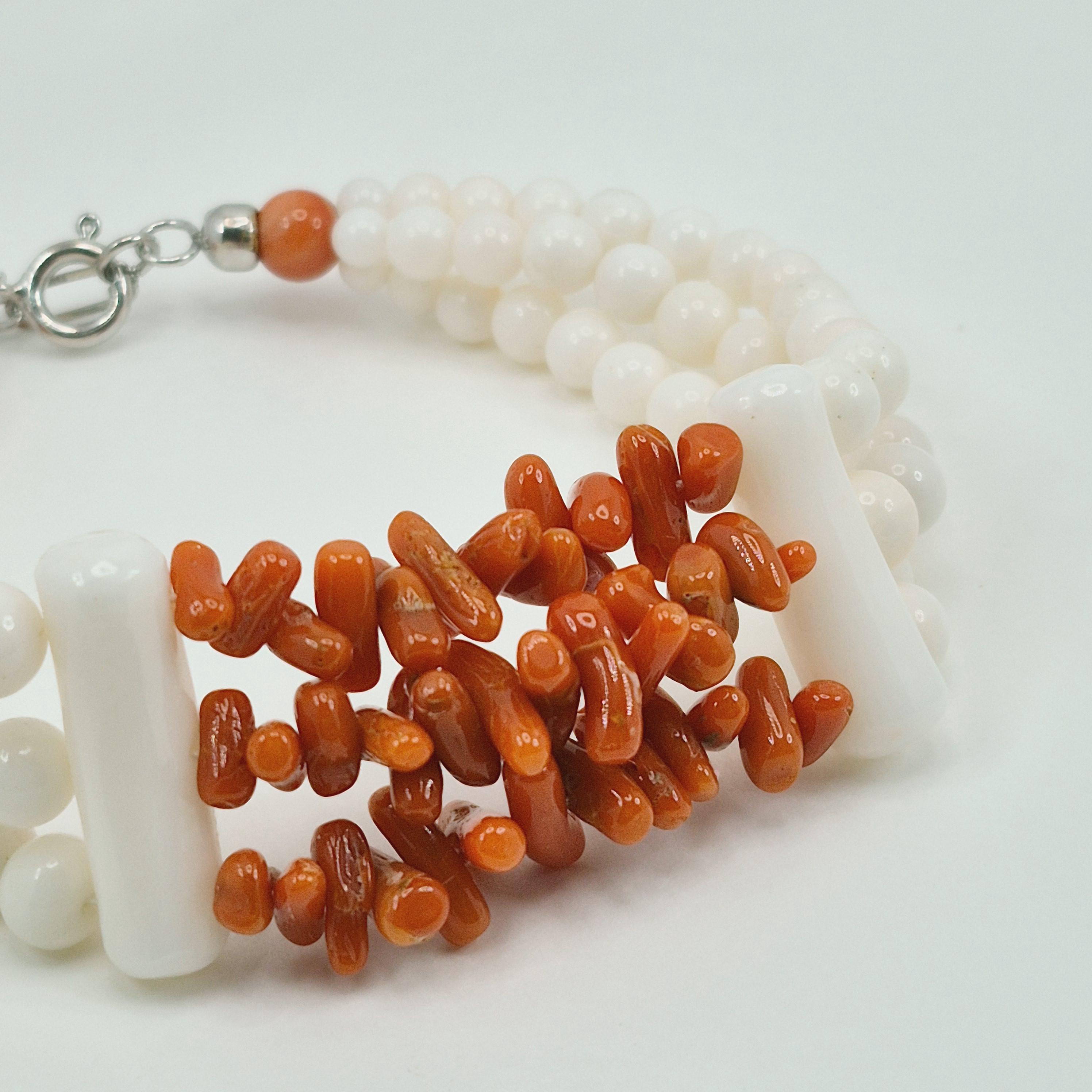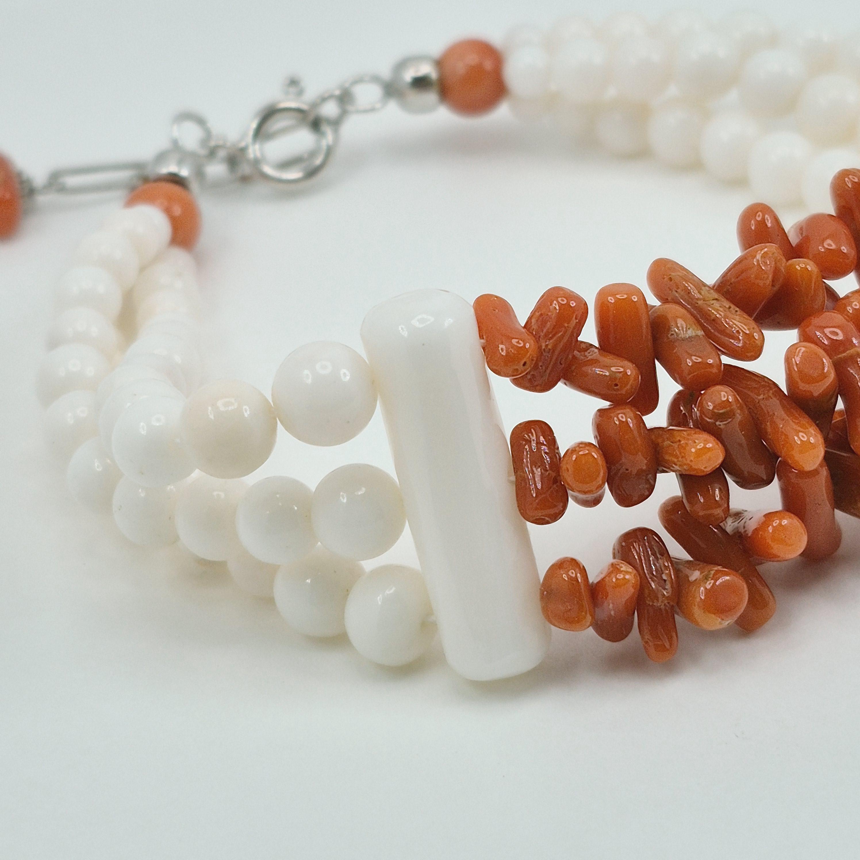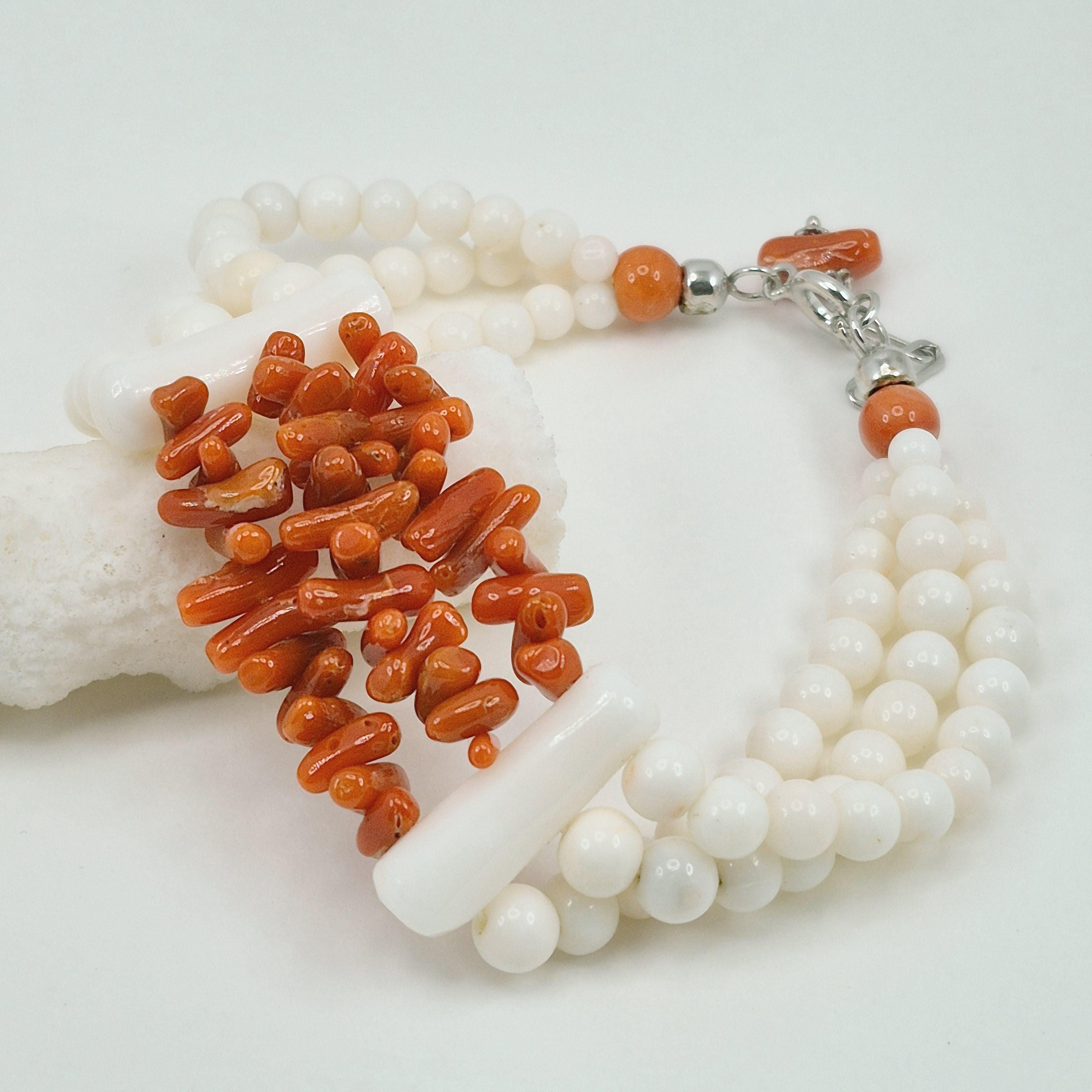 Special and entirely handcrafted bracelet in white coral from the seas of Asia and Mediterranean coral called Sciacca from the seas of Sicily where the coral has a more orange hue due to the Volcano.