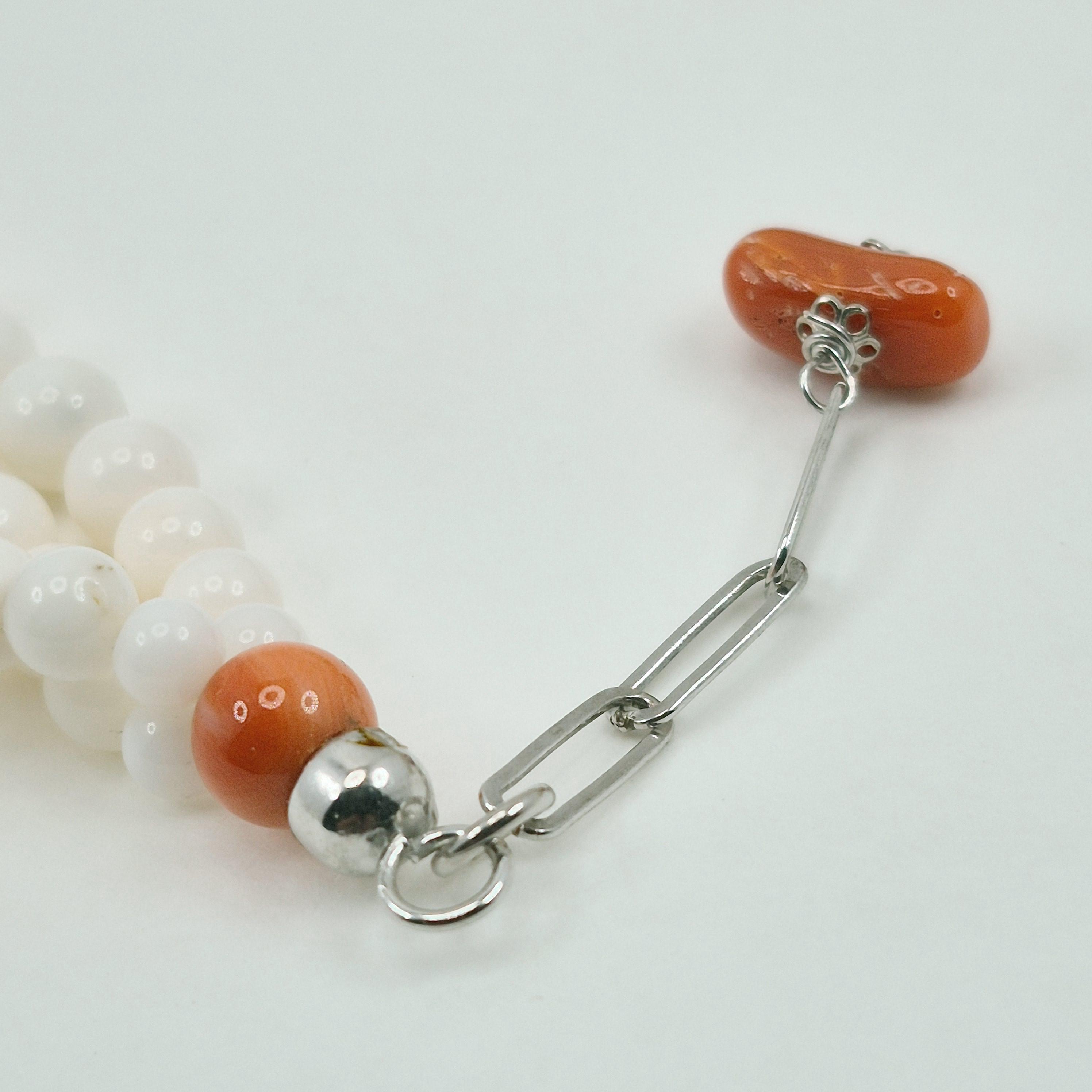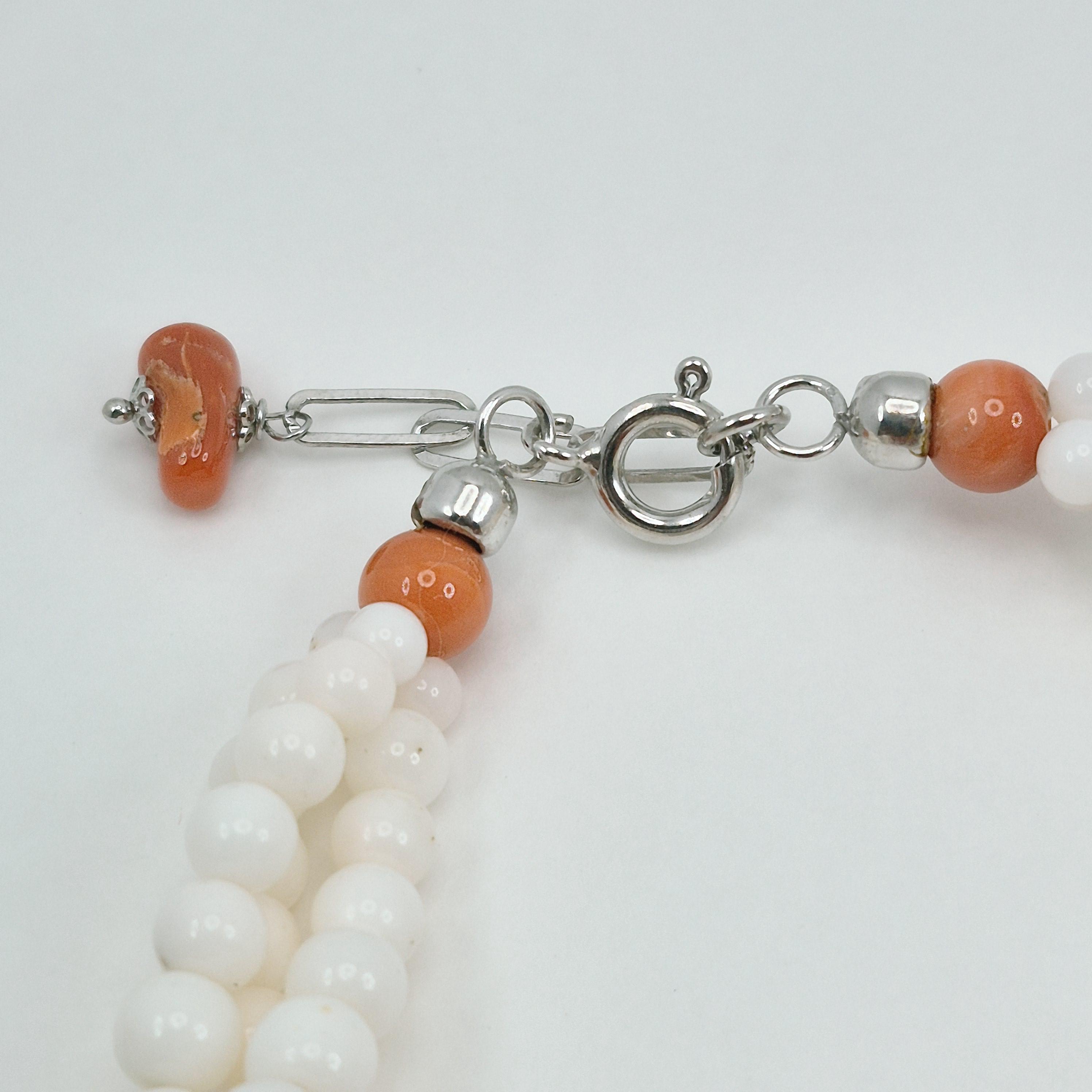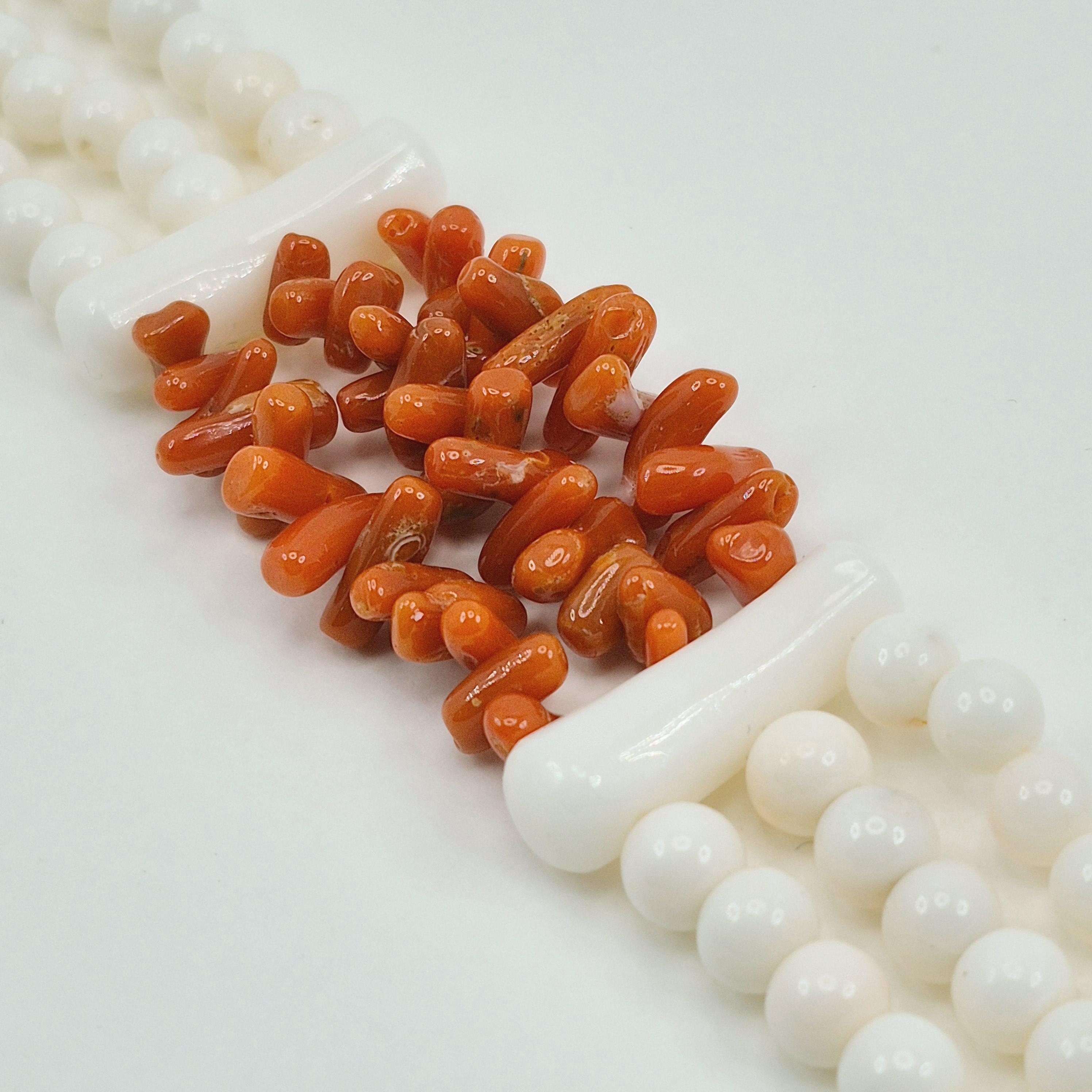 Special and entirely handcrafted bracelet in white coral from the seas of Asia and Mediterranean coral called Sciacca from the seas of Sicily where the coral has a more orange hue due to the Volcano.