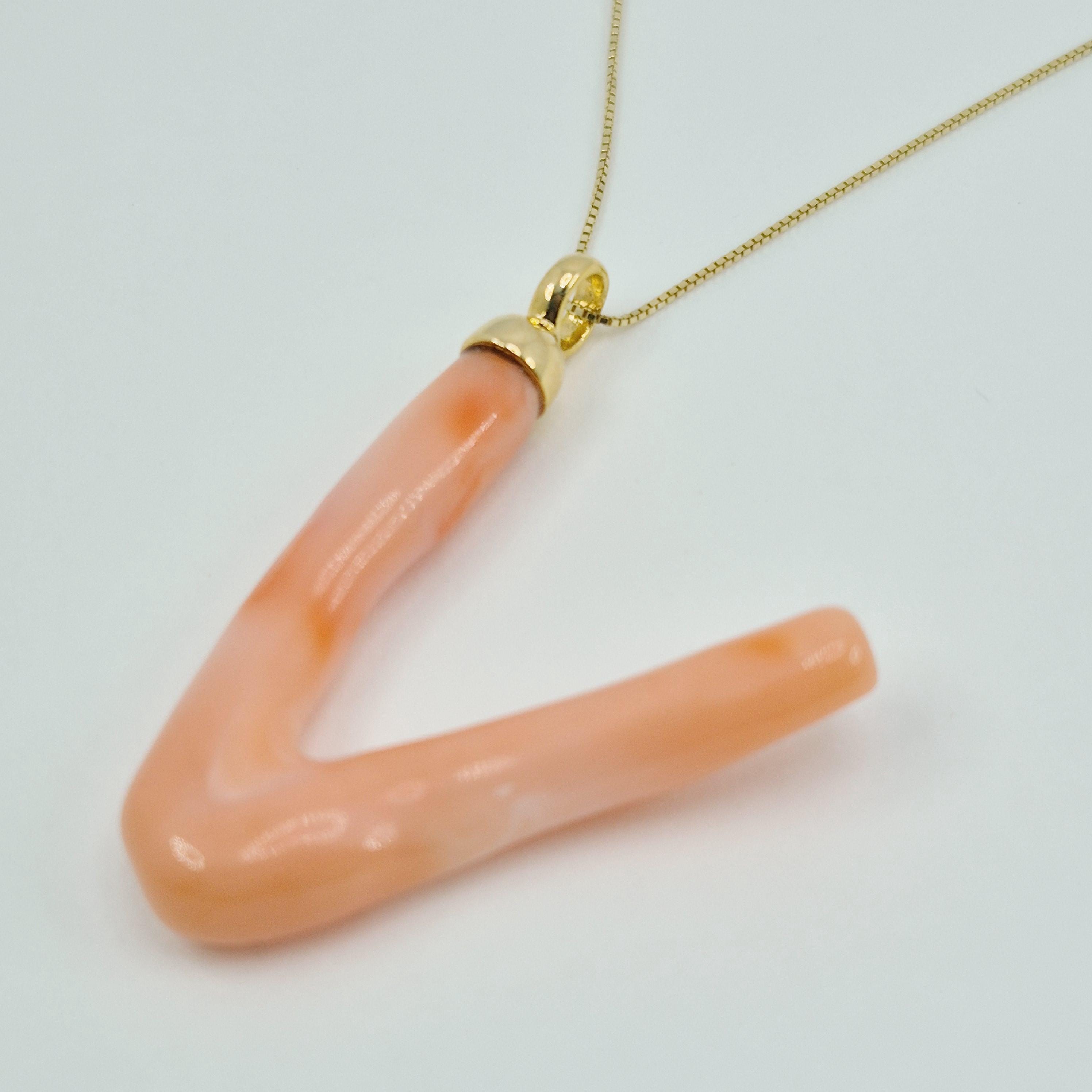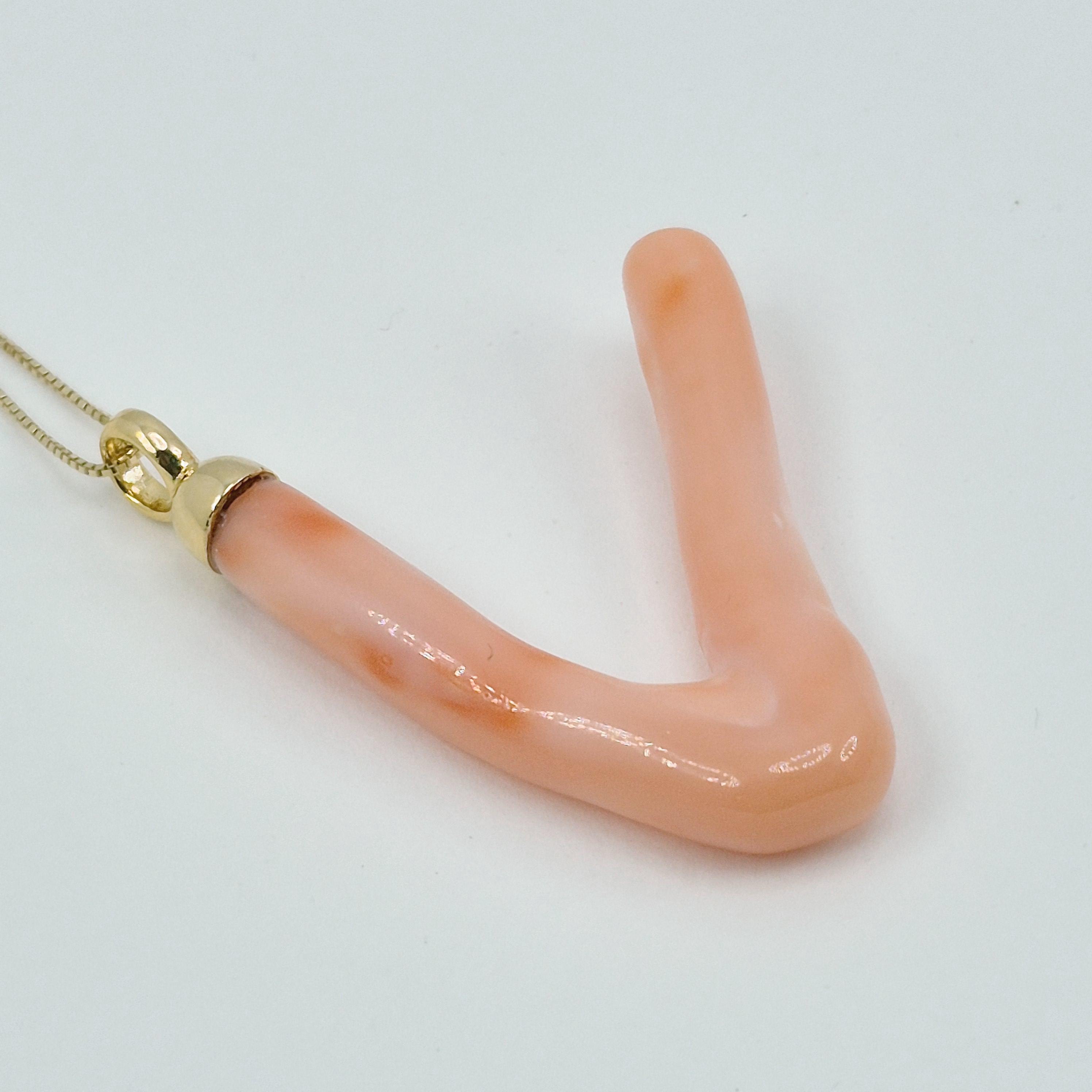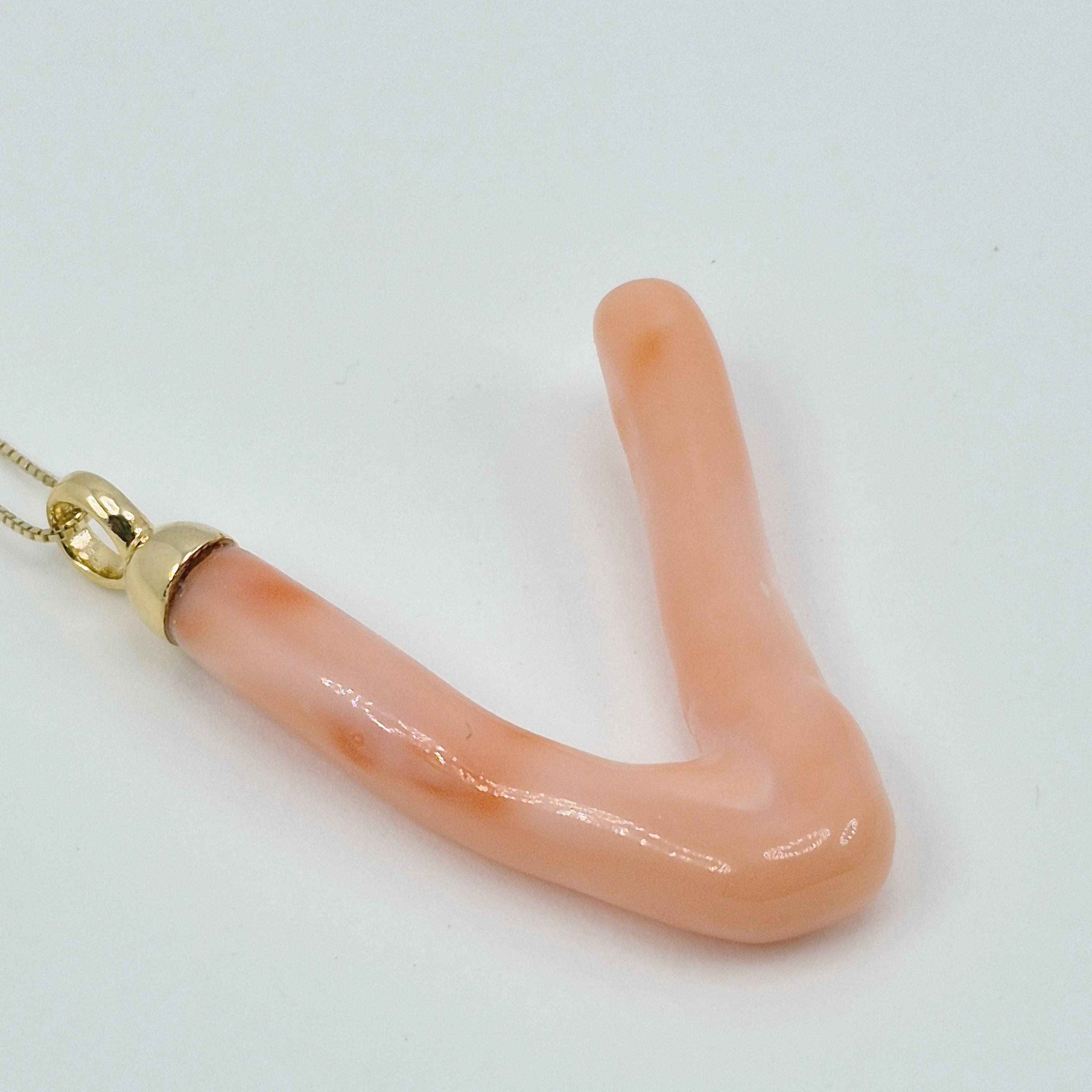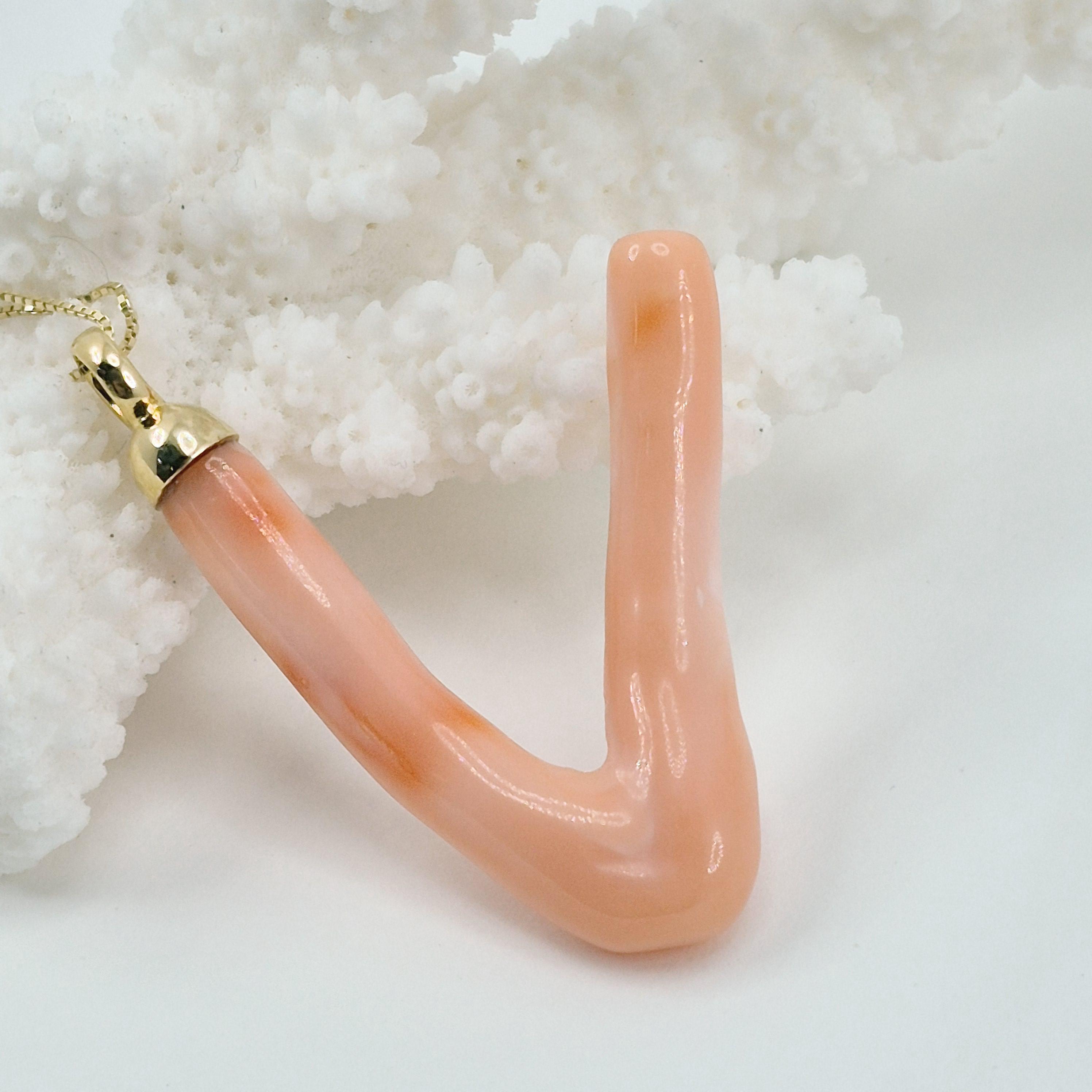 This unique initial is handcrafted in pink coral from Asian seas and left in its natural shape.