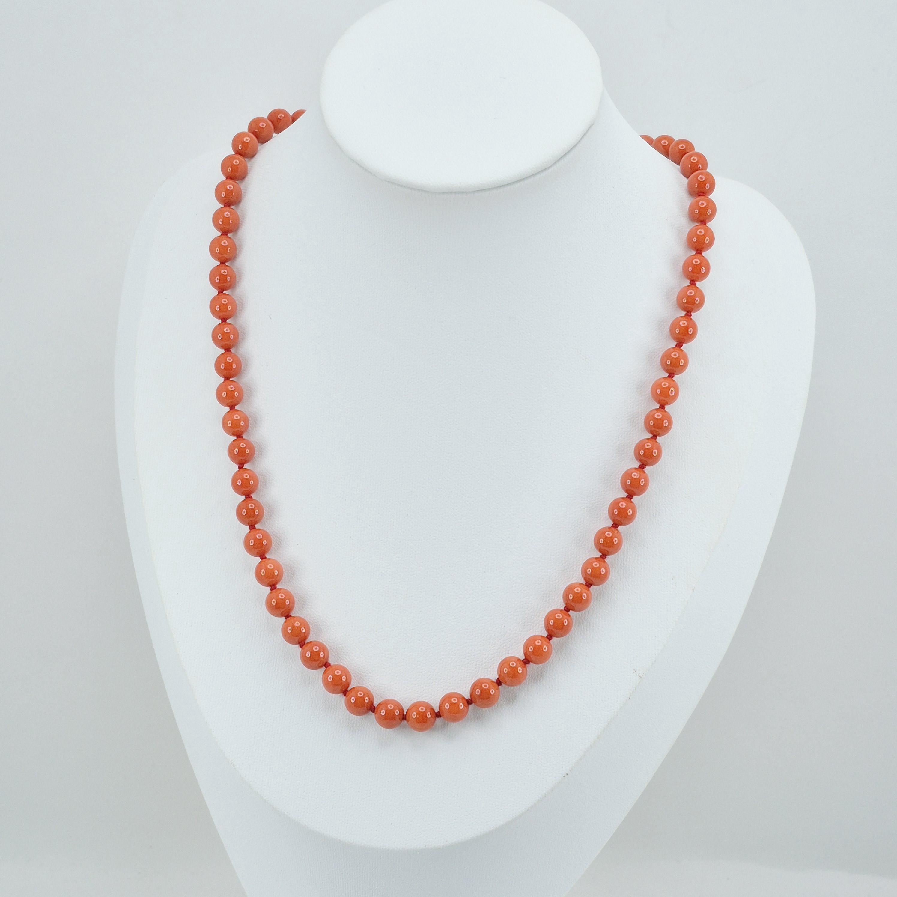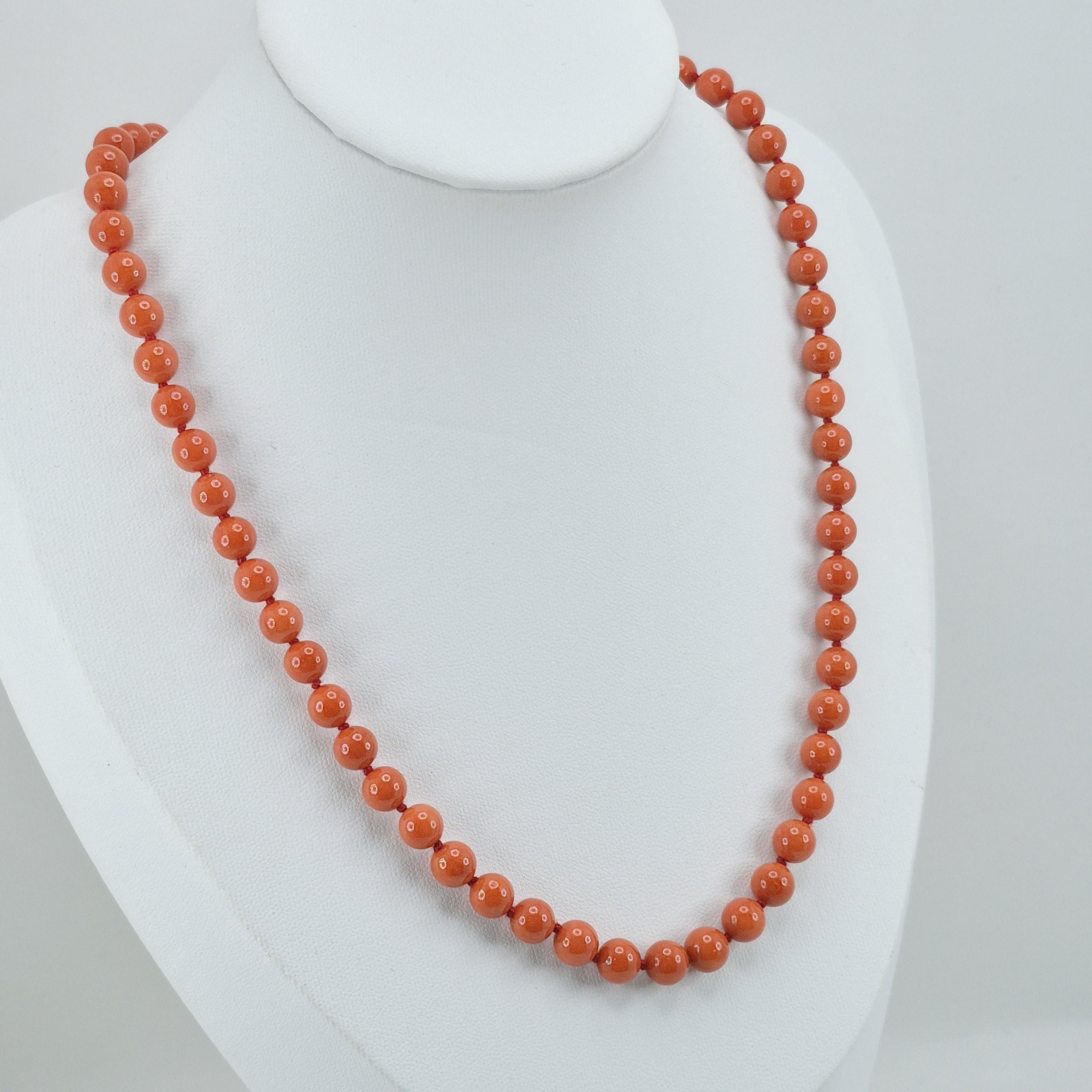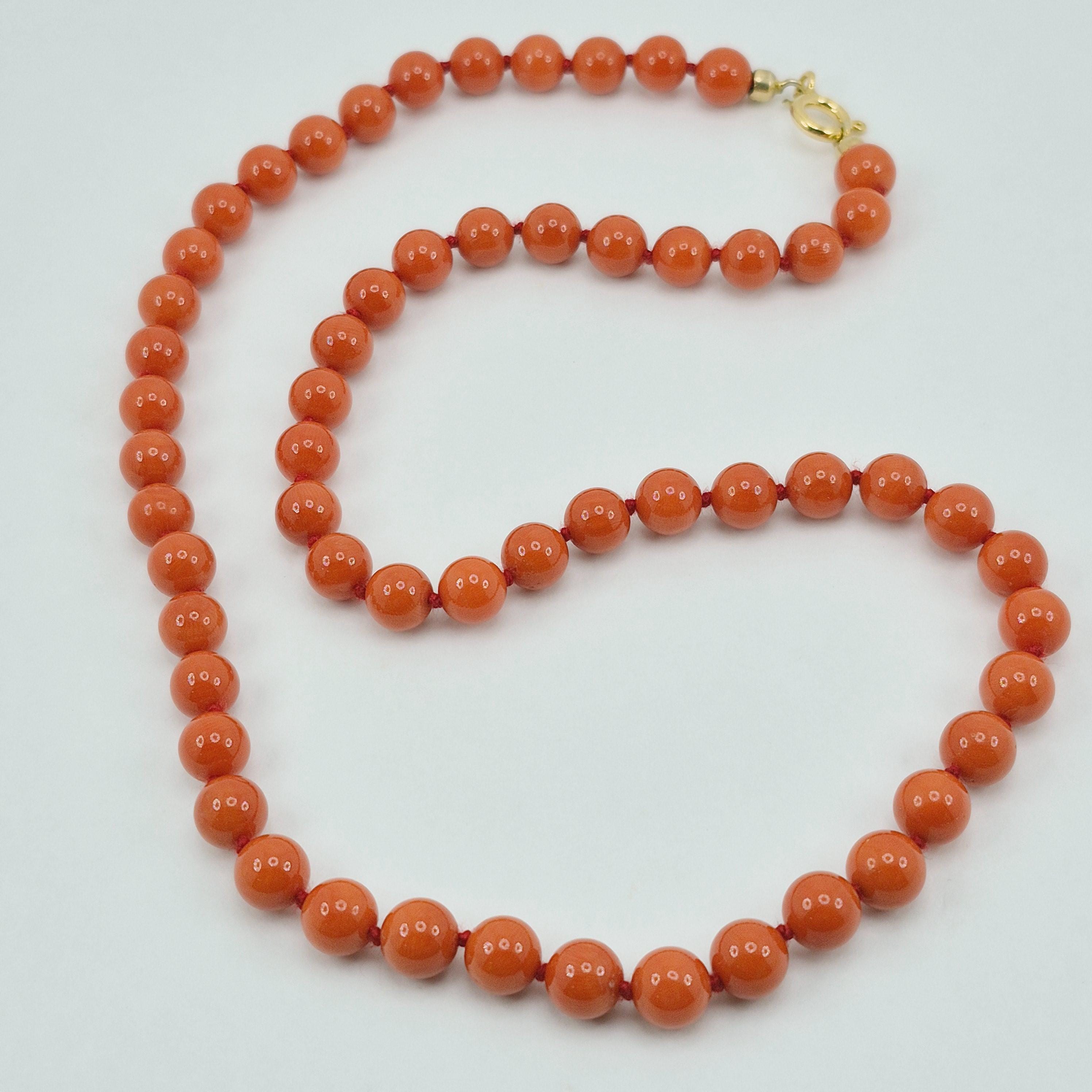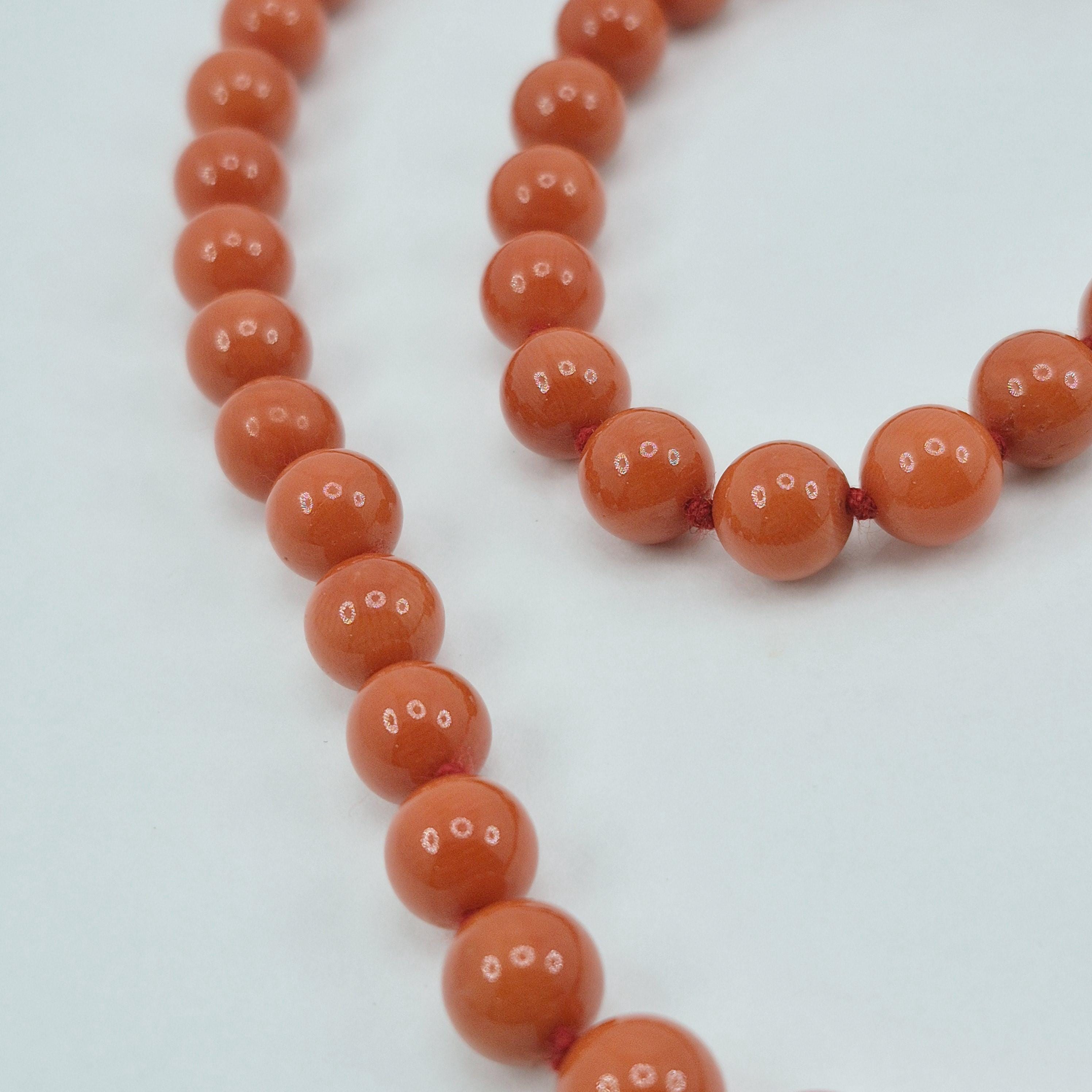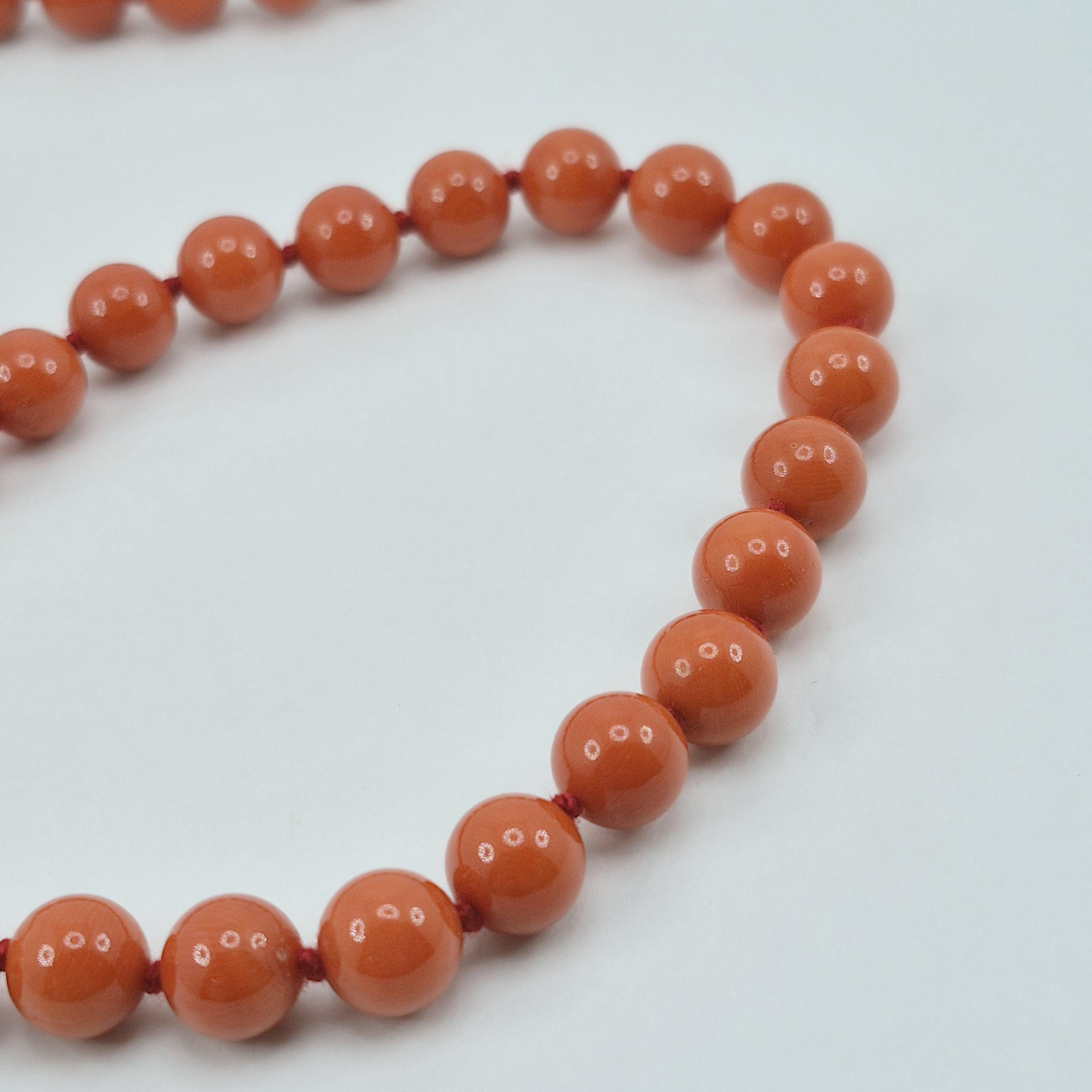 A charming blood coral necklace from the seas of Sardinia, handcrafted sphere by sphere according to the coral processing phases handed down in Torre del Greco.