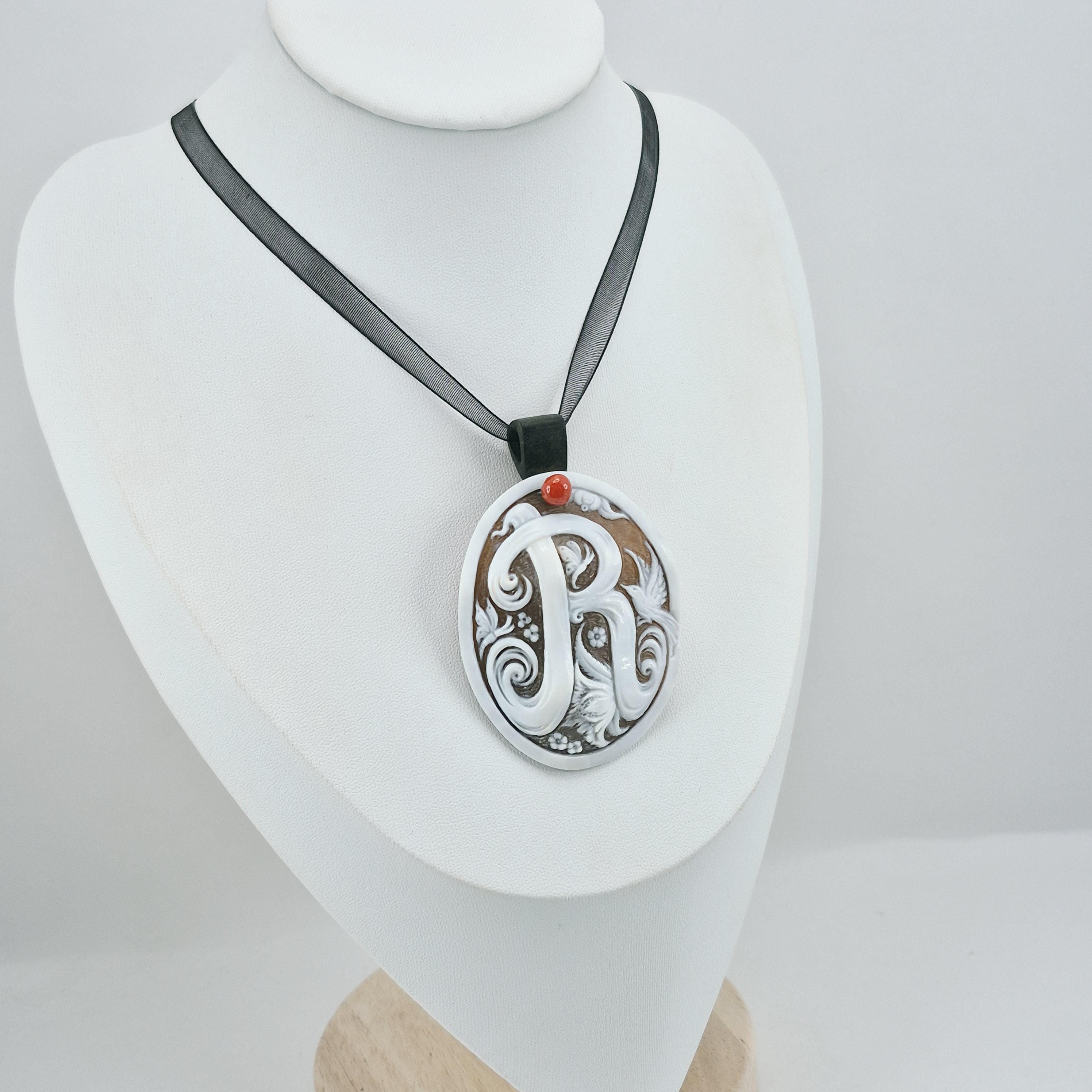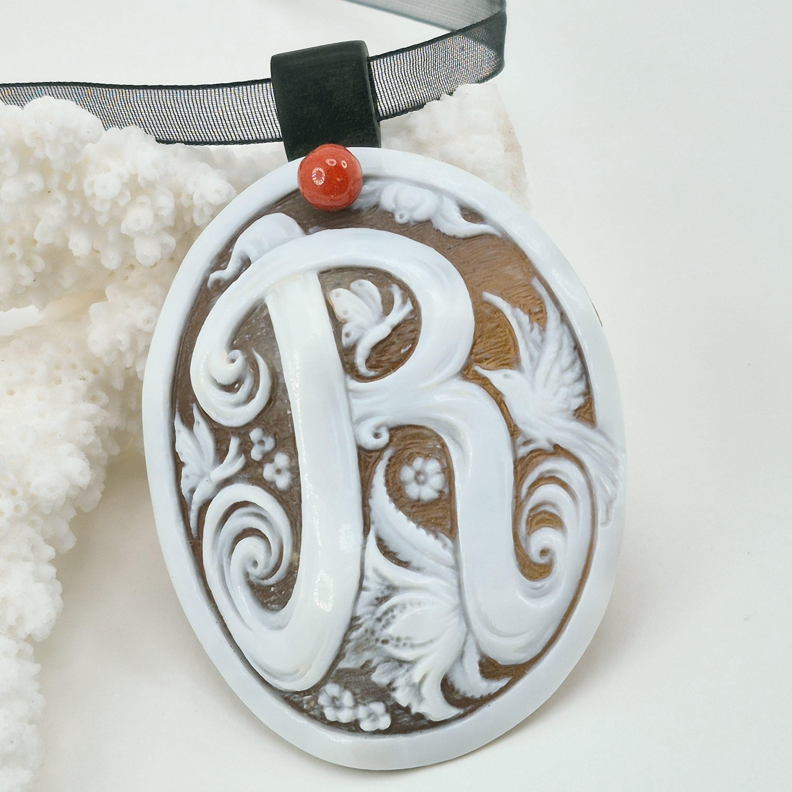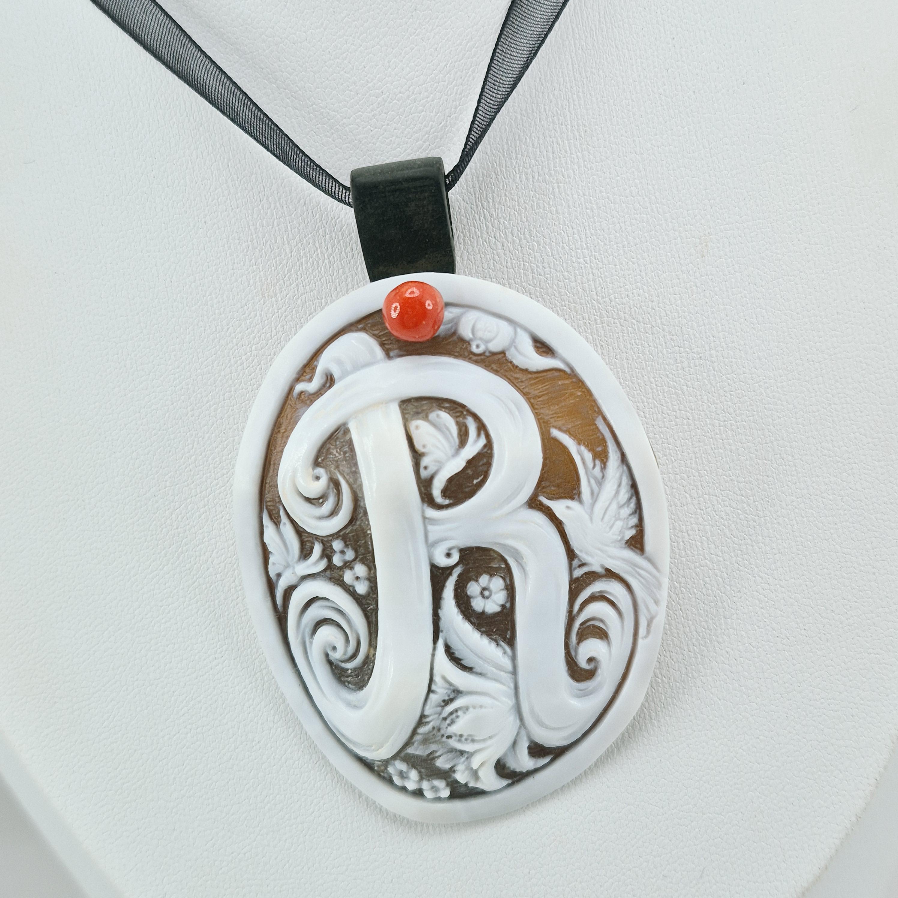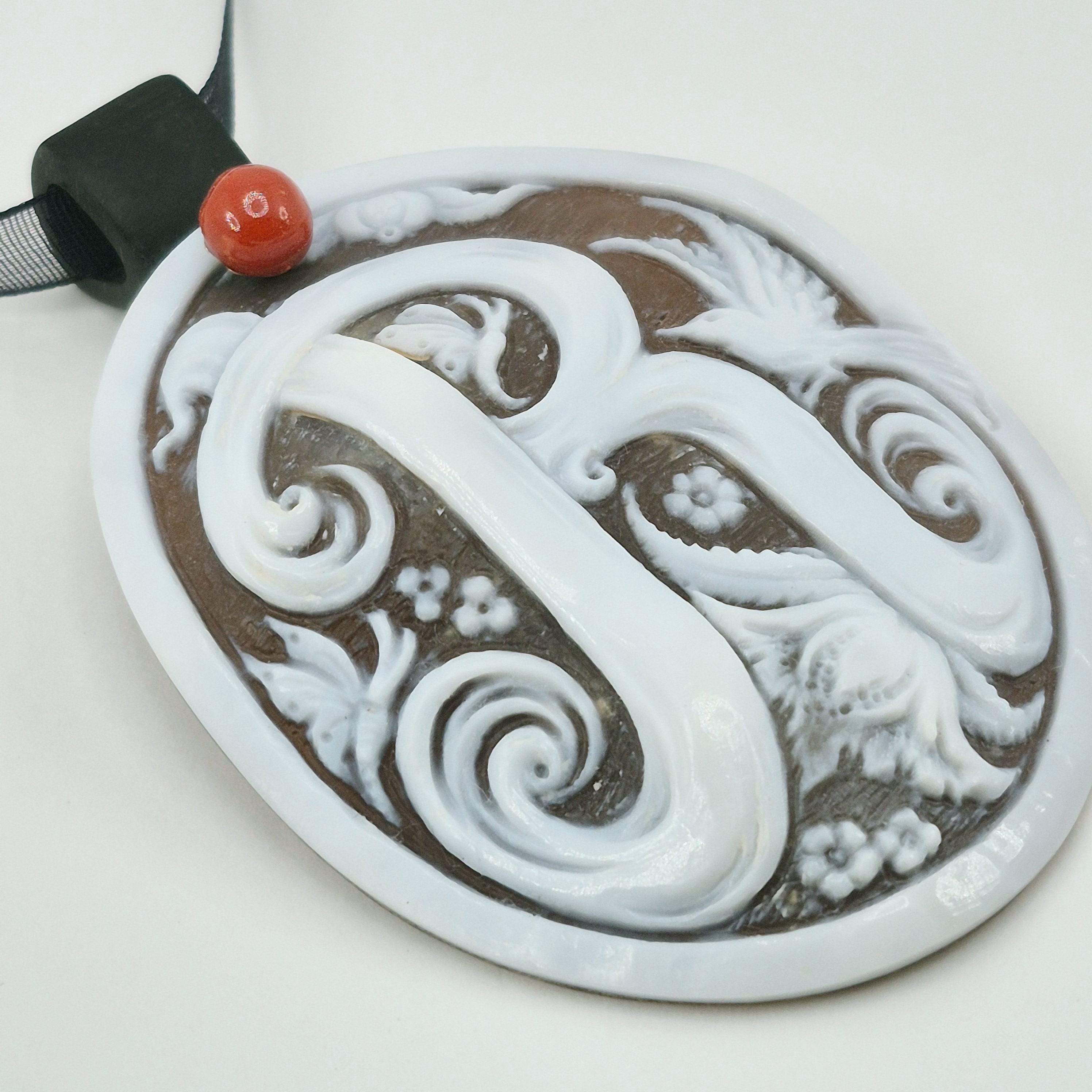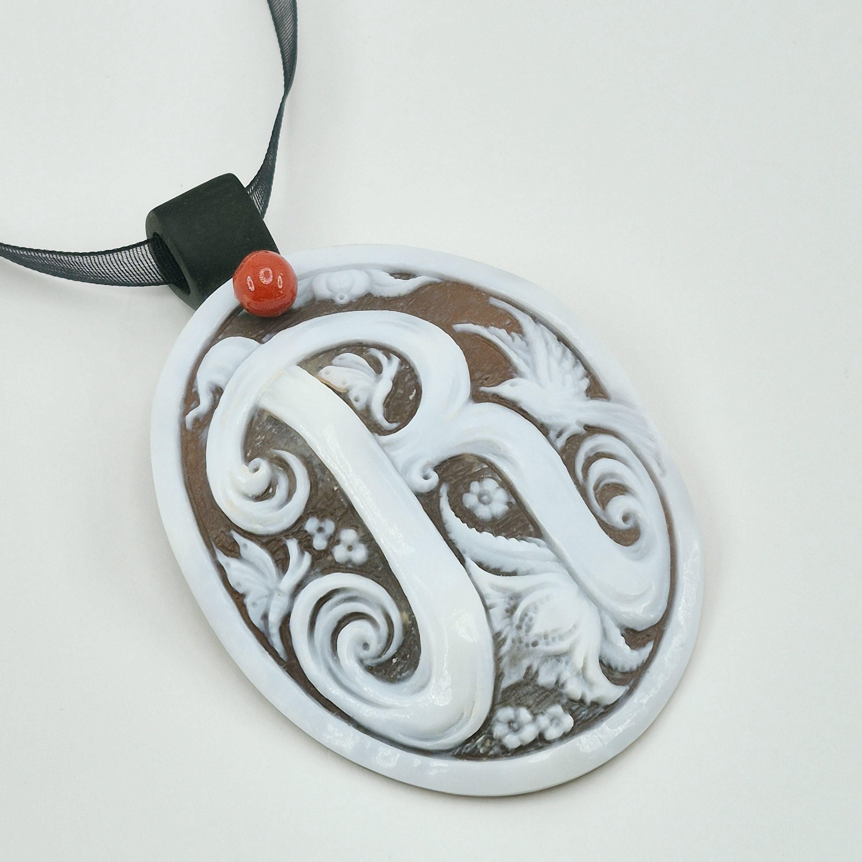 Enchanting personalized cameo engraved on Cassis Madagascariensis shell in a more contemporary style.