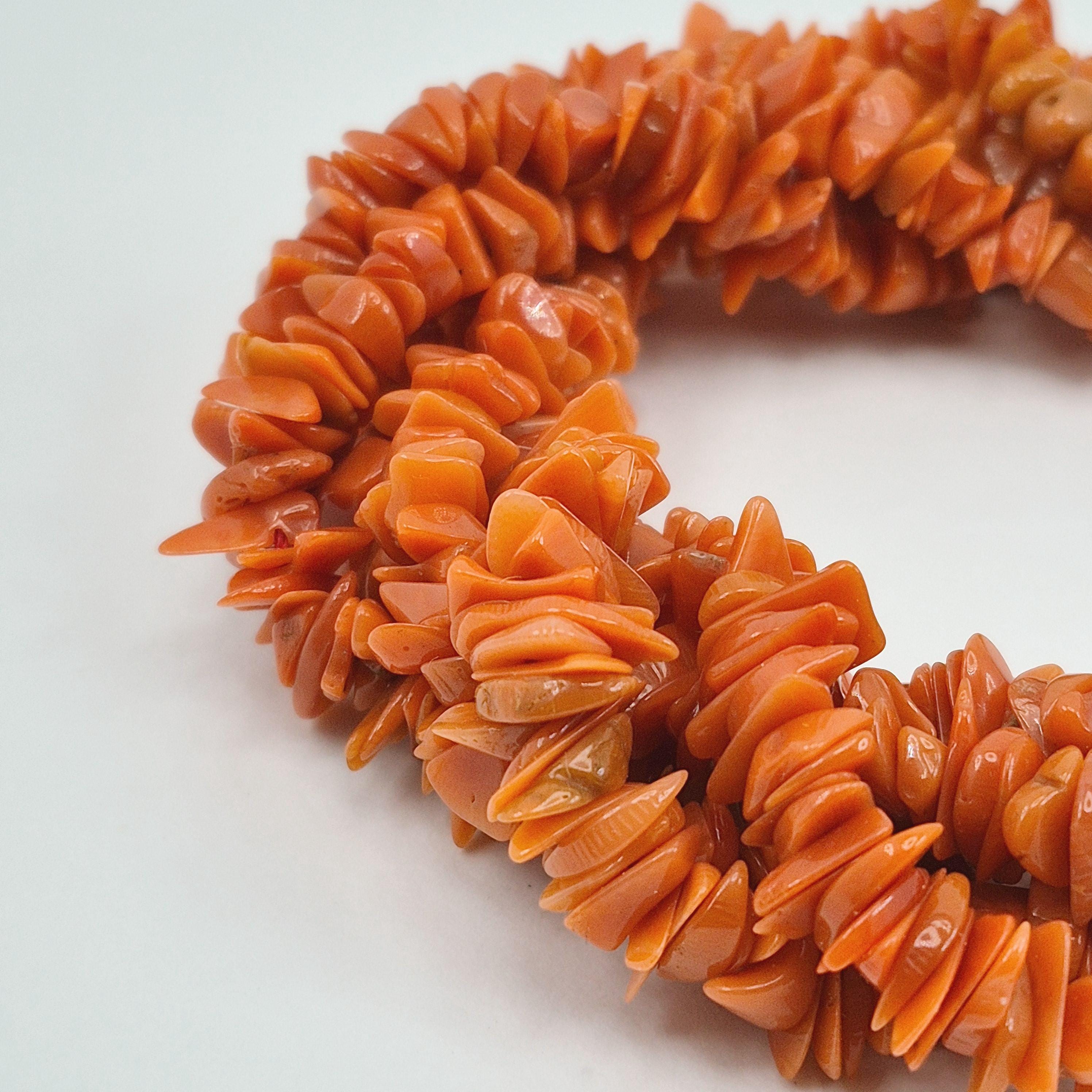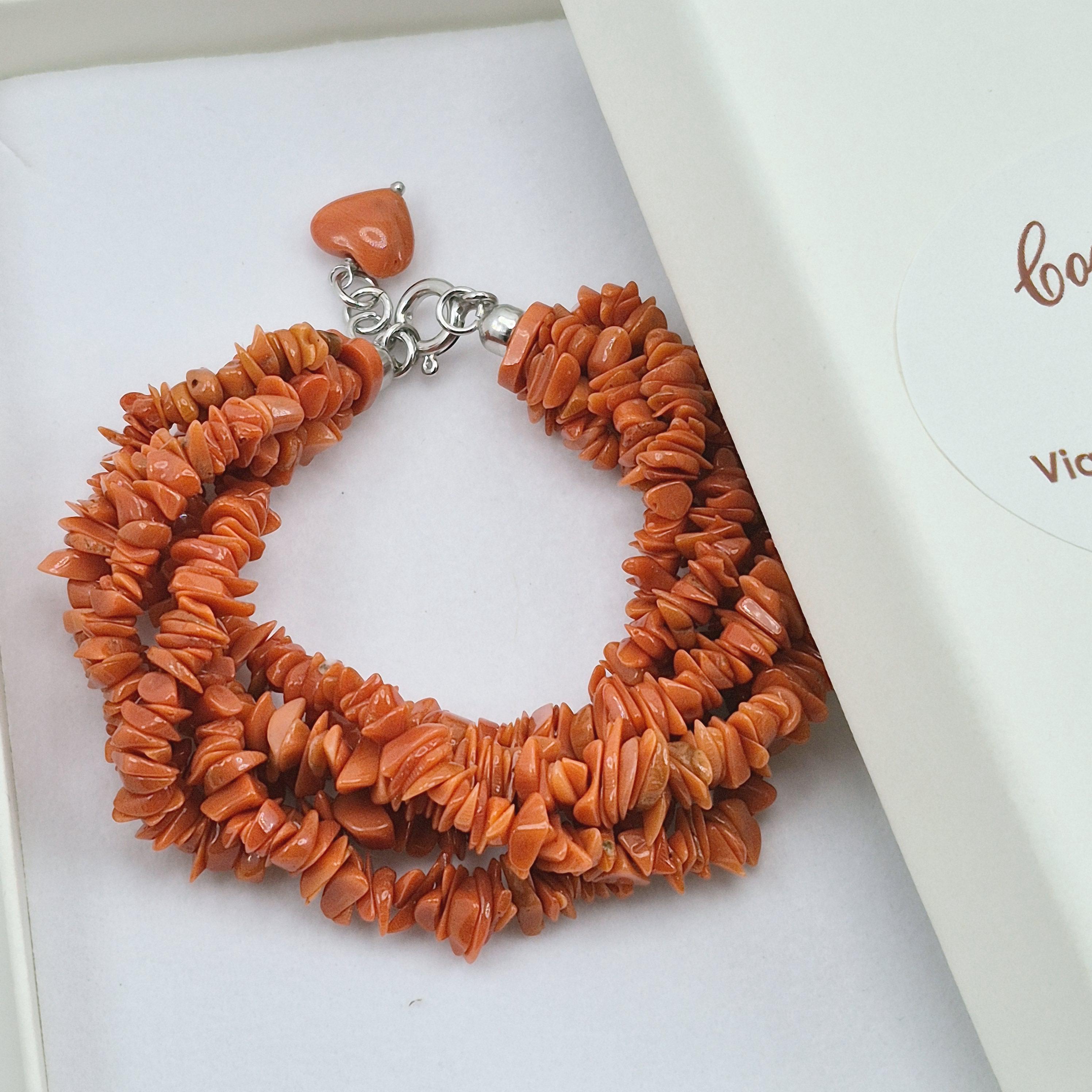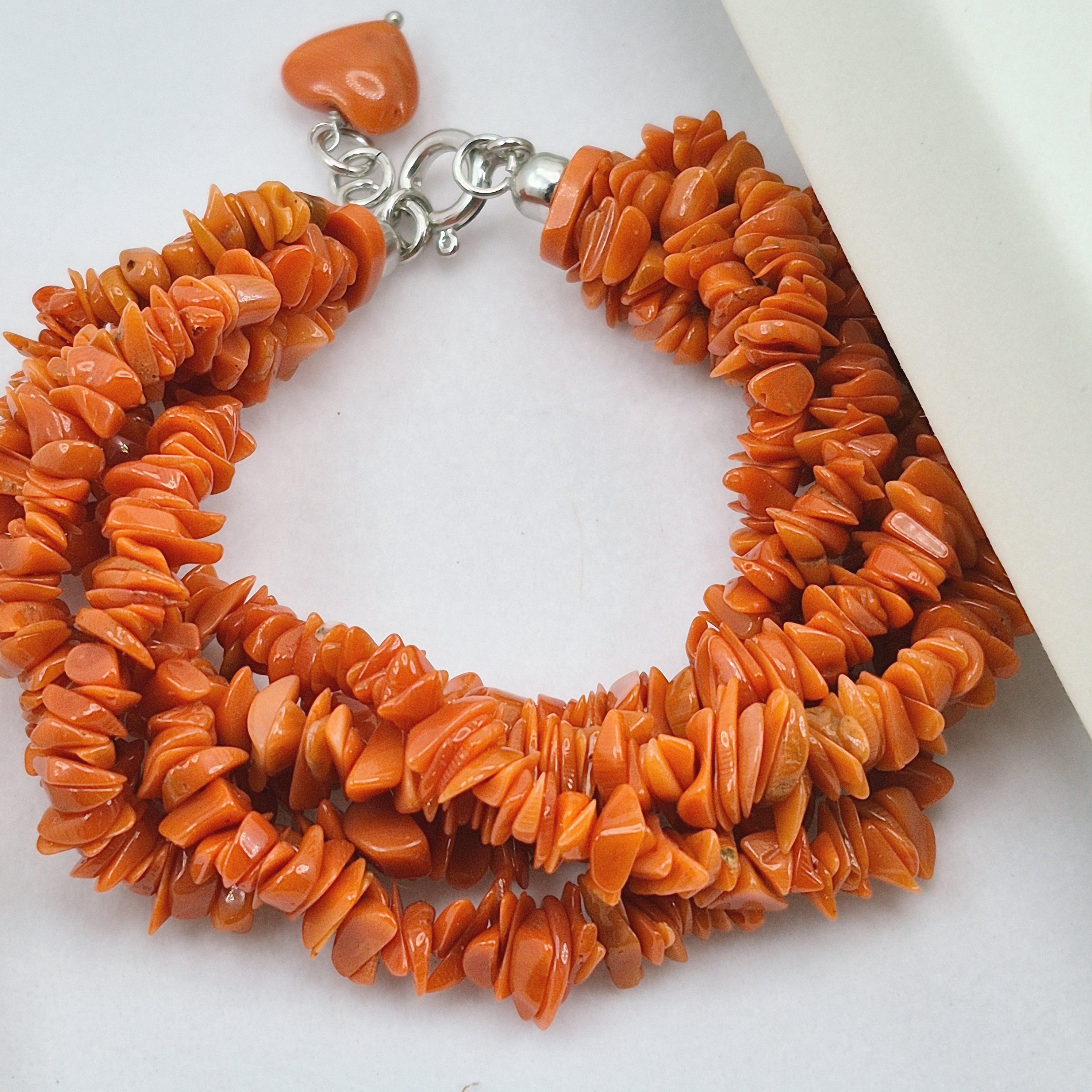 Enchanting and handcrafted torchon bracelet in 5-strand Mediterranean coral flakes, made and crafted in Torre del Greco.