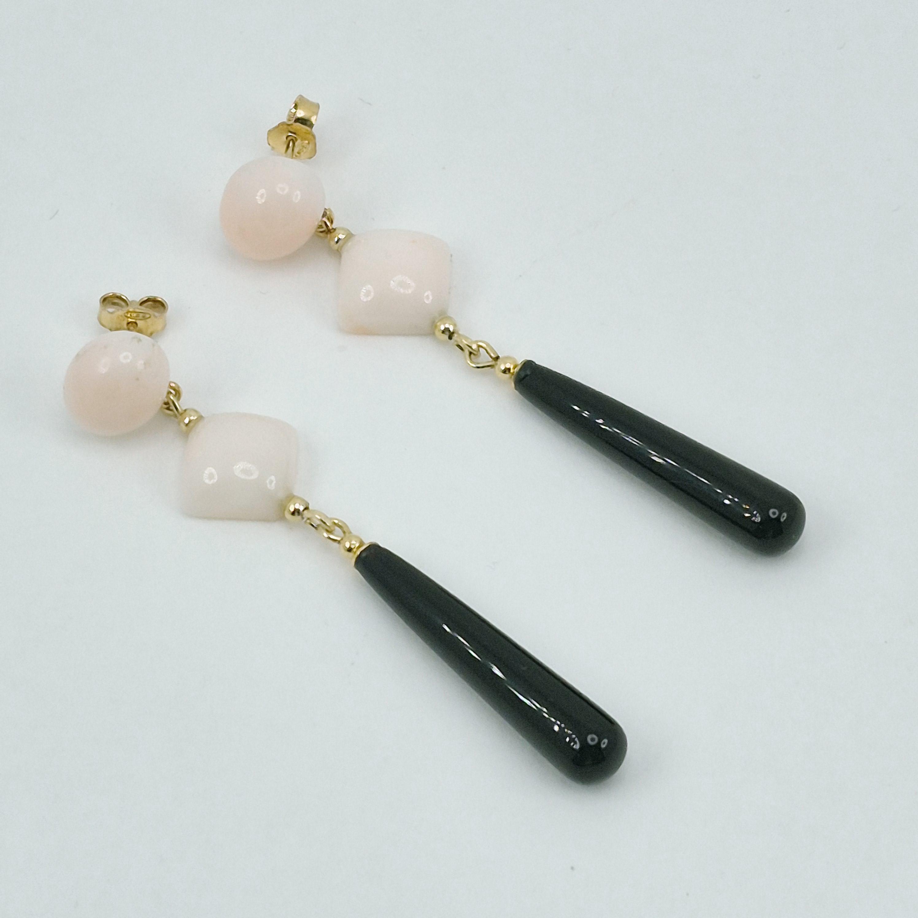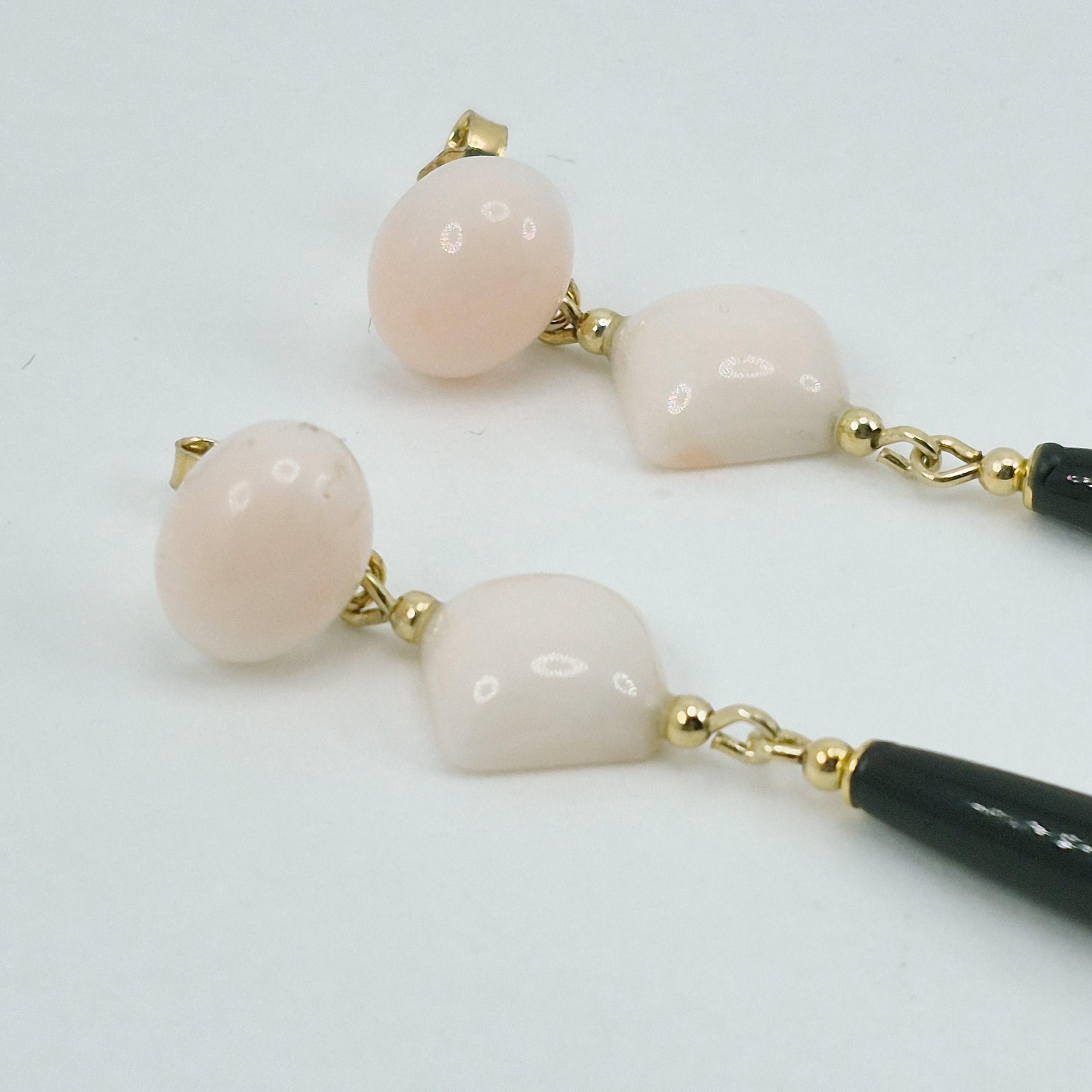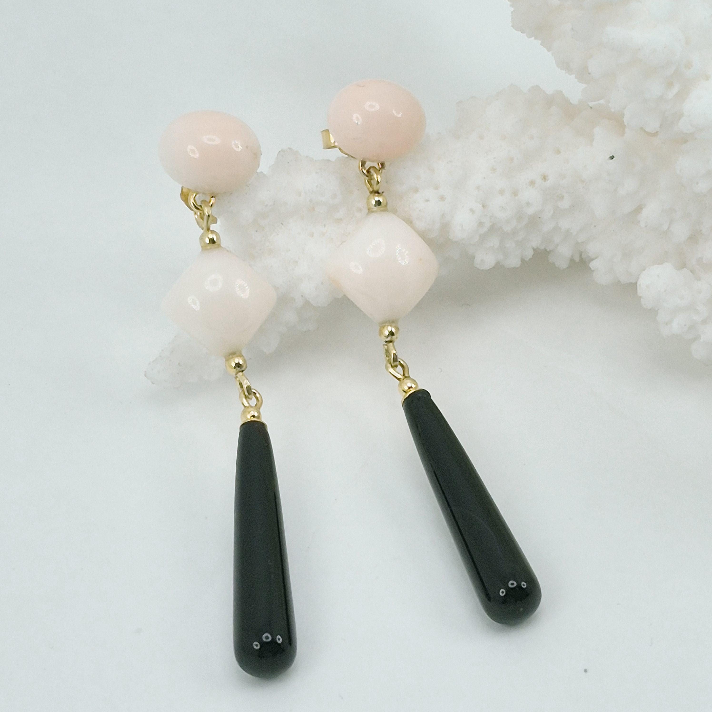 Enchanting pink coral earrings from Asian seas and a natural onyx pendulum from Asia