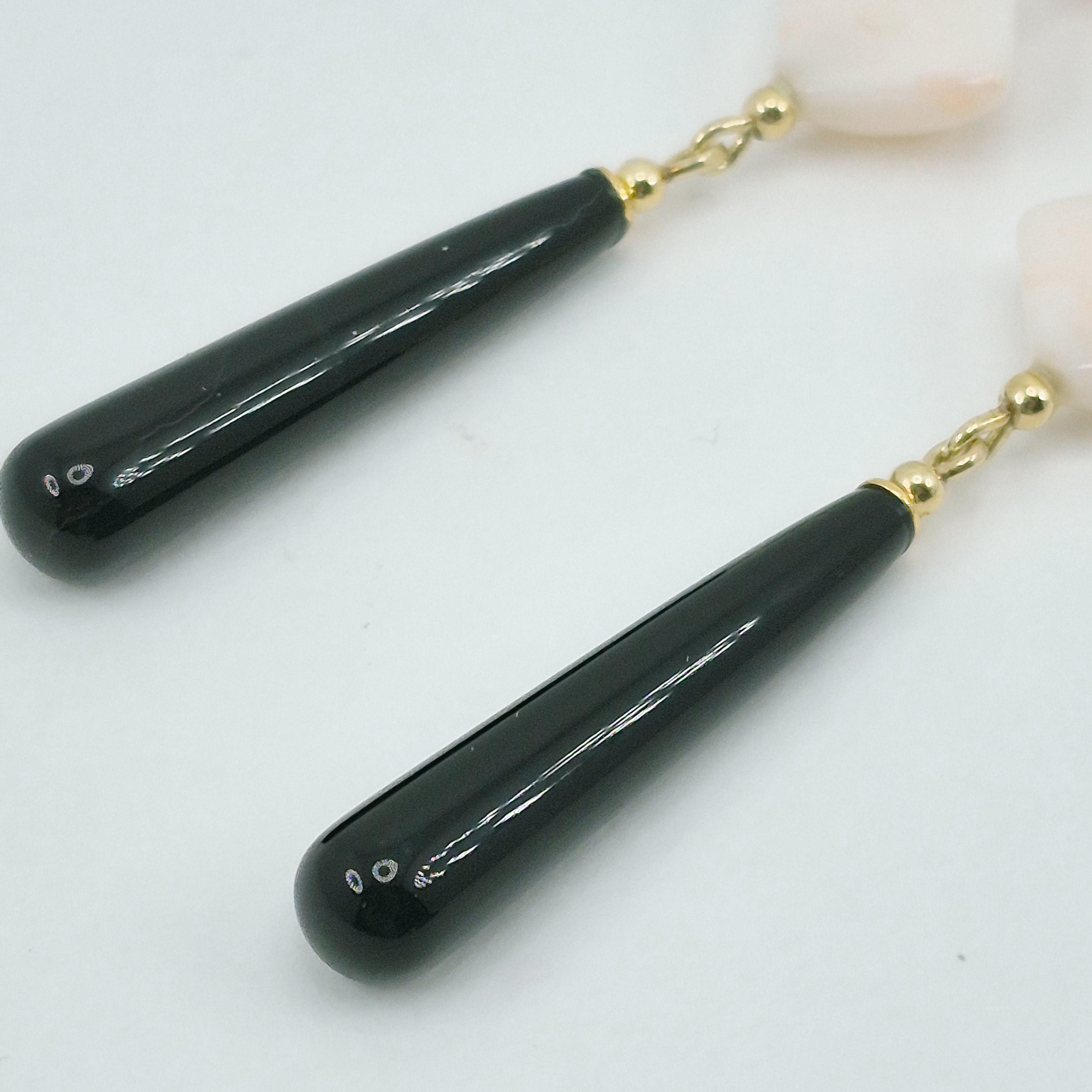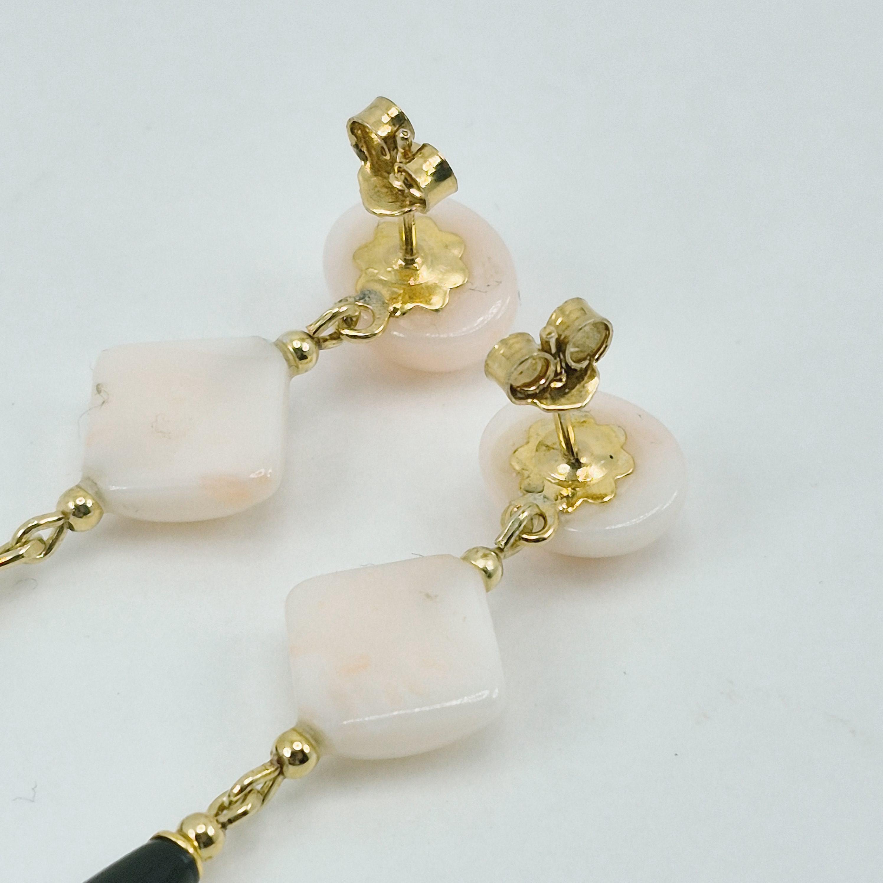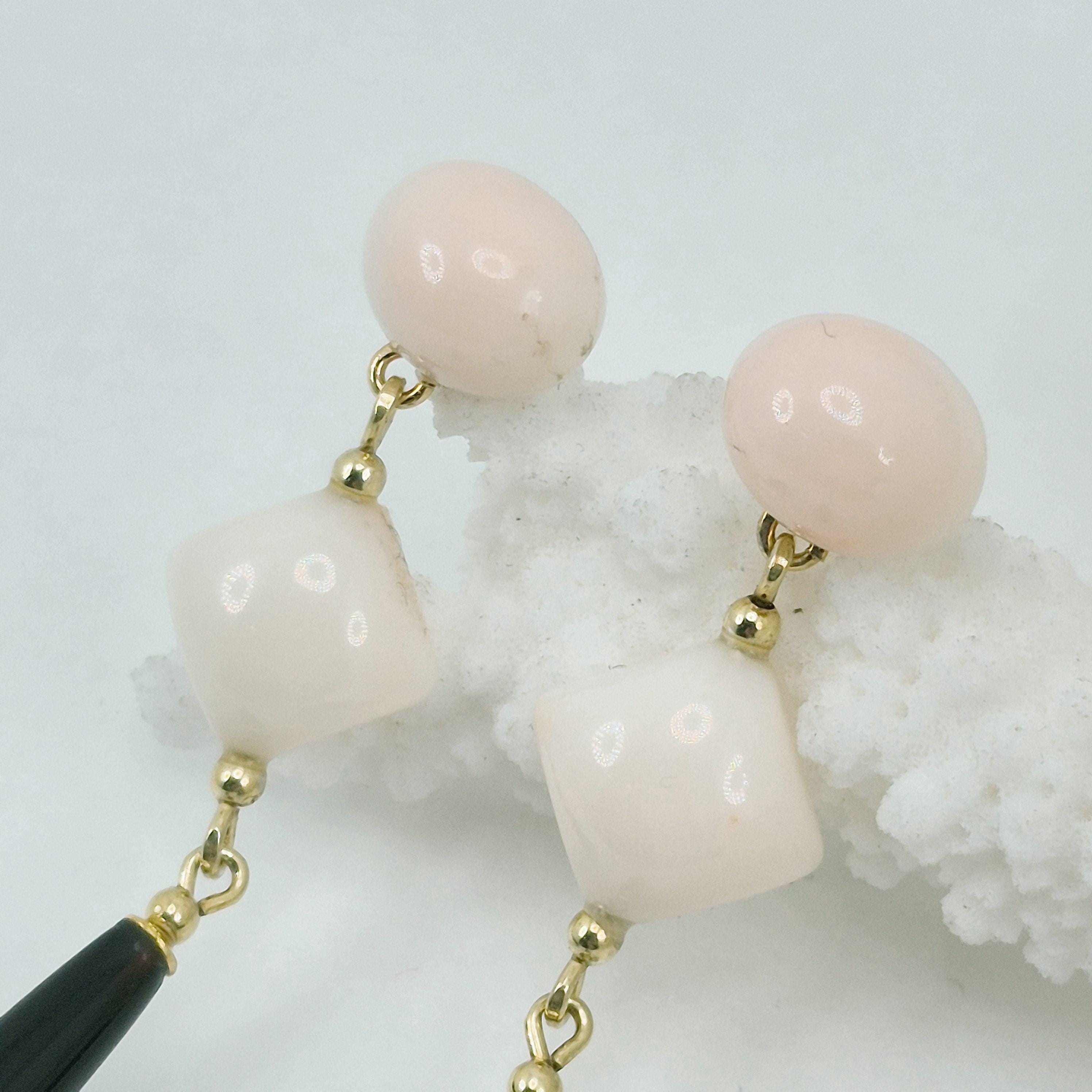Enchanting pink coral earrings from Asian seas and a natural onyx pendulum from Asia