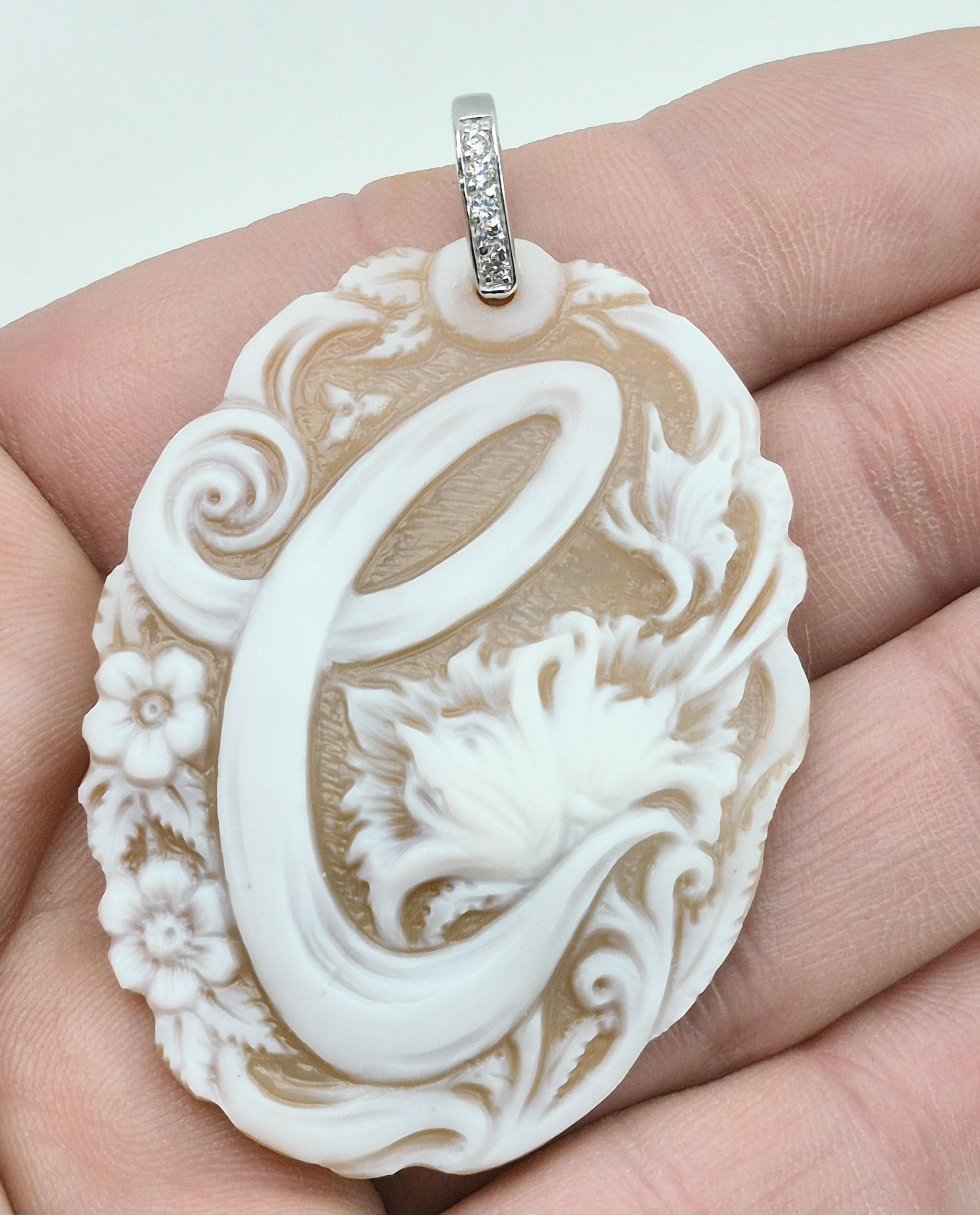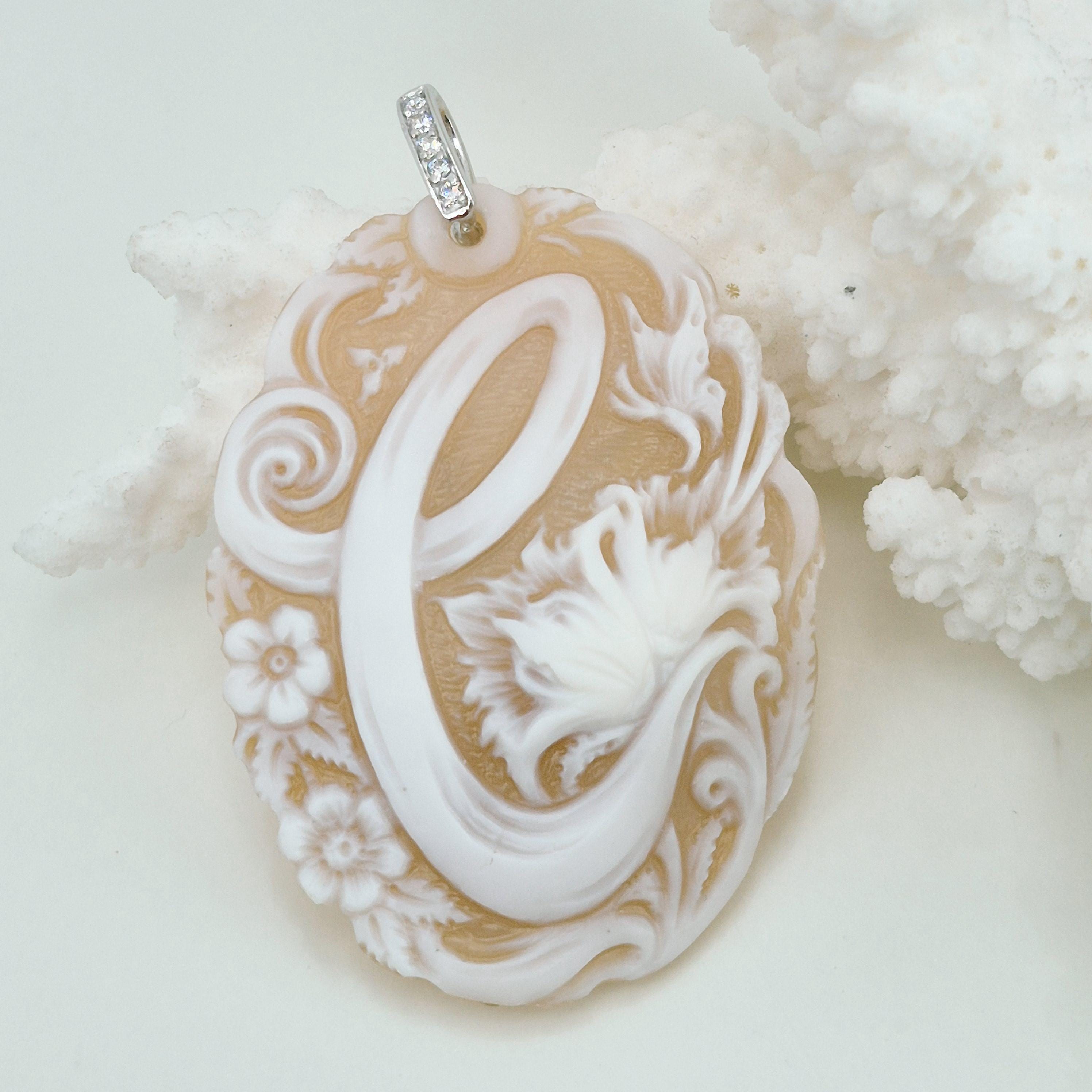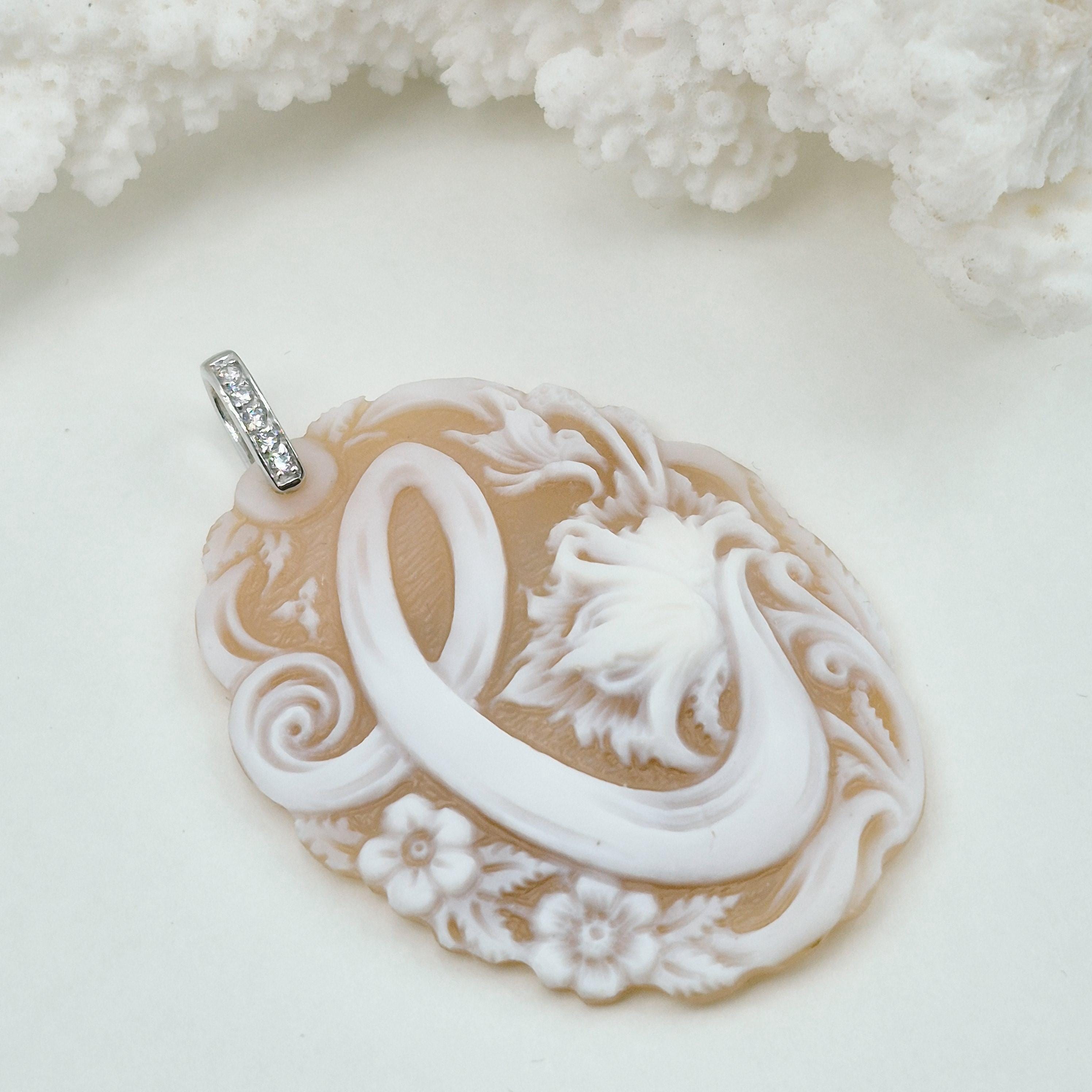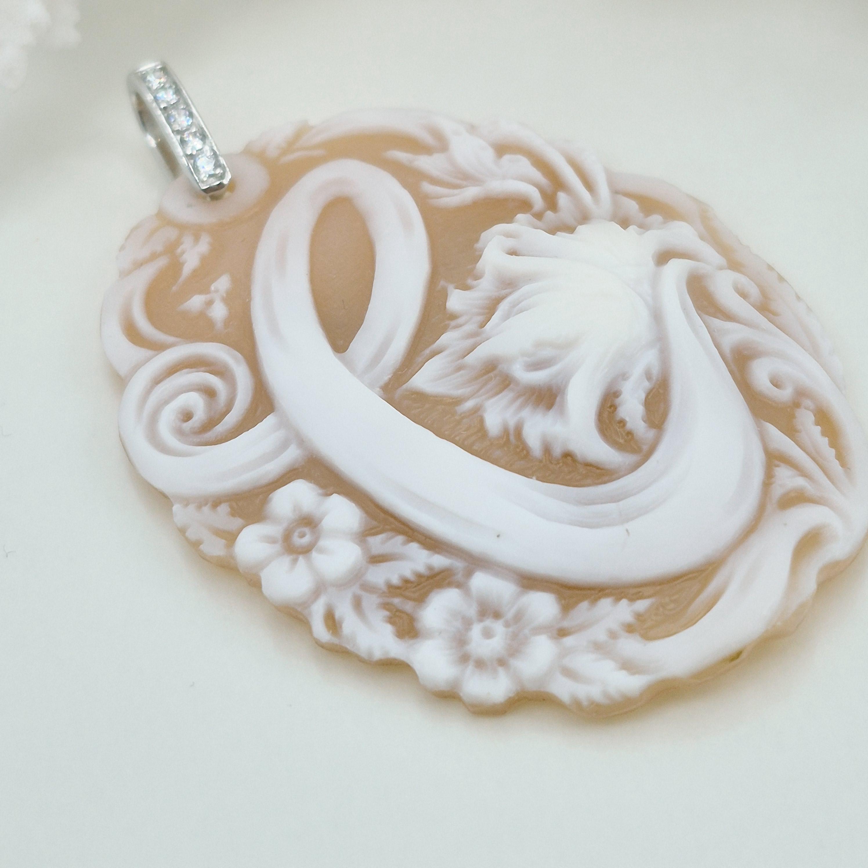Enchanting personalized cameo engraved on Cassis Madagascariensis shell in a more contemporary style