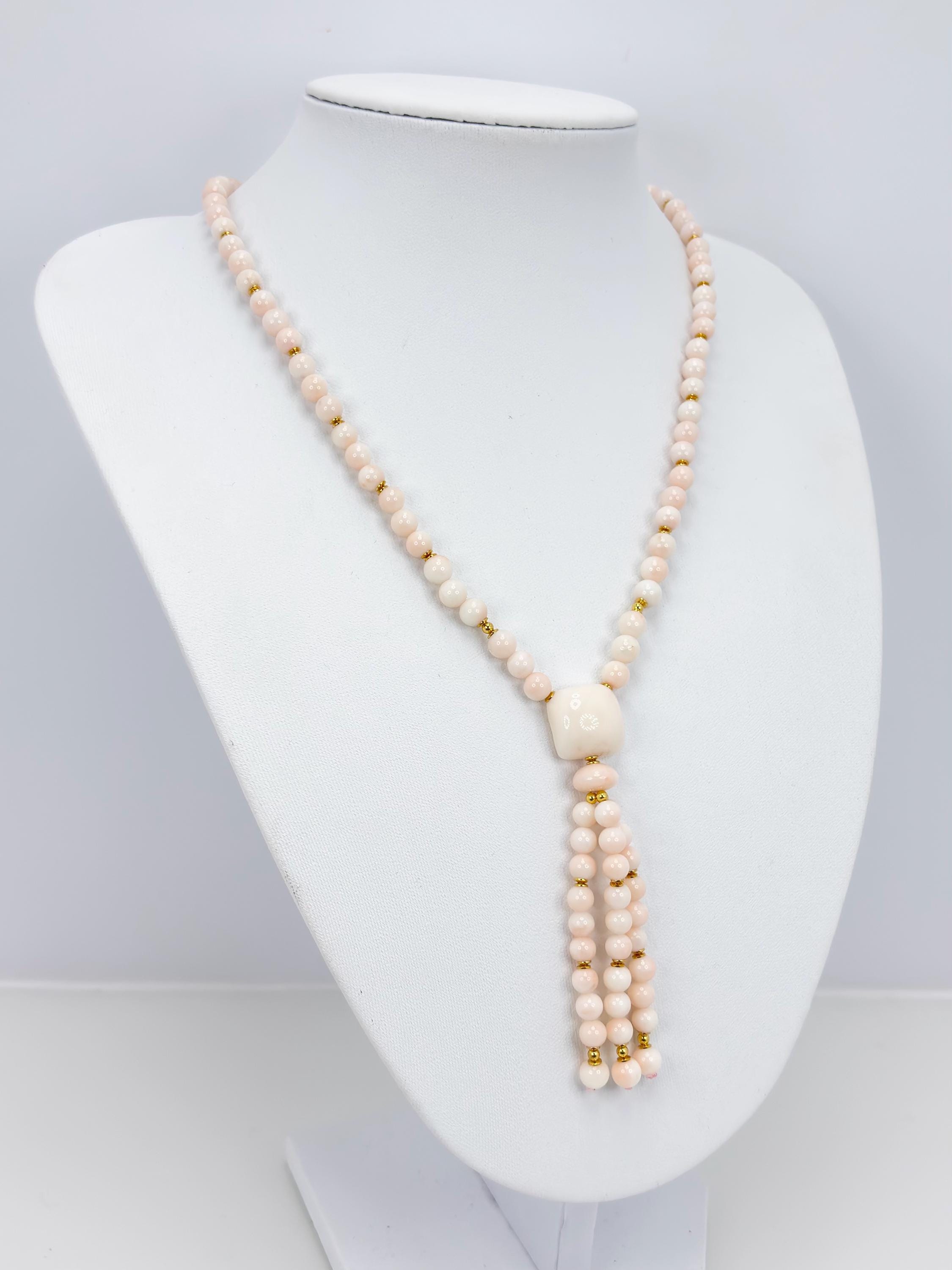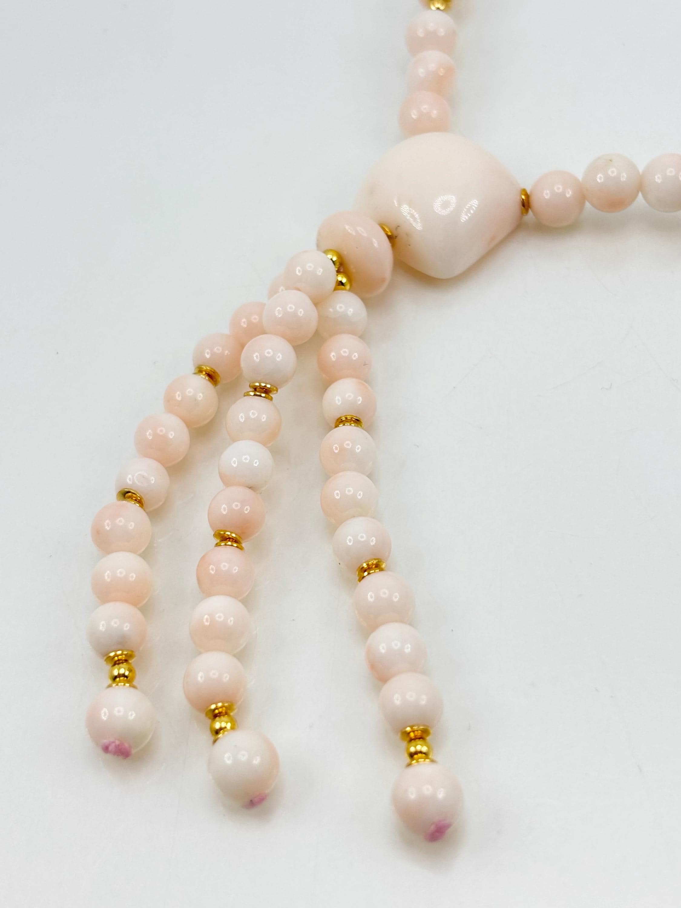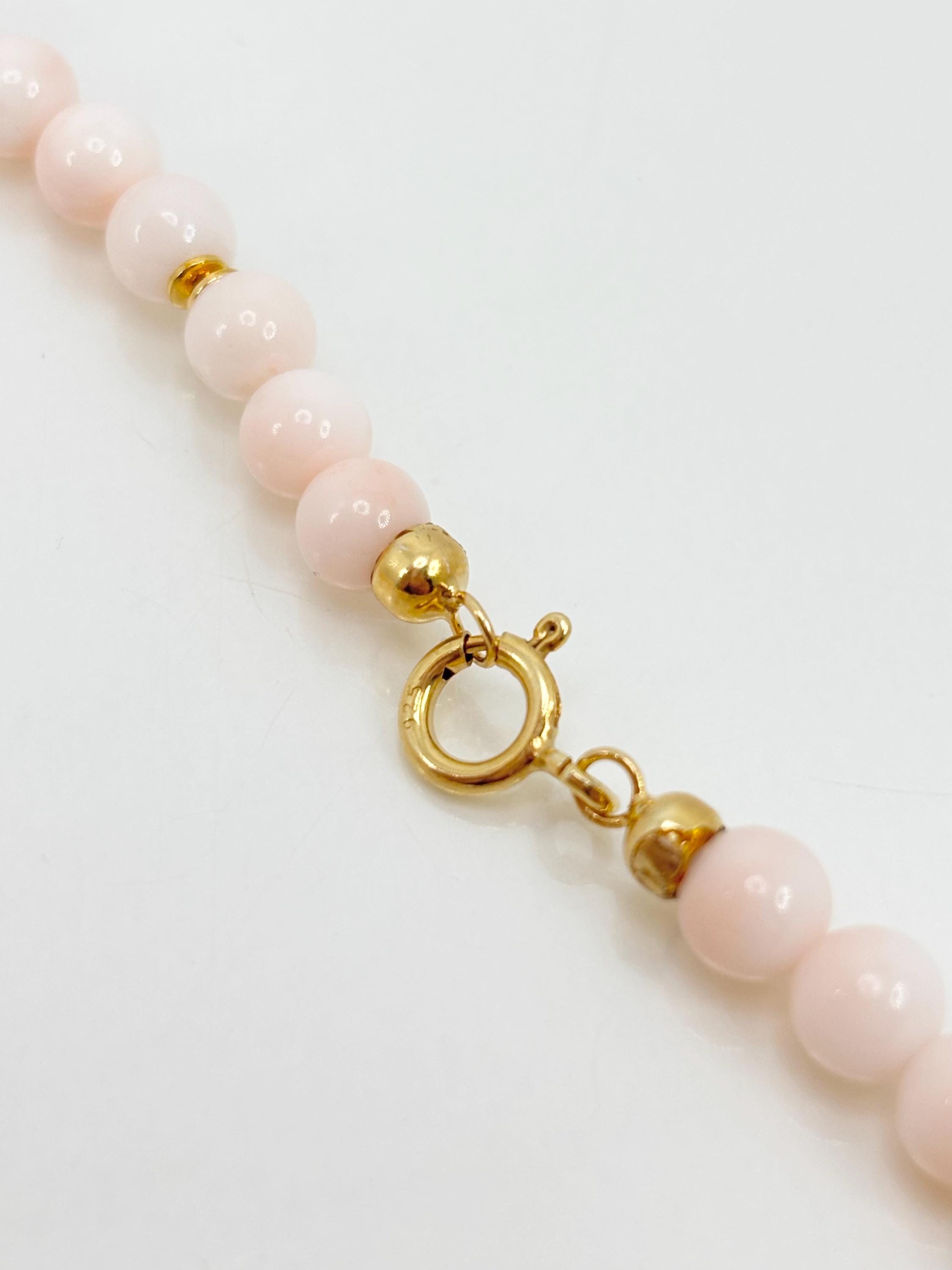 Collana in corallo rosa naturale proveniente dall’Oceano Pacifico con chiusura in Argento 925, le sfere di corallo sono alternate con rondelle sempre in Argento 925 placcato oro.