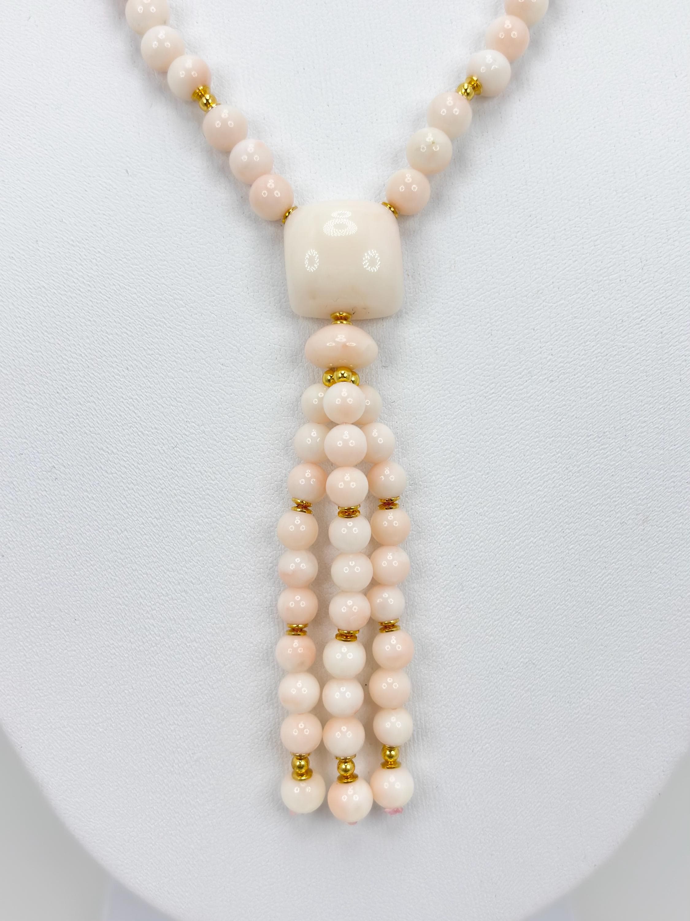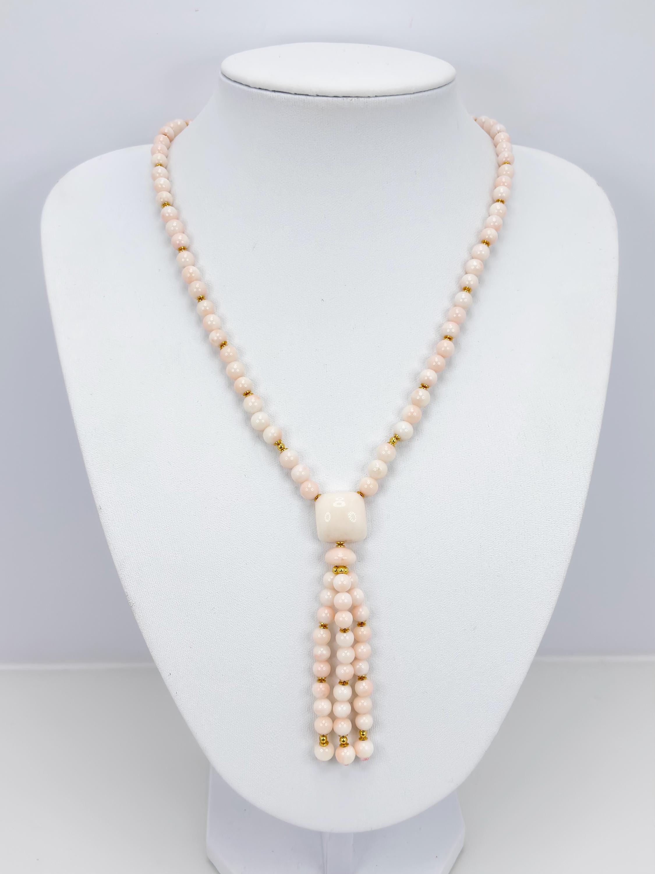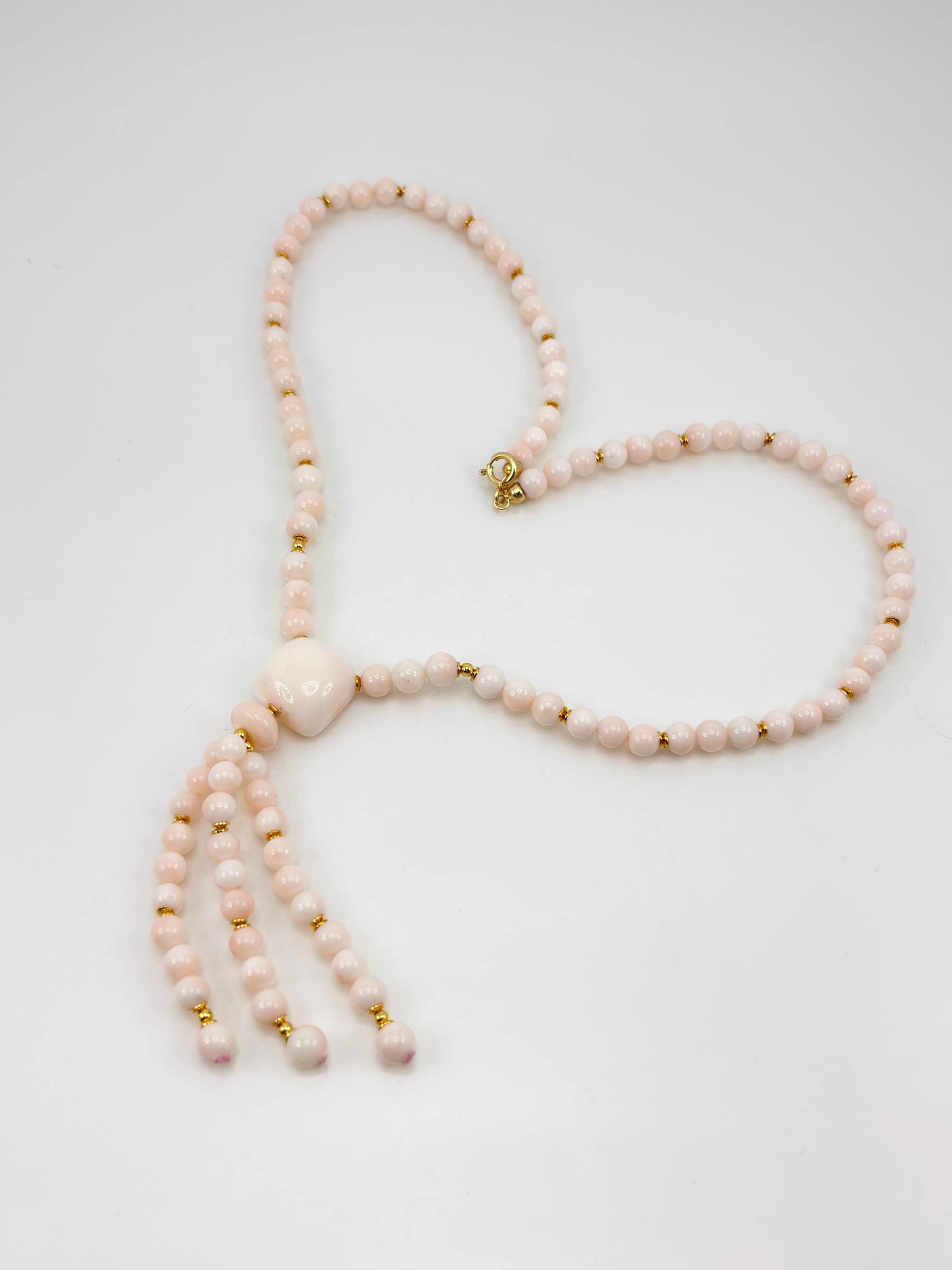 Collana in corallo rosa naturale proveniente dall’Oceano Pacifico con chiusura in Argento 925, le sfere di corallo sono alternate con rondelle sempre in Argento 925 placcato oro.