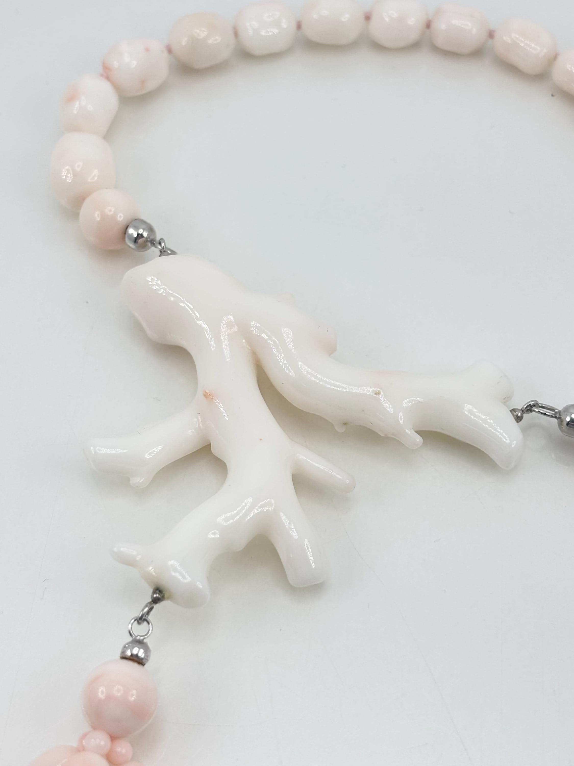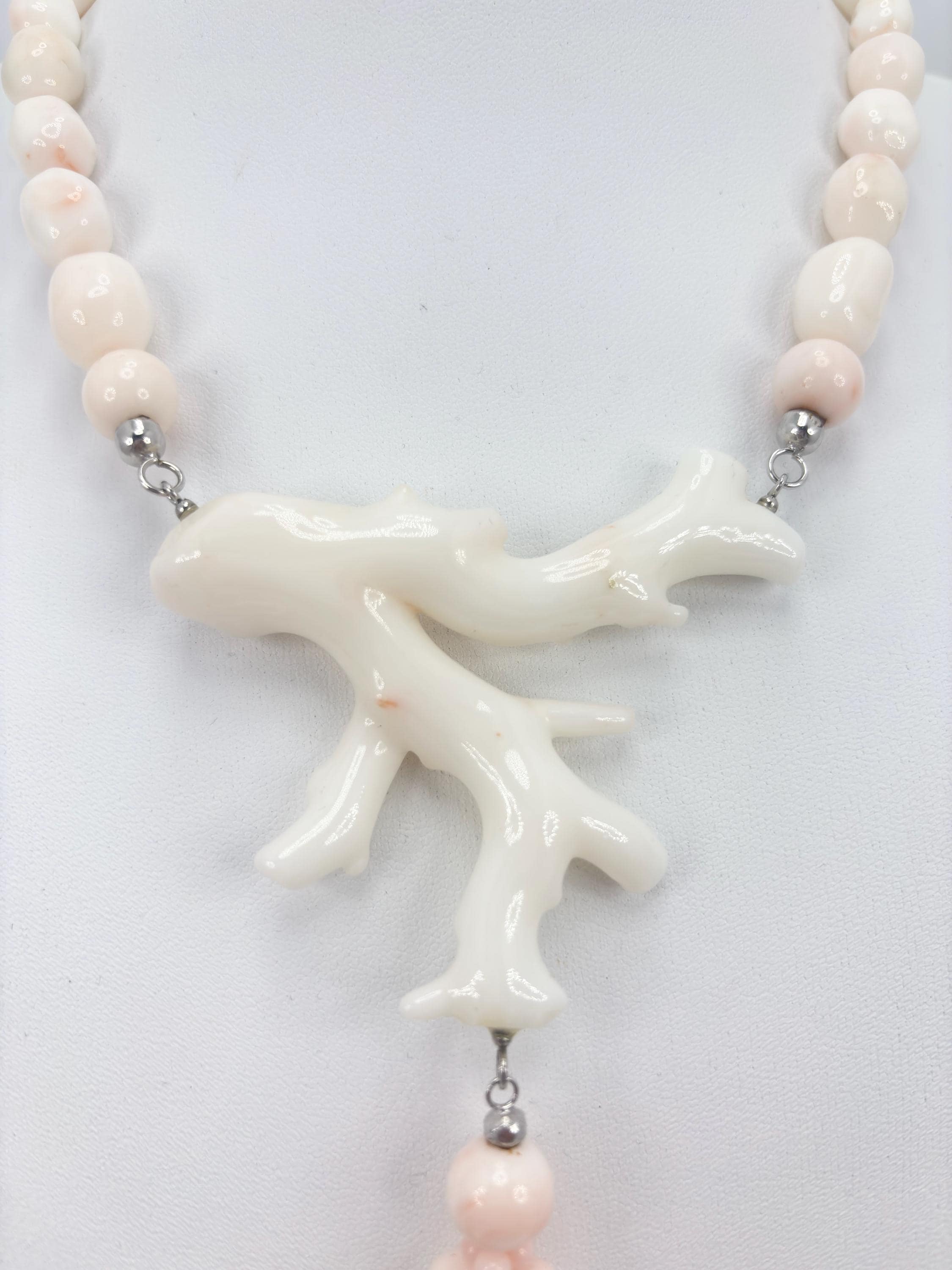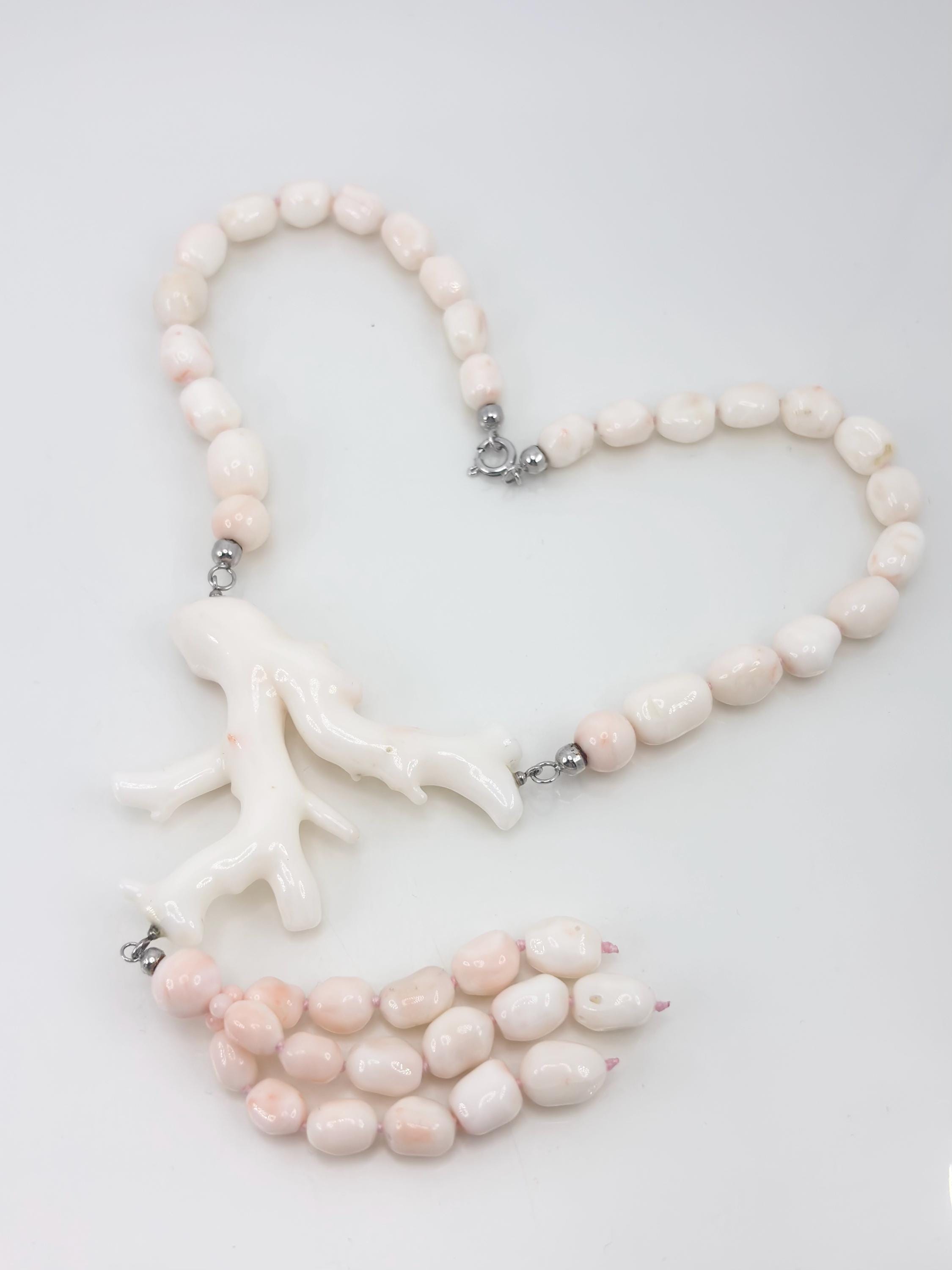 Majestic natural pink coral necklace from the Pacific Ocean with a large natural branch. Set in 925 silver. Handcrafted by artisans from Torre del Greco.