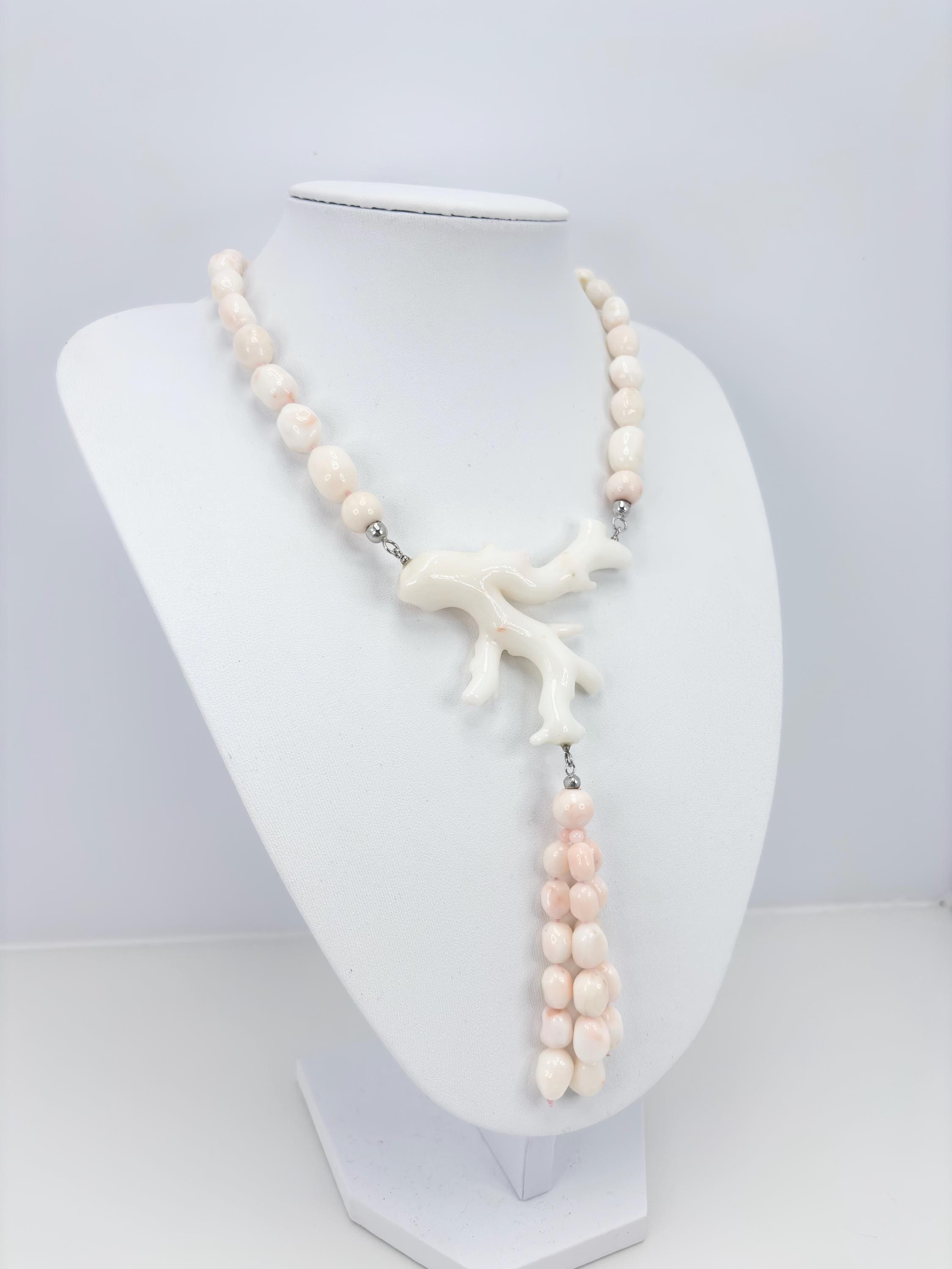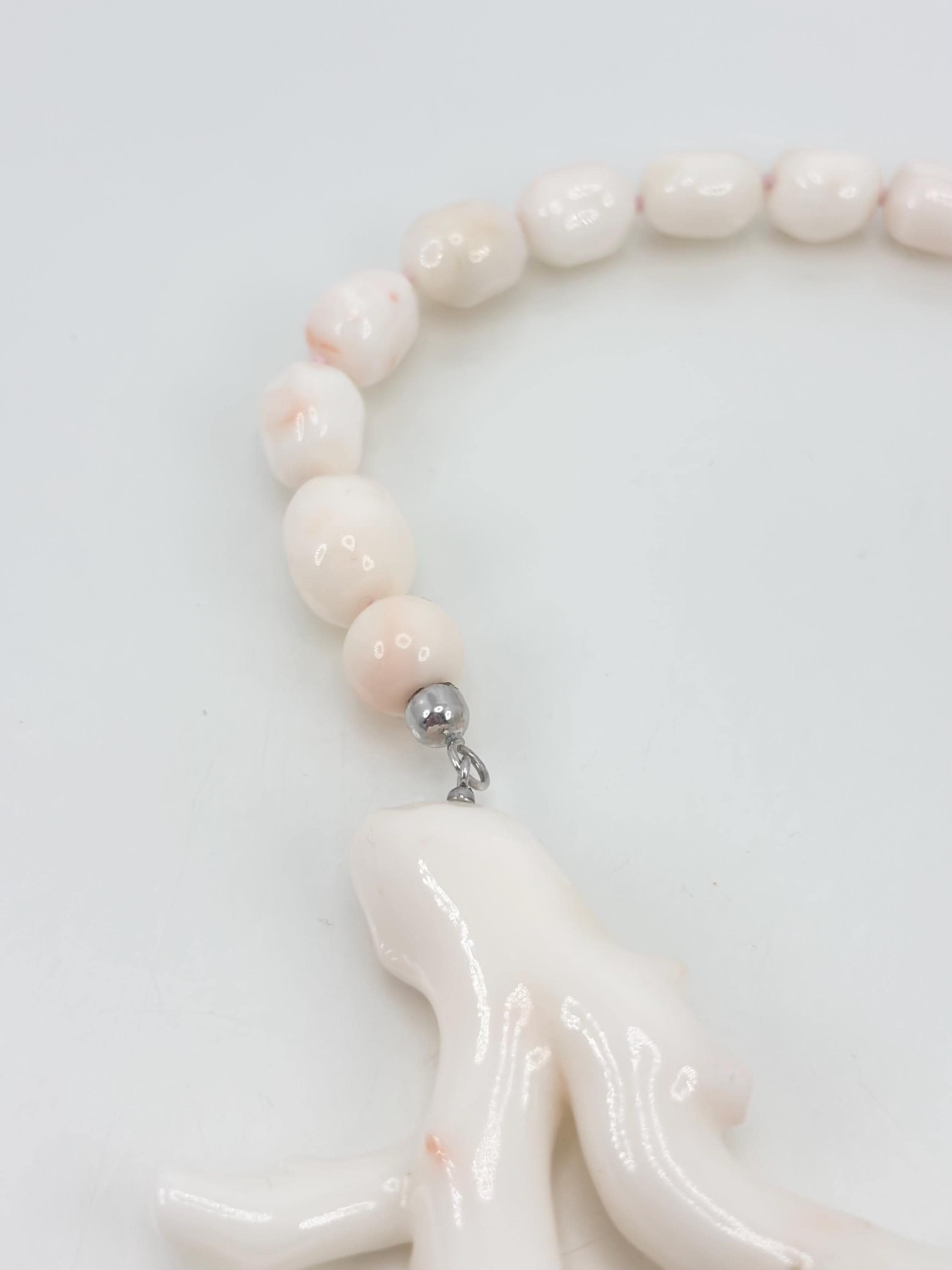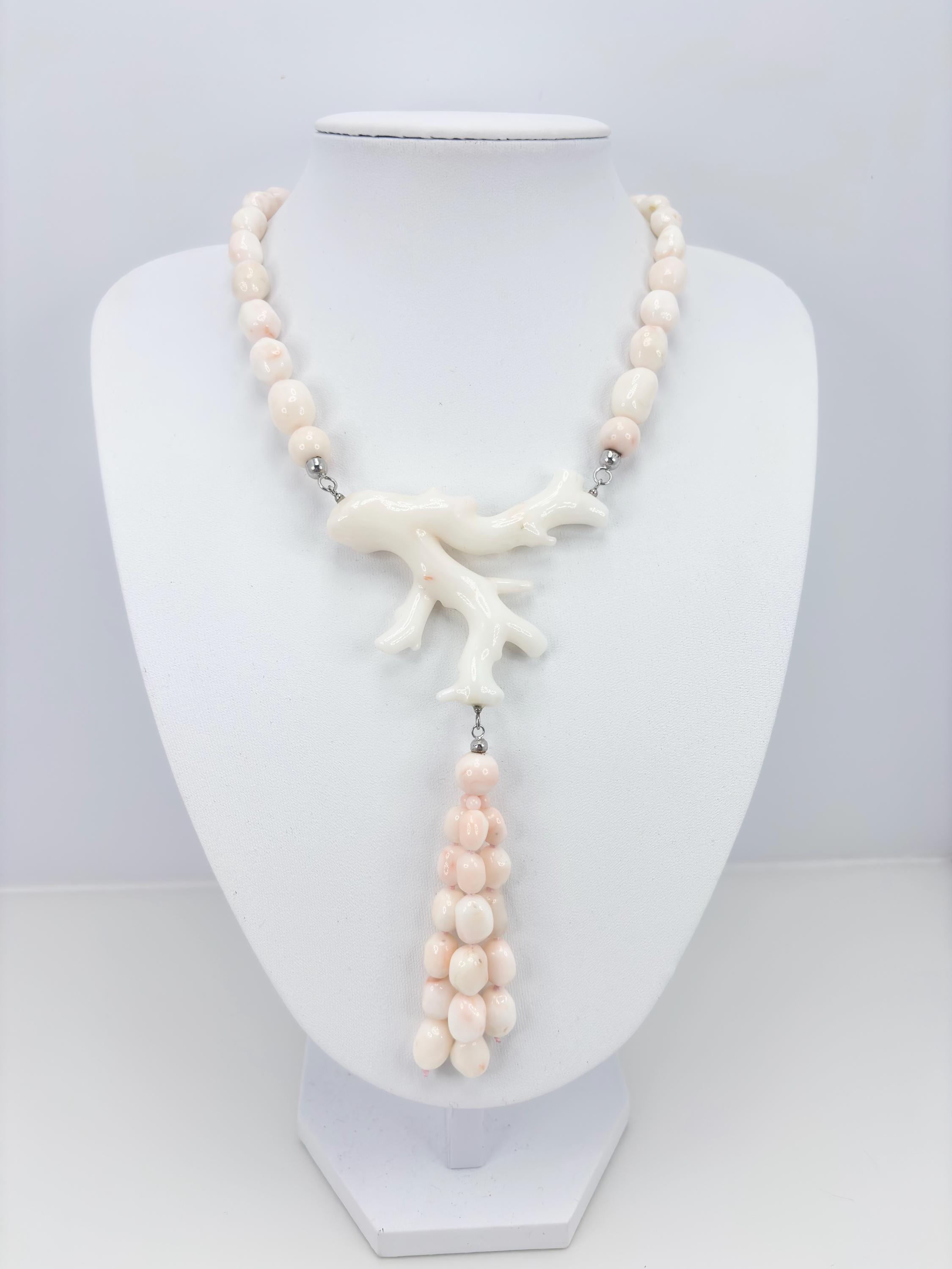 Majestic natural pink coral necklace from the Pacific Ocean with a large natural branch. Set in 925 silver. Handcrafted by artisans from Torre del Greco.