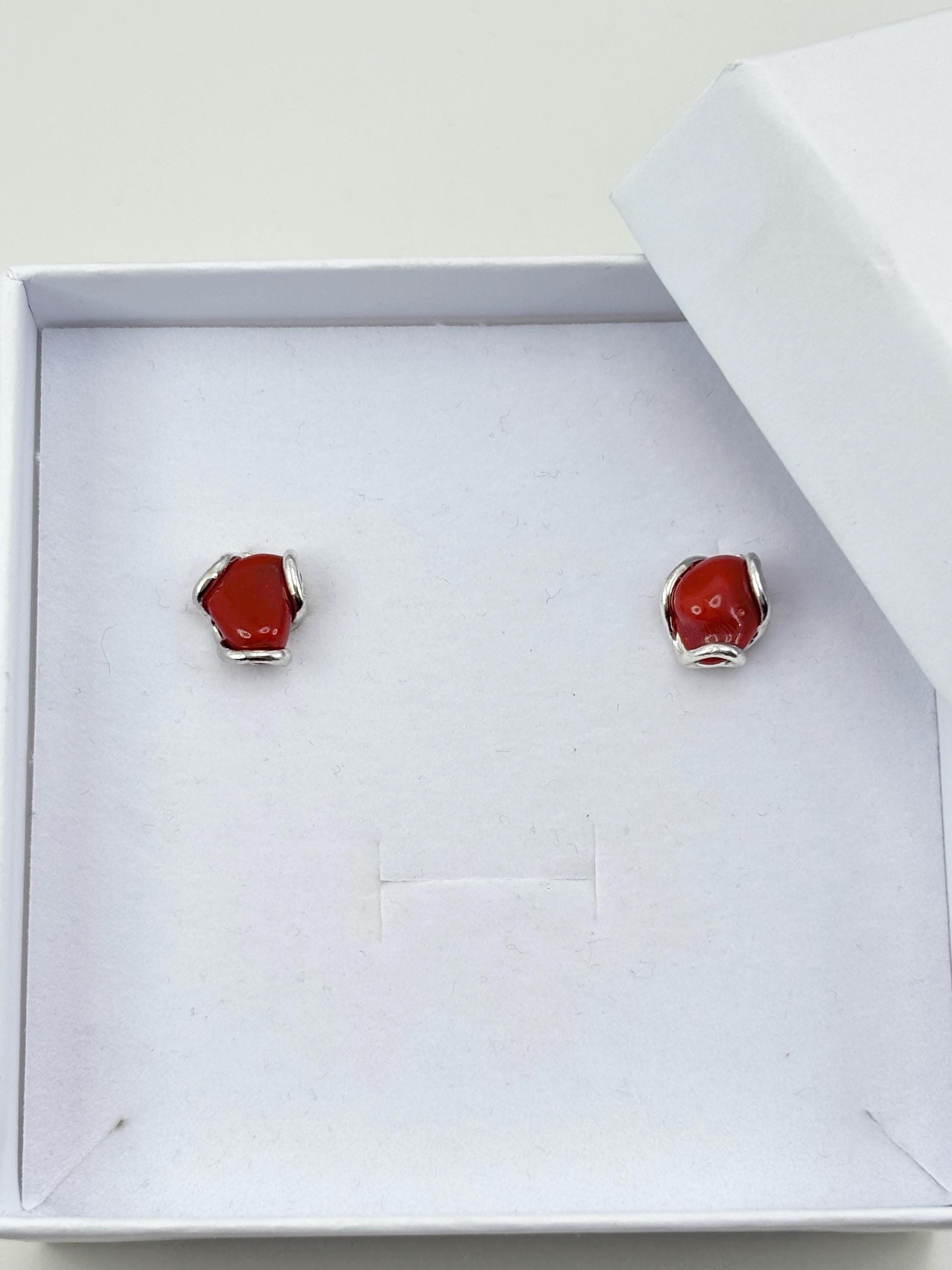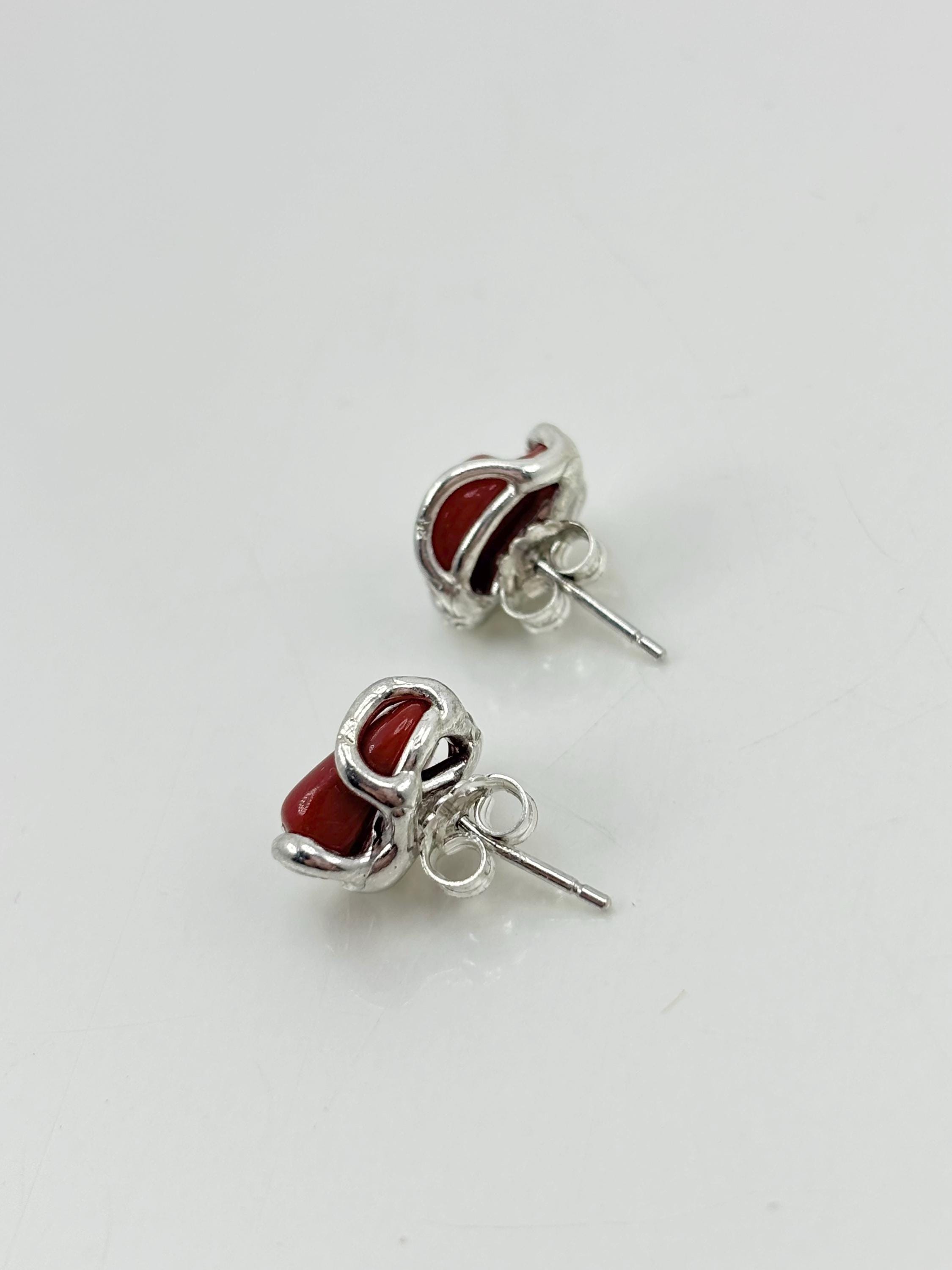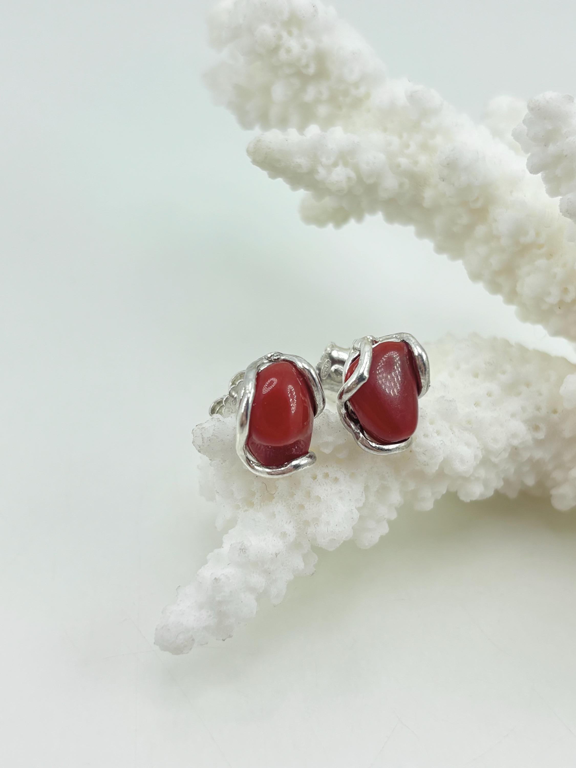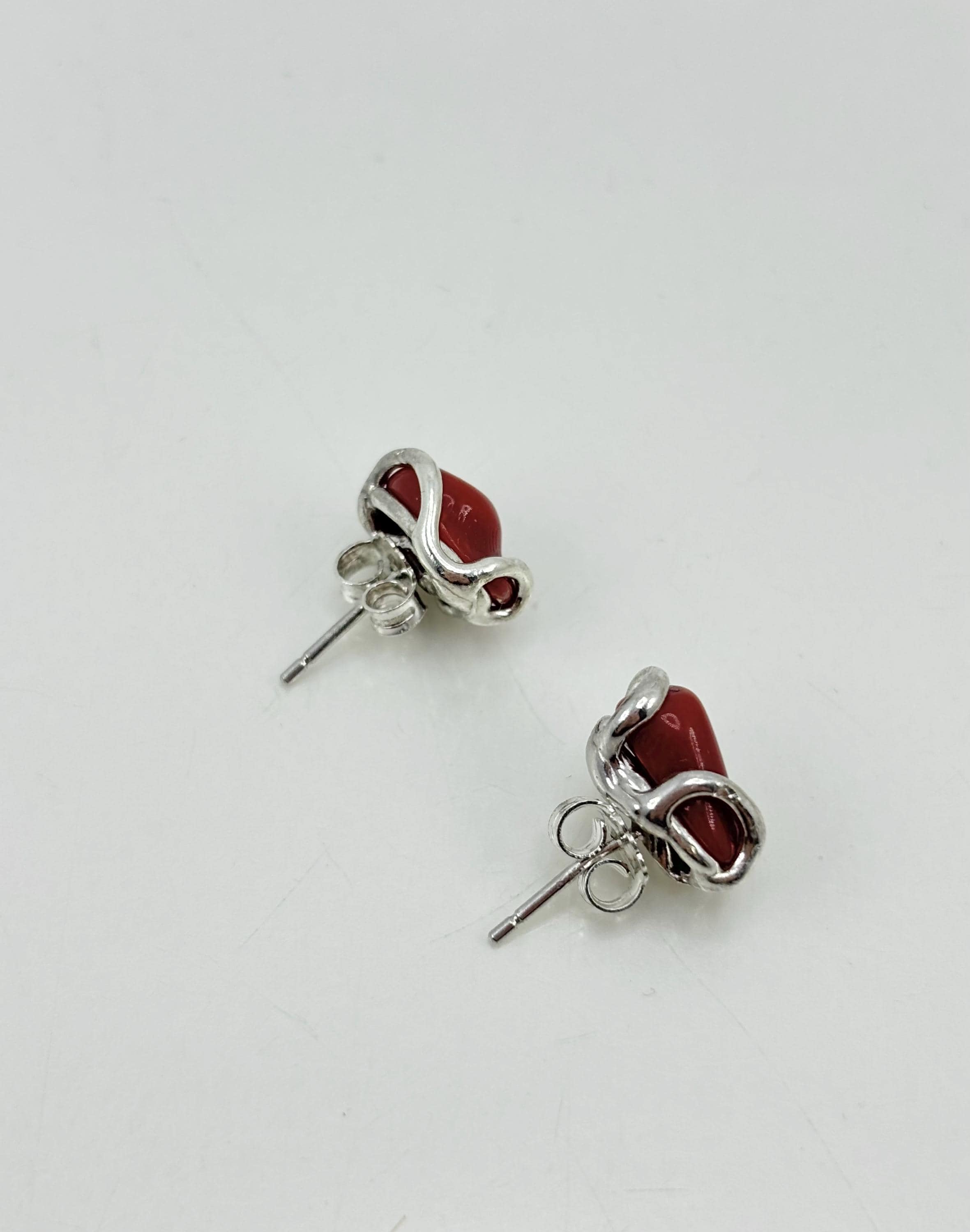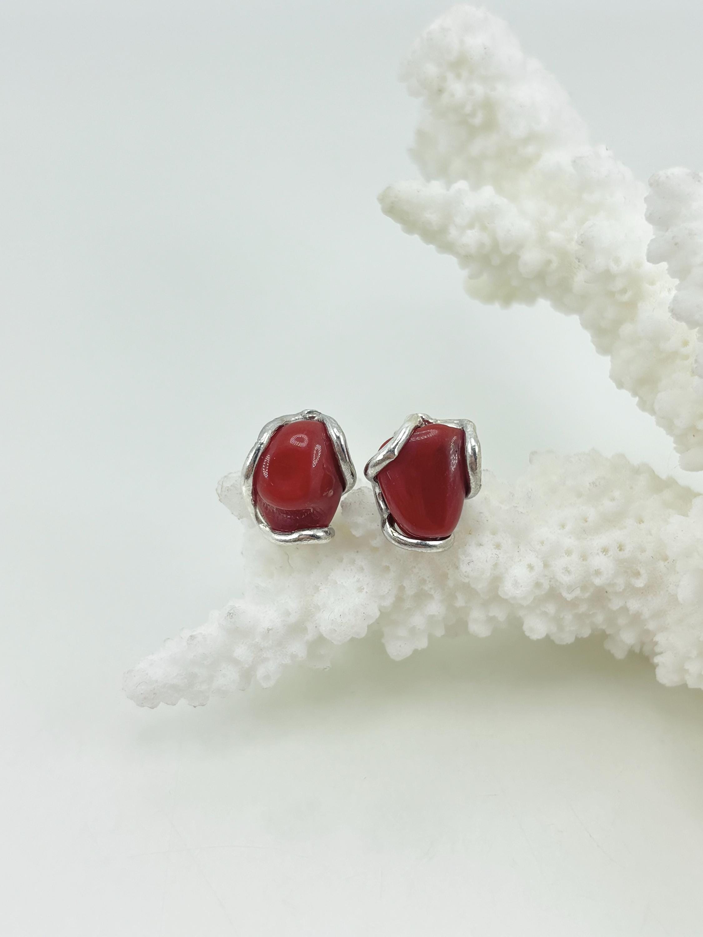 Orecchini con forma naturale di Corallo rosso naturale proveniente dal Mar Mediterraneo montati con Argento 925 con la tecnica della “cera persa” che dona eleganza al gioiello rendendolo leggero e versatile. Lavorati e realizzati da artigiani di Torre del Greco.