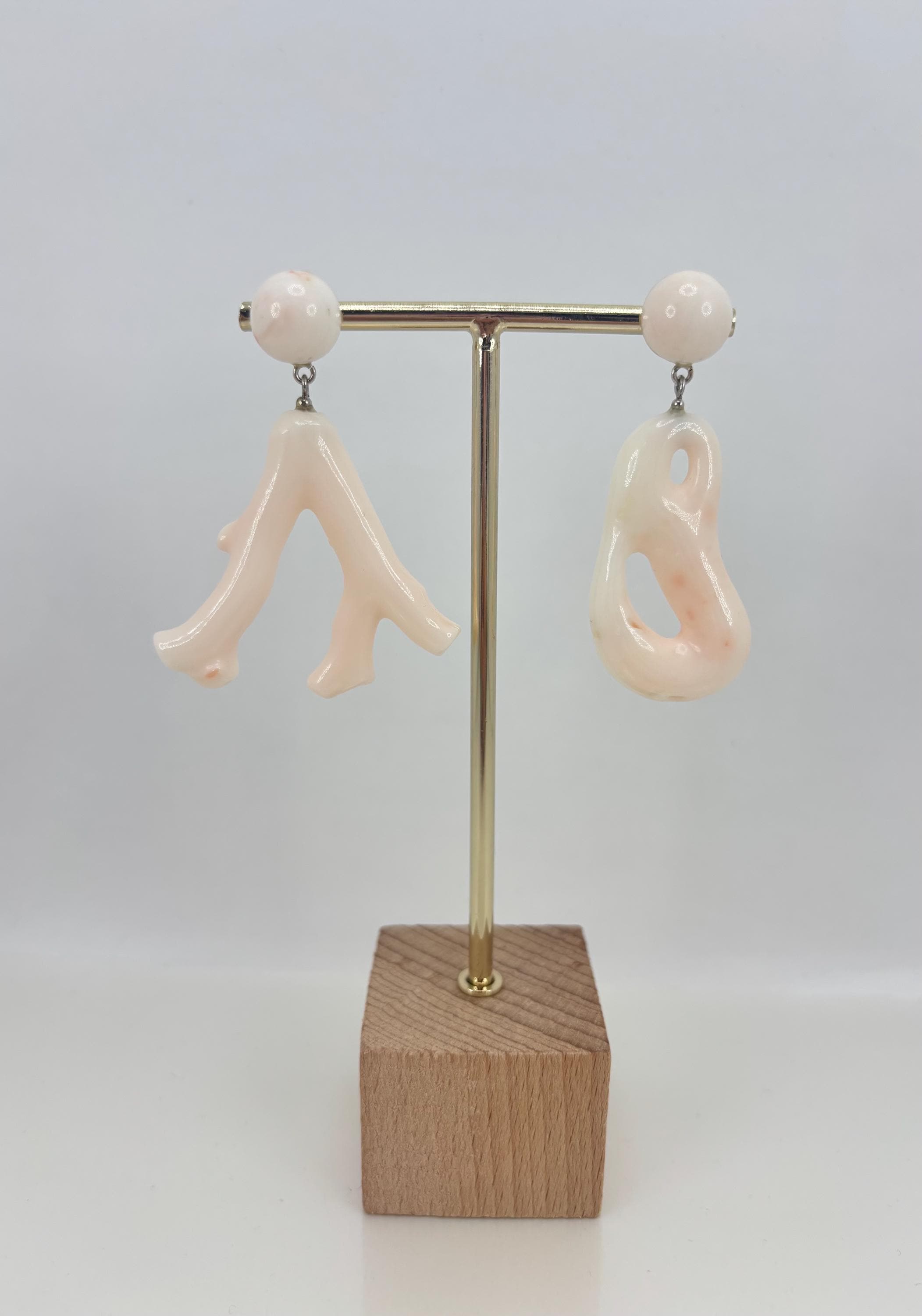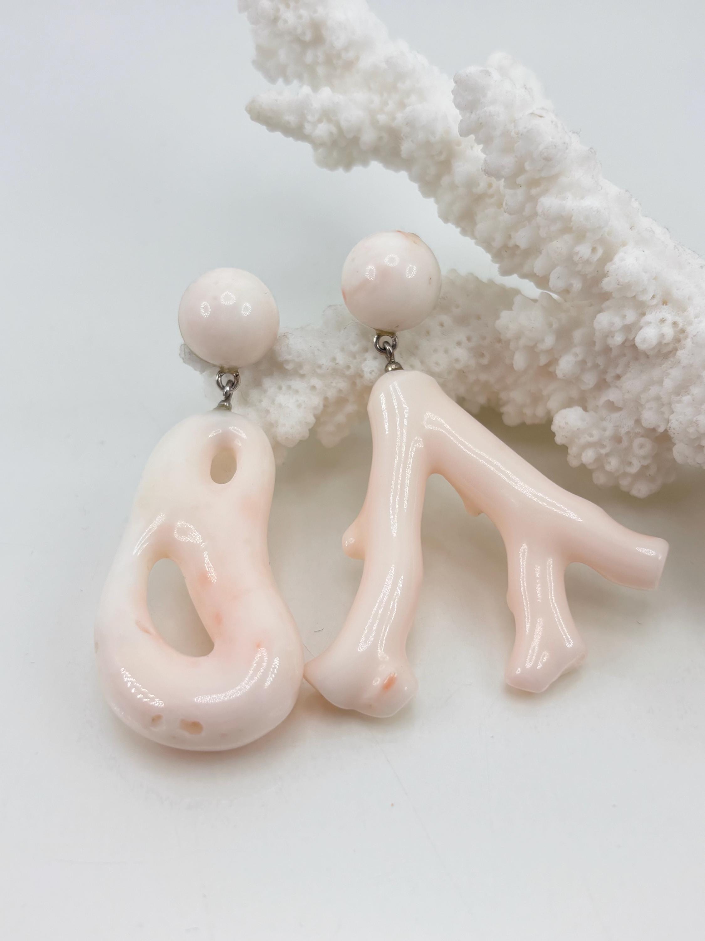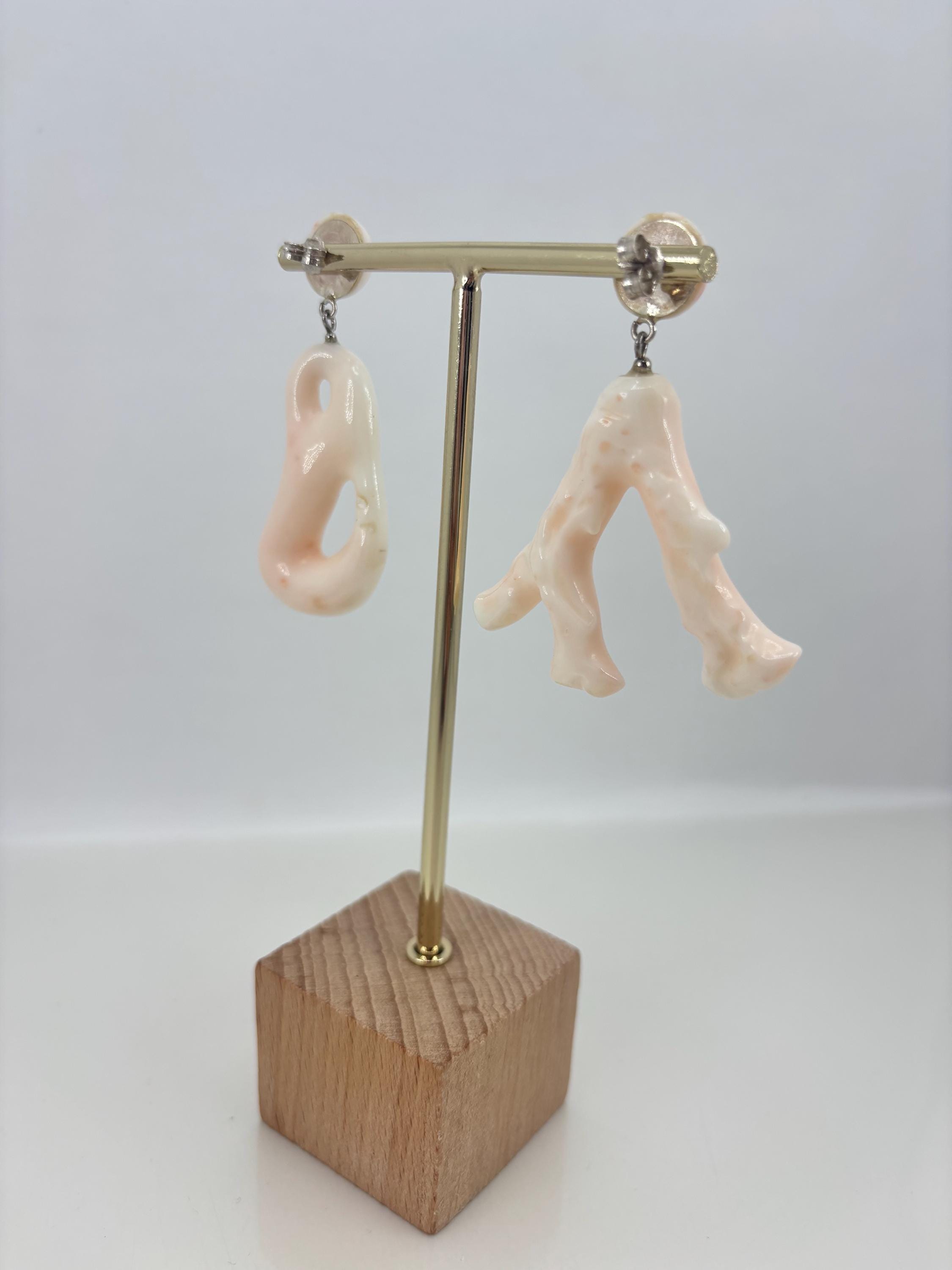 Special earrings in white/pink coral from the Pacific Ocean and left in their