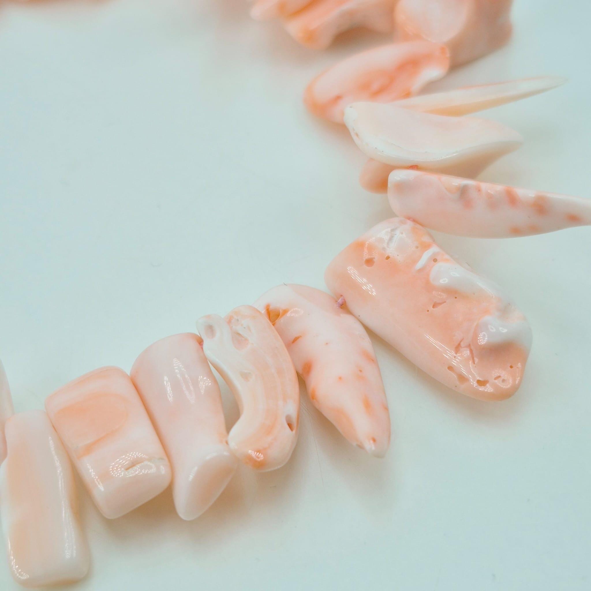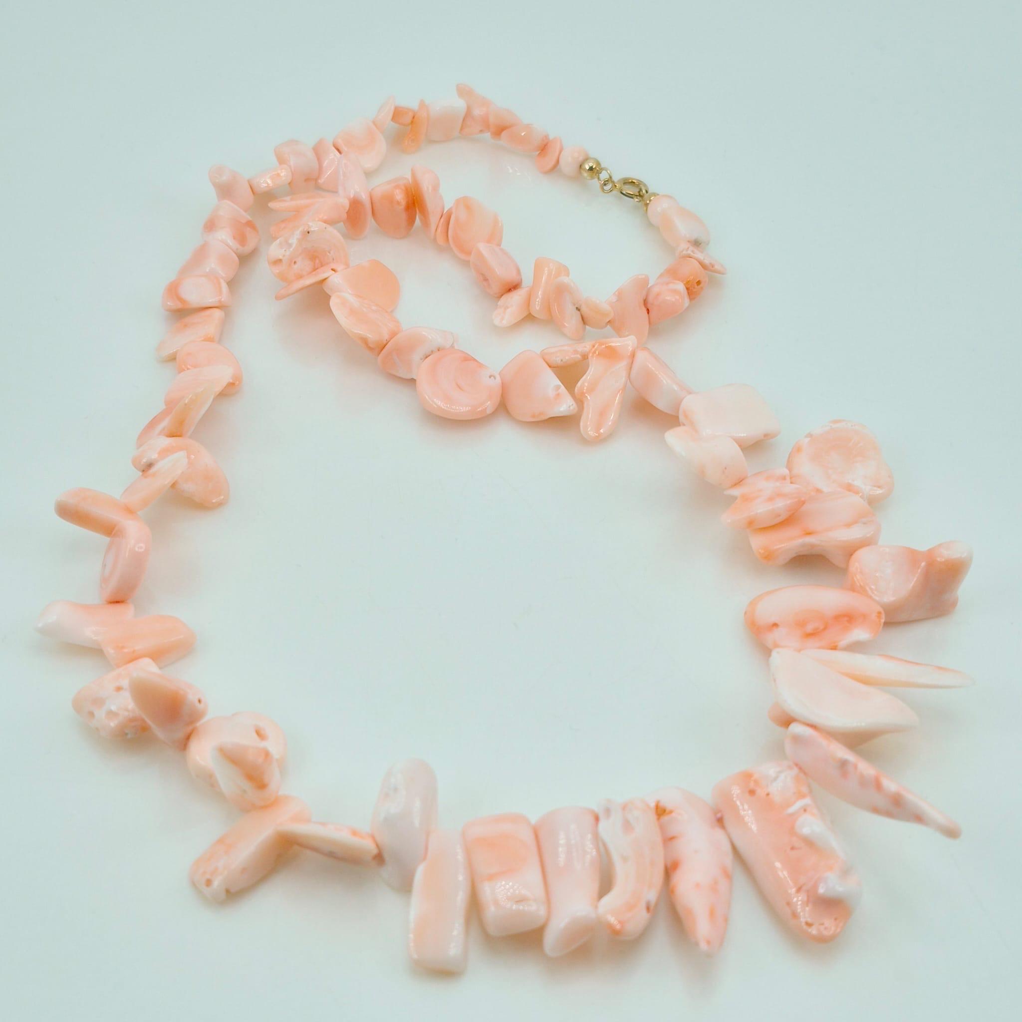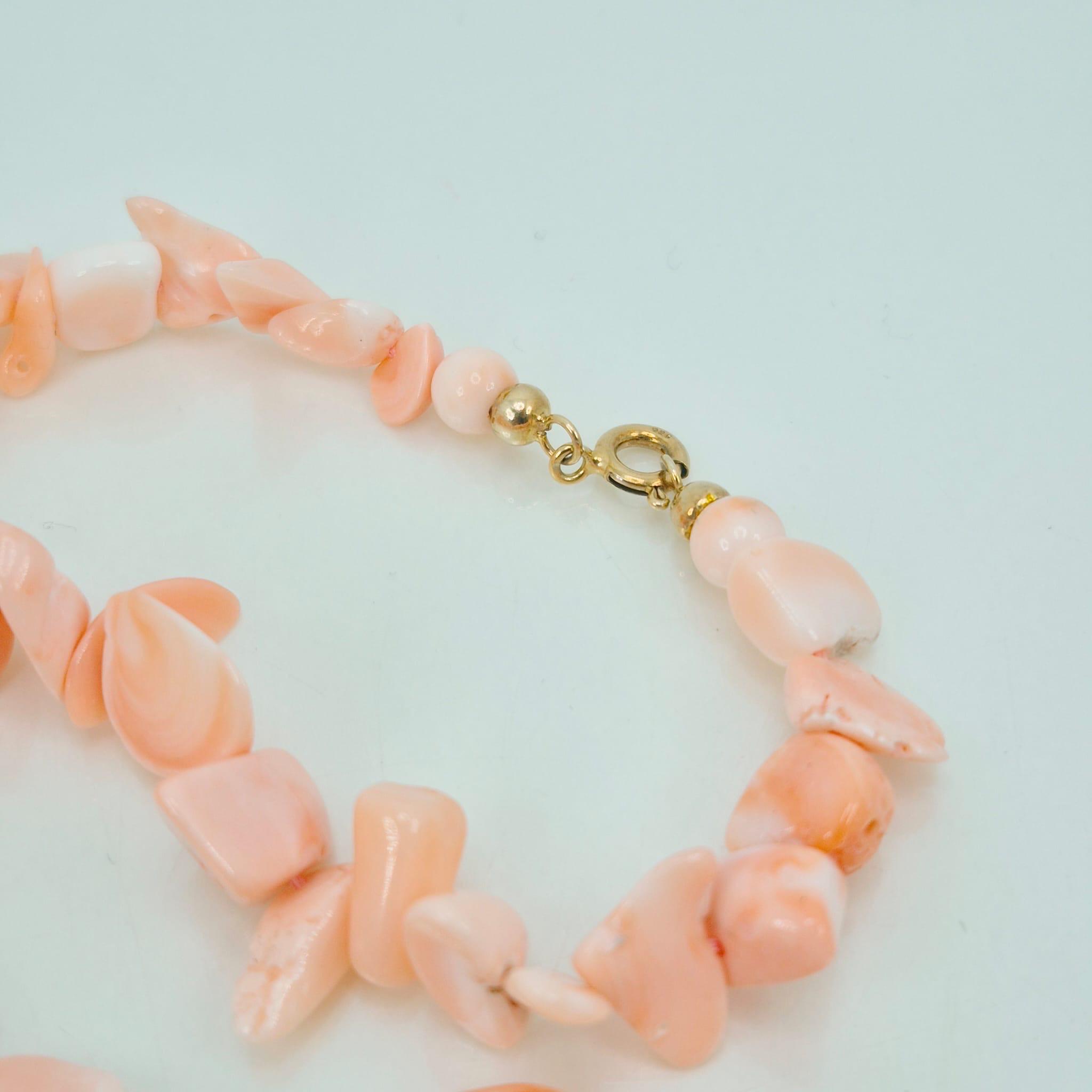 Necklace made of natural pink coral flakes from the Pacific Ocean in a splendid salmon shade with a gold-plated 925 silver clasp.