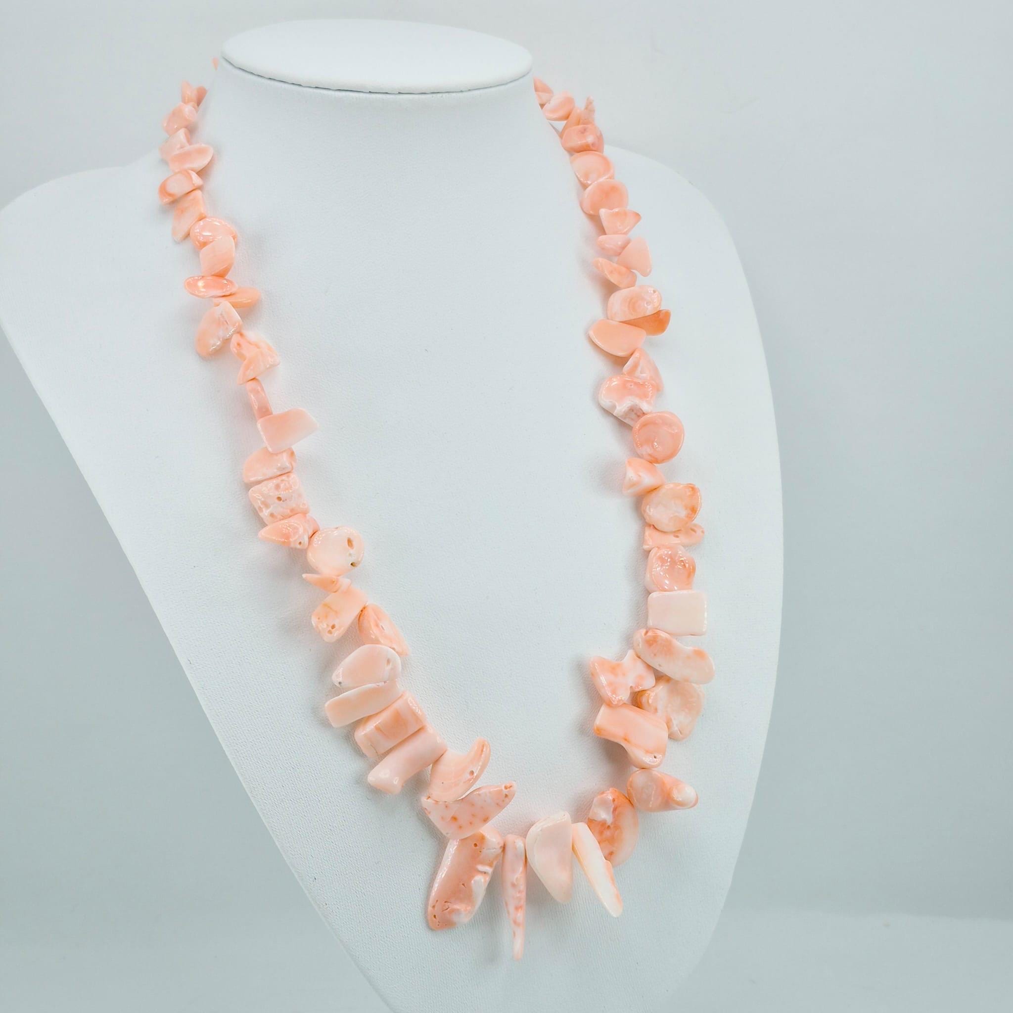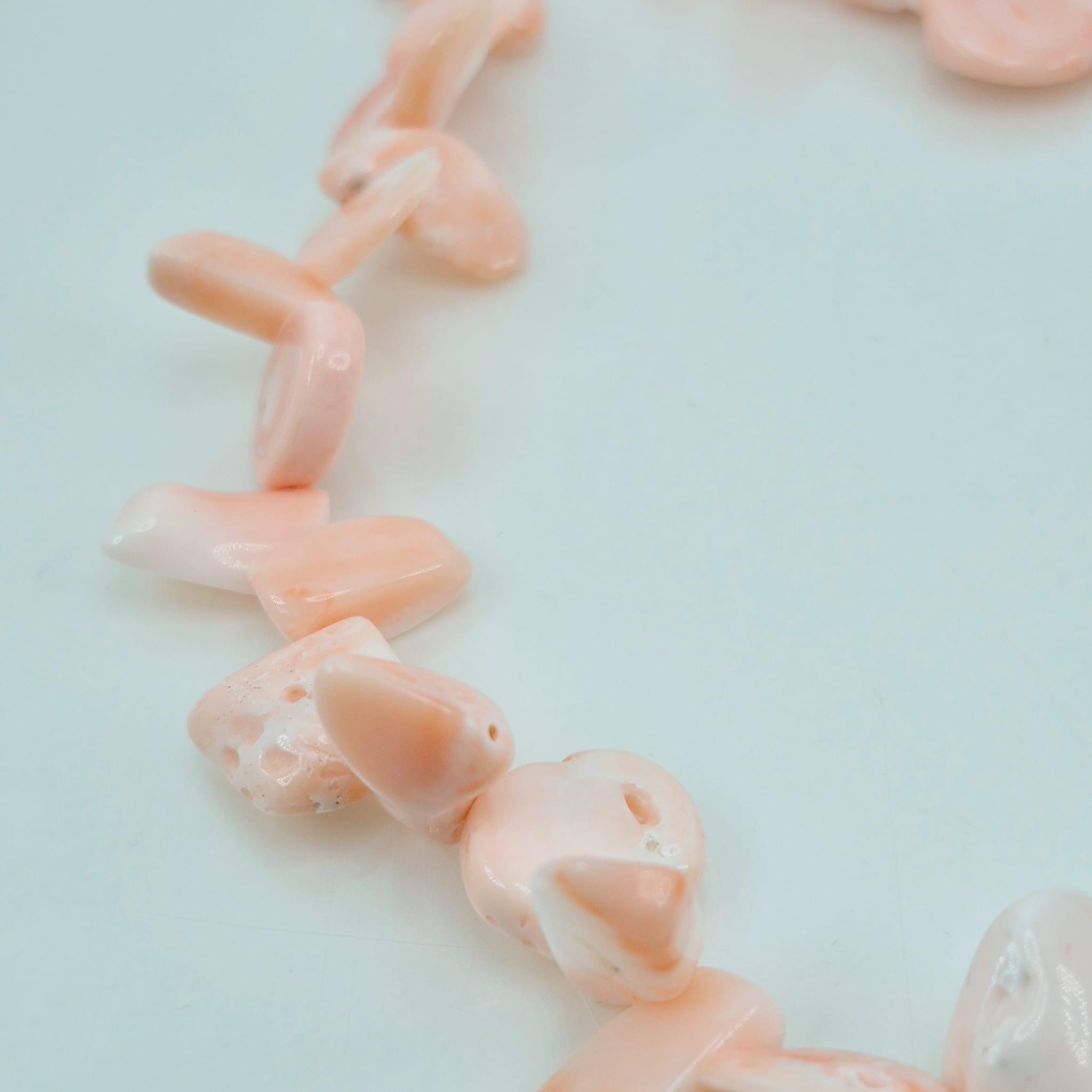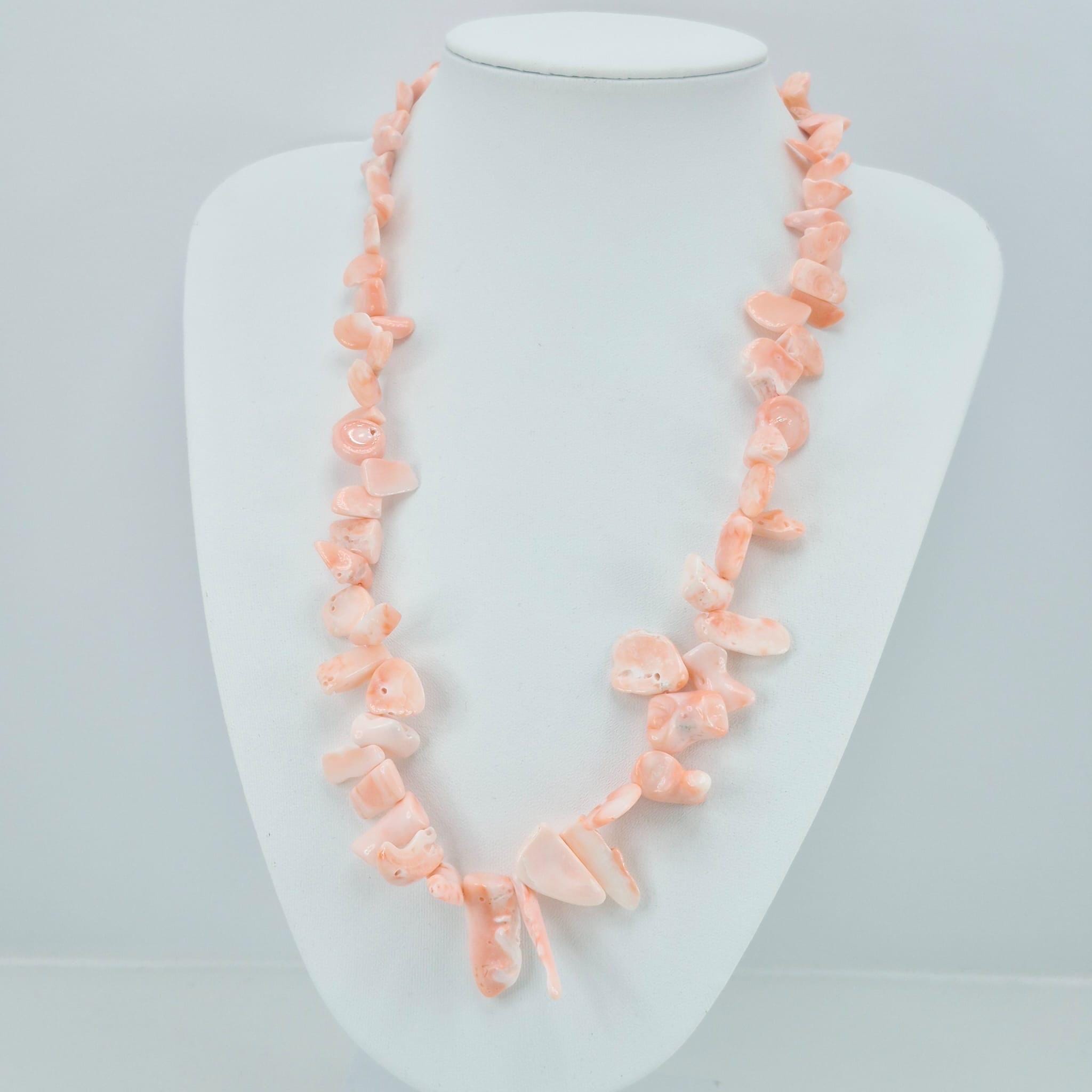 Necklace made of natural pink coral flakes from the Pacific Ocean in a splendid salmon shade with a gold-plated 925 silver clasp.